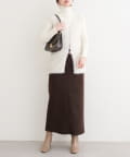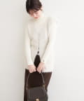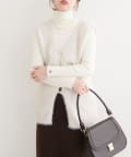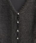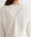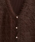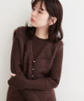 ベストは、繊細なラメが上品に煌めくフェザーニット。ふわふわとした素材感が、女性らしさを引き立てます。