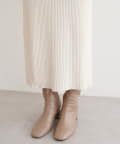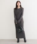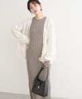 ワンピースは、縦ラインを強調するリブ編みで、スタイルアップ効果も抜群。