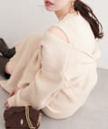 ニットをオフショル風に着て、さりげない肌みせで抜け感を楽しむのも◎