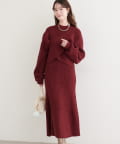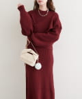 ワンピースは、ニットと相性の良いシンプルなデザイン。Iラインシルエットが、すっきりとした印象を与えます。