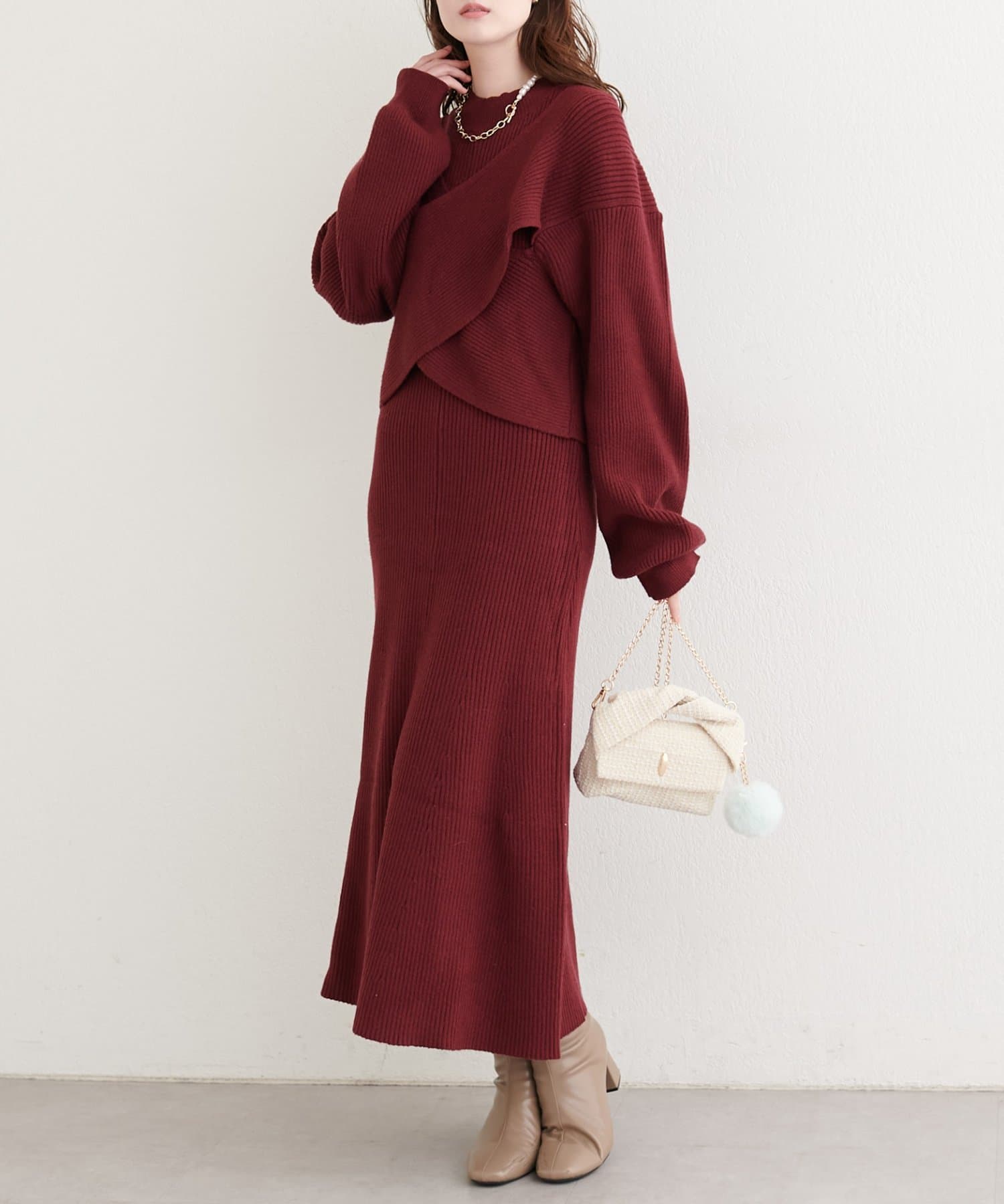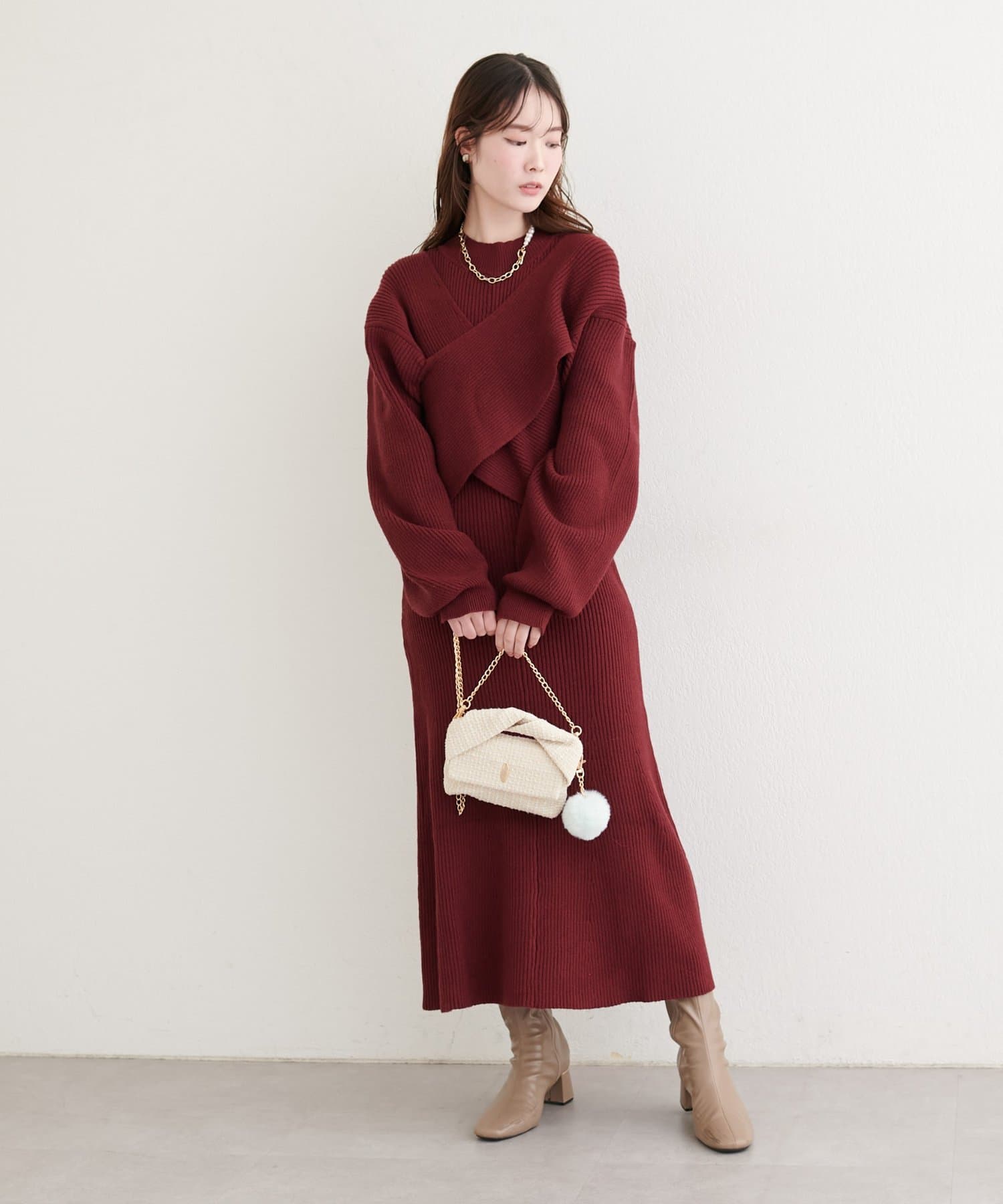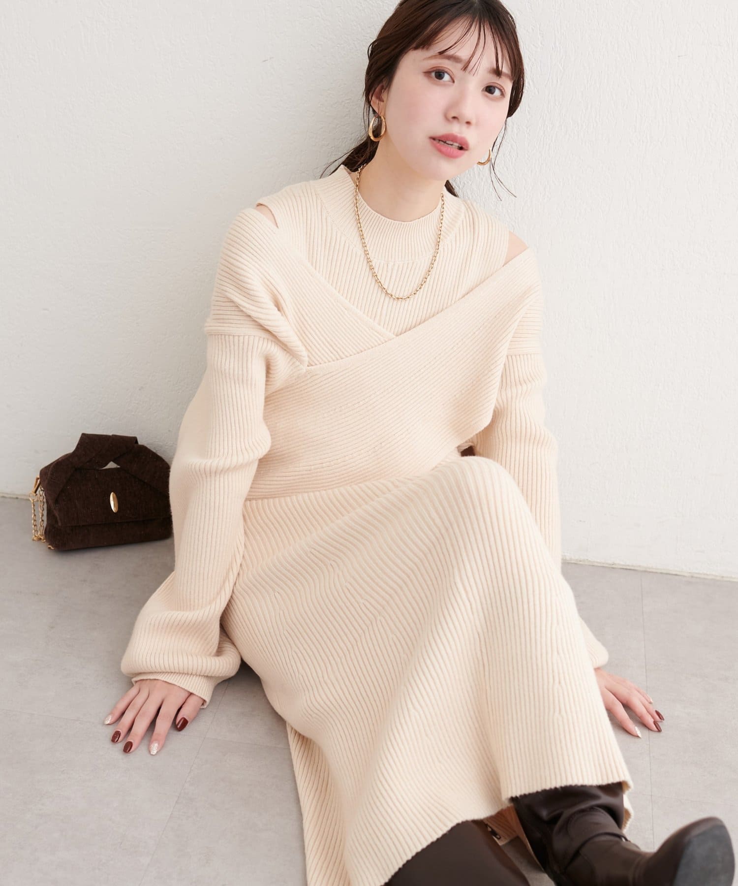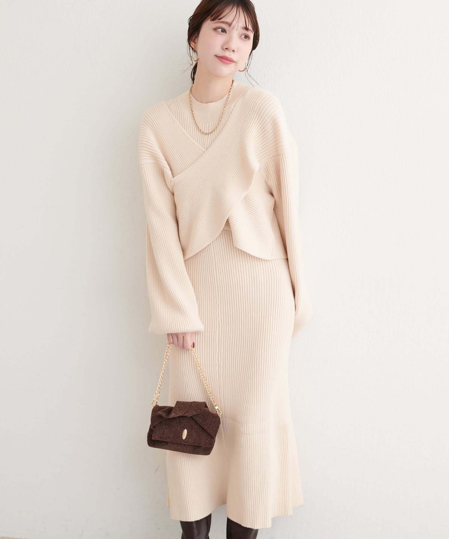 • natural couture(ナチュラルクチュール) 前後2WAYクロスリボンニット×ワンピースSET