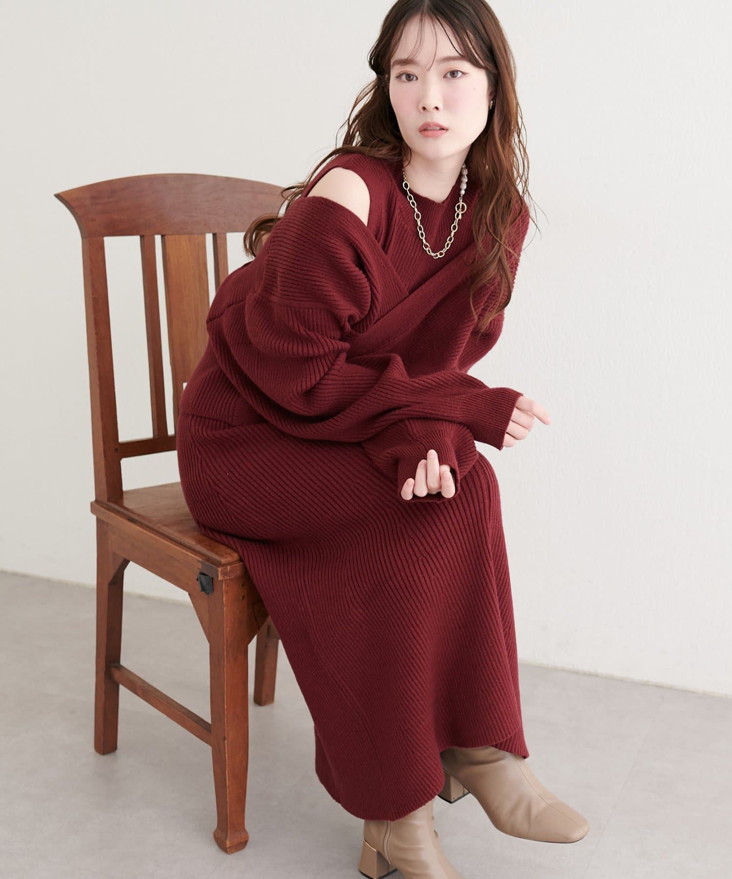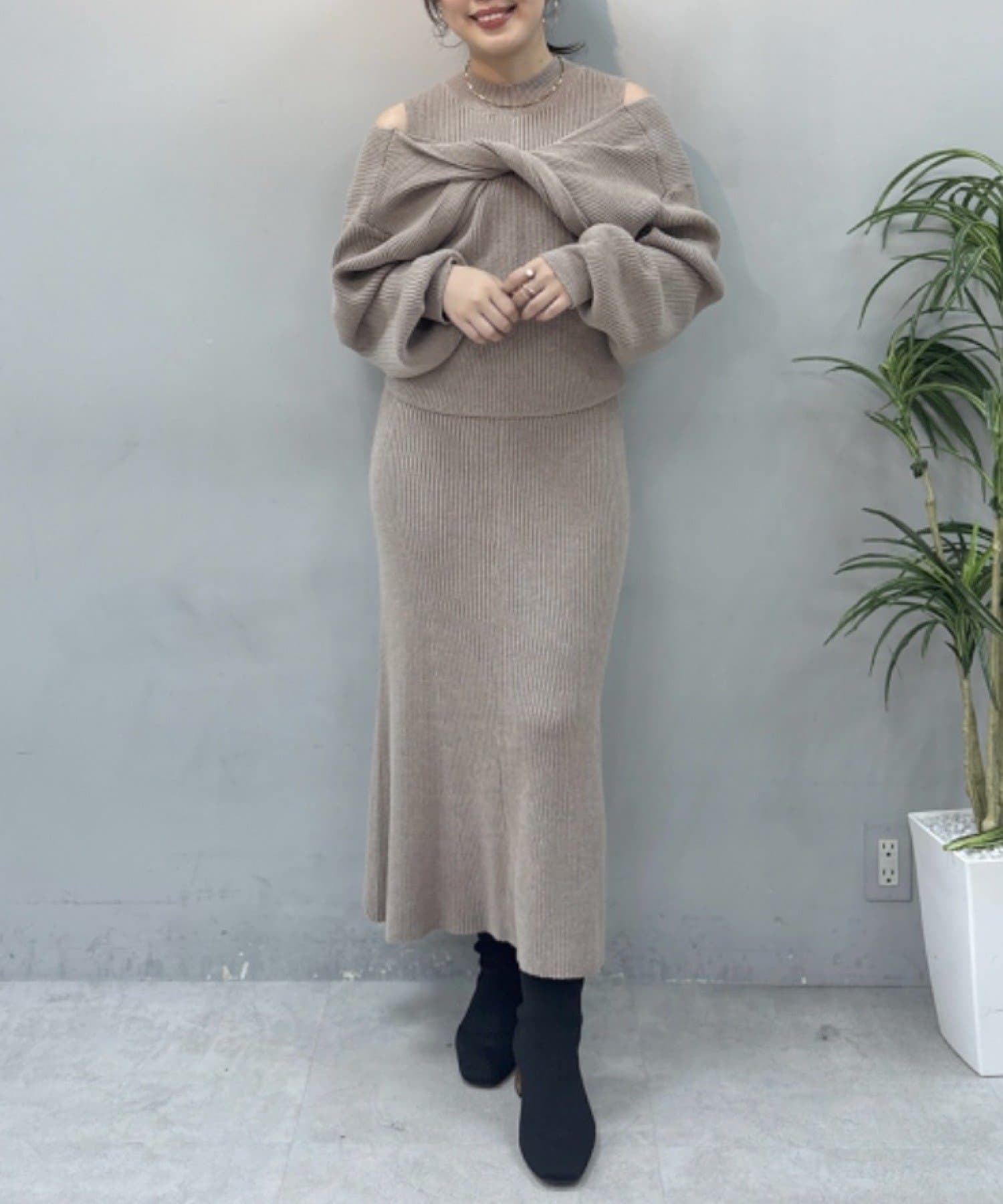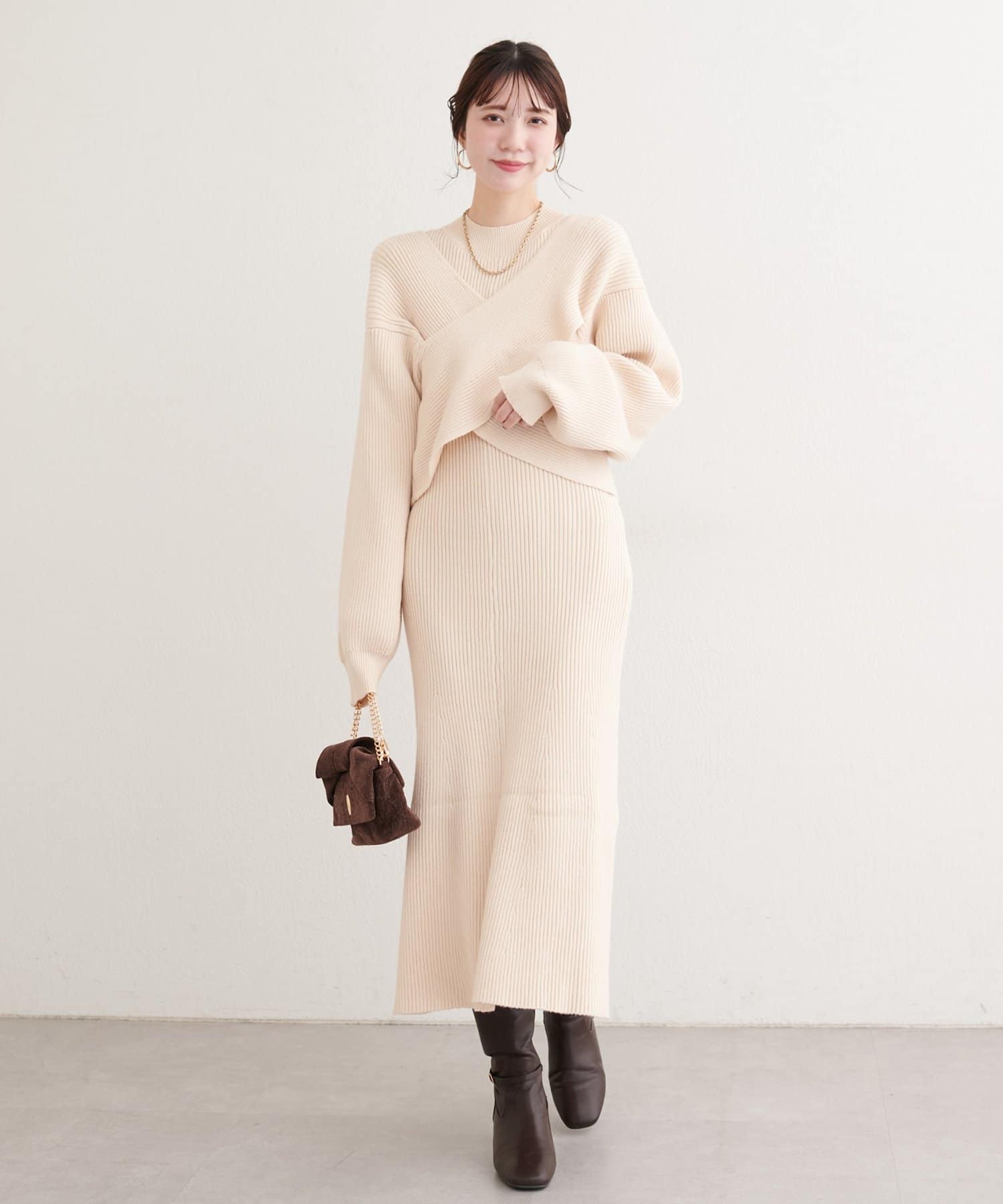 TOP > natural couture > レディース > ワンピース > ワンピース > 前後2WAYクロスリボンニット×ワンピースSET