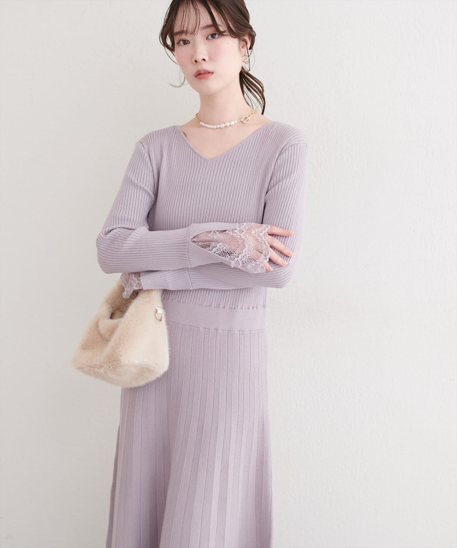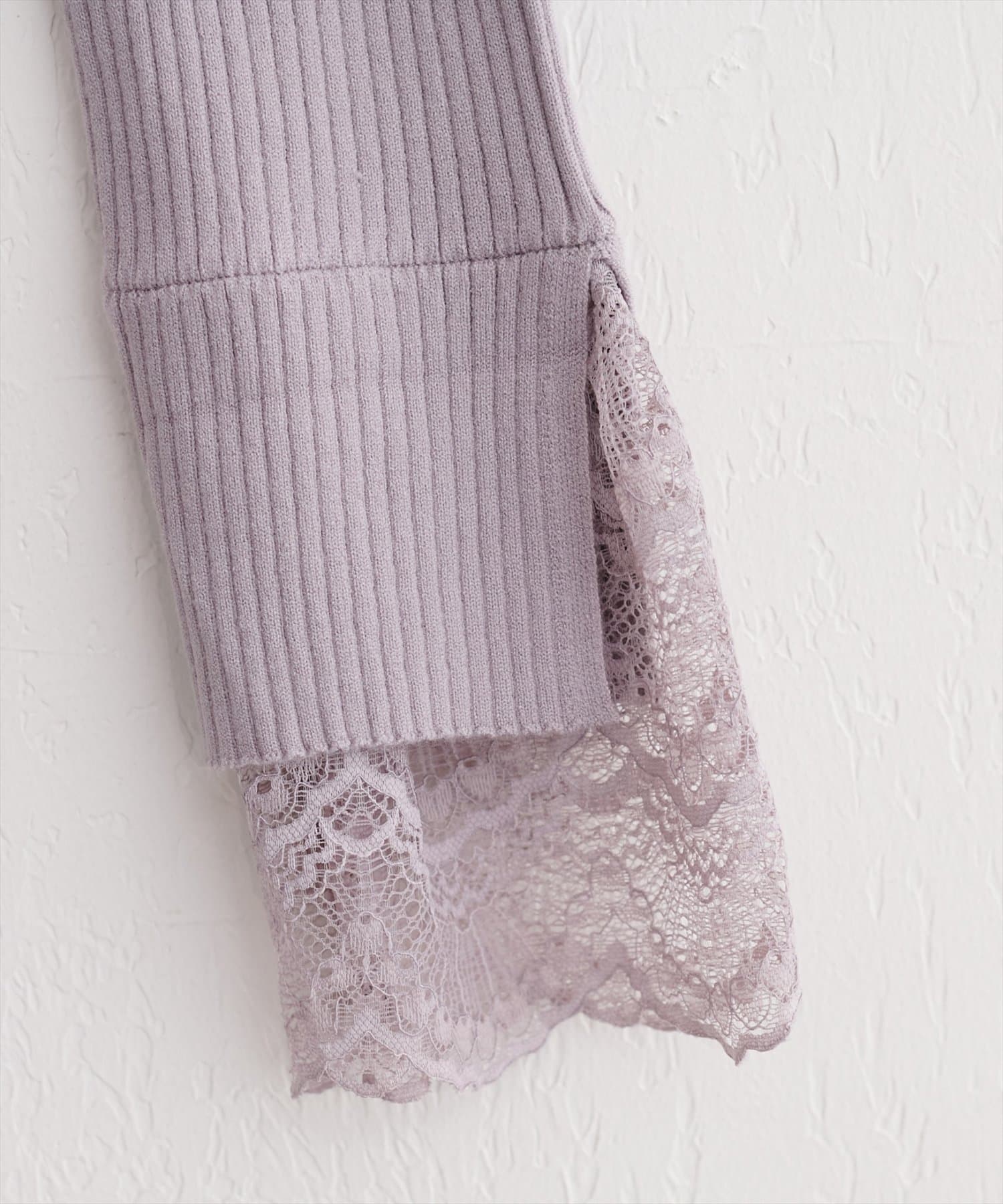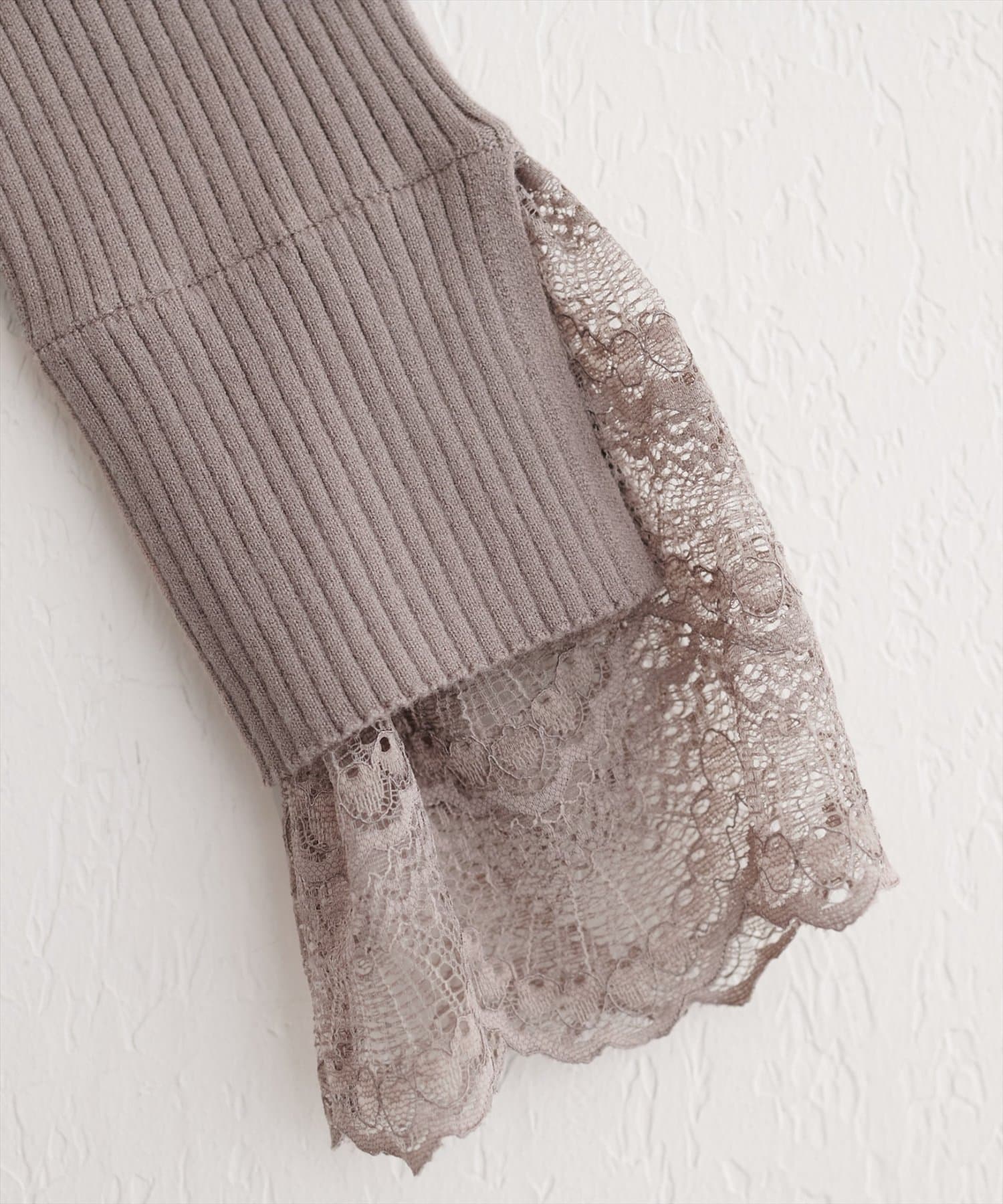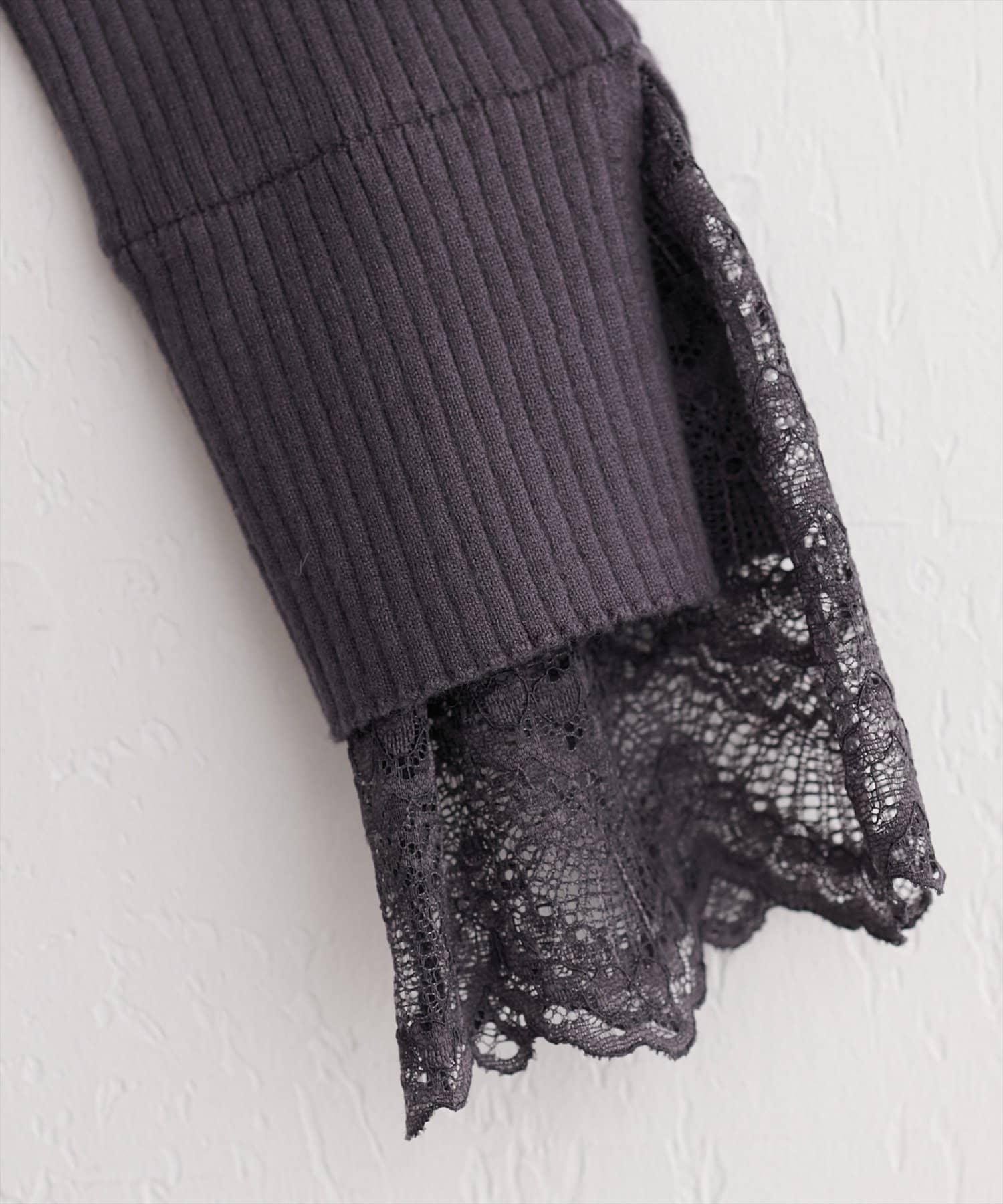 袖口と裾にあしらわれた繊細なレースが目を惹くポイント◎