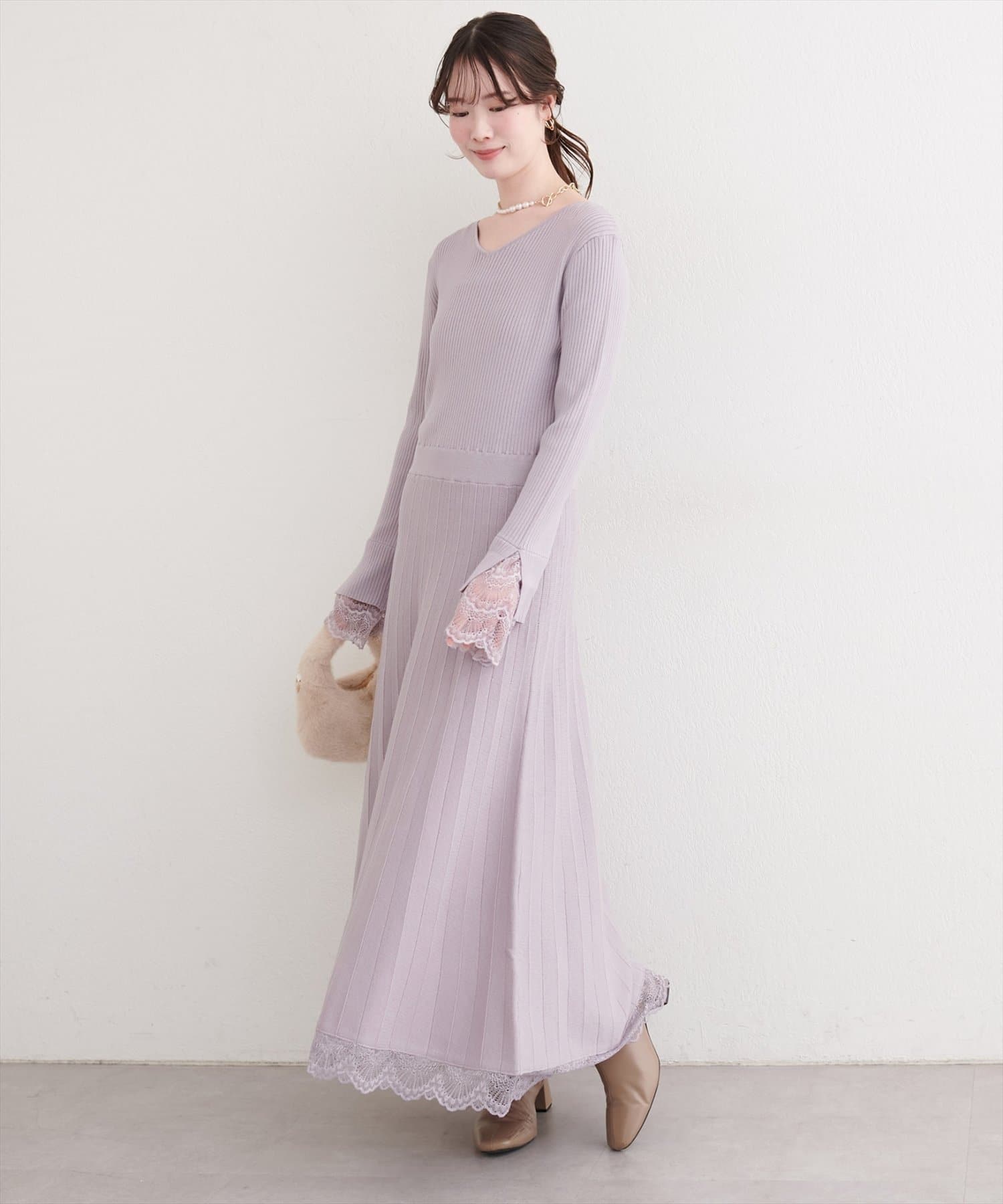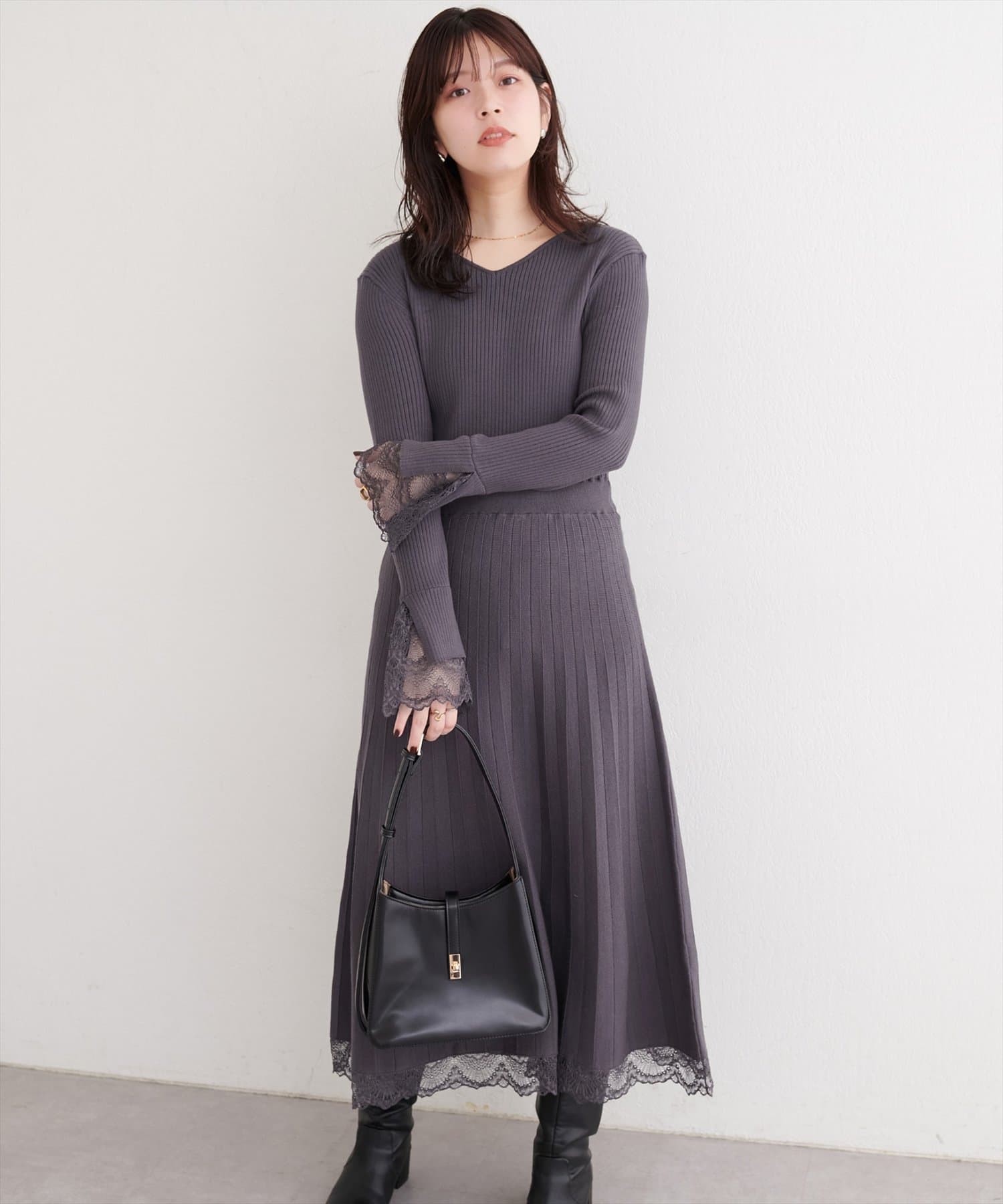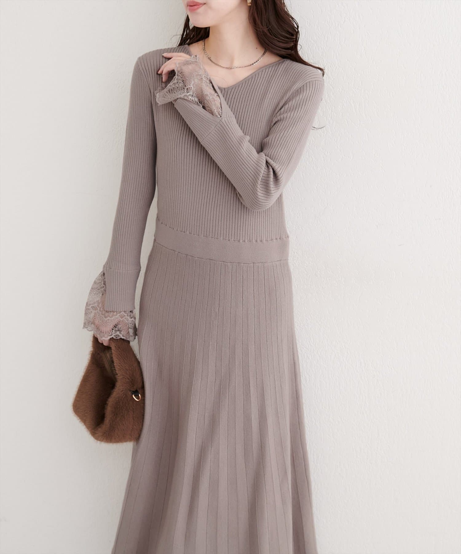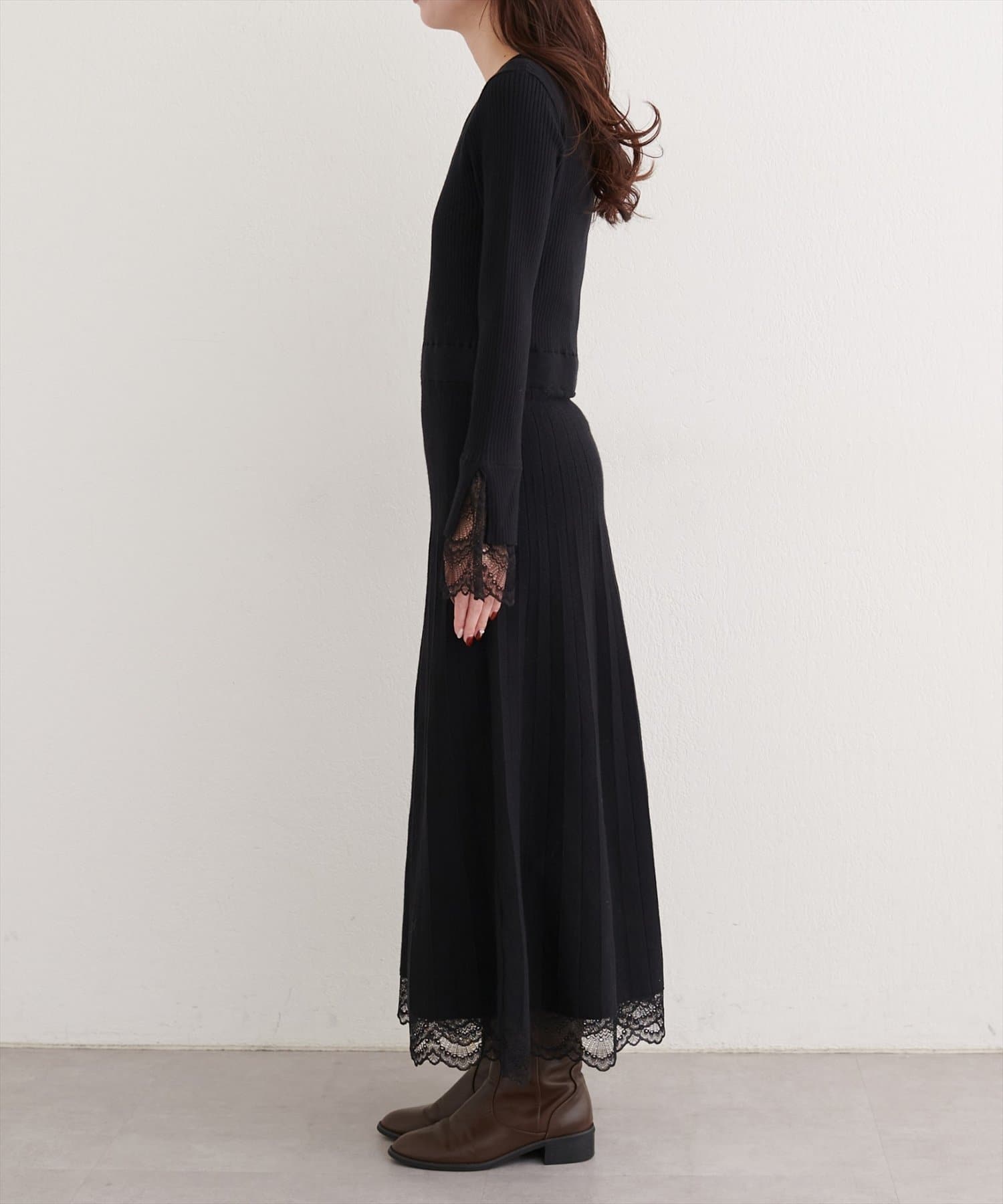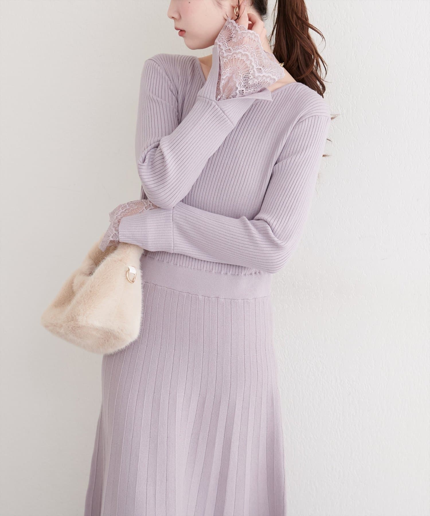 袖口と裾にあしらわれた繊細なレースが目を惹くポイント◎