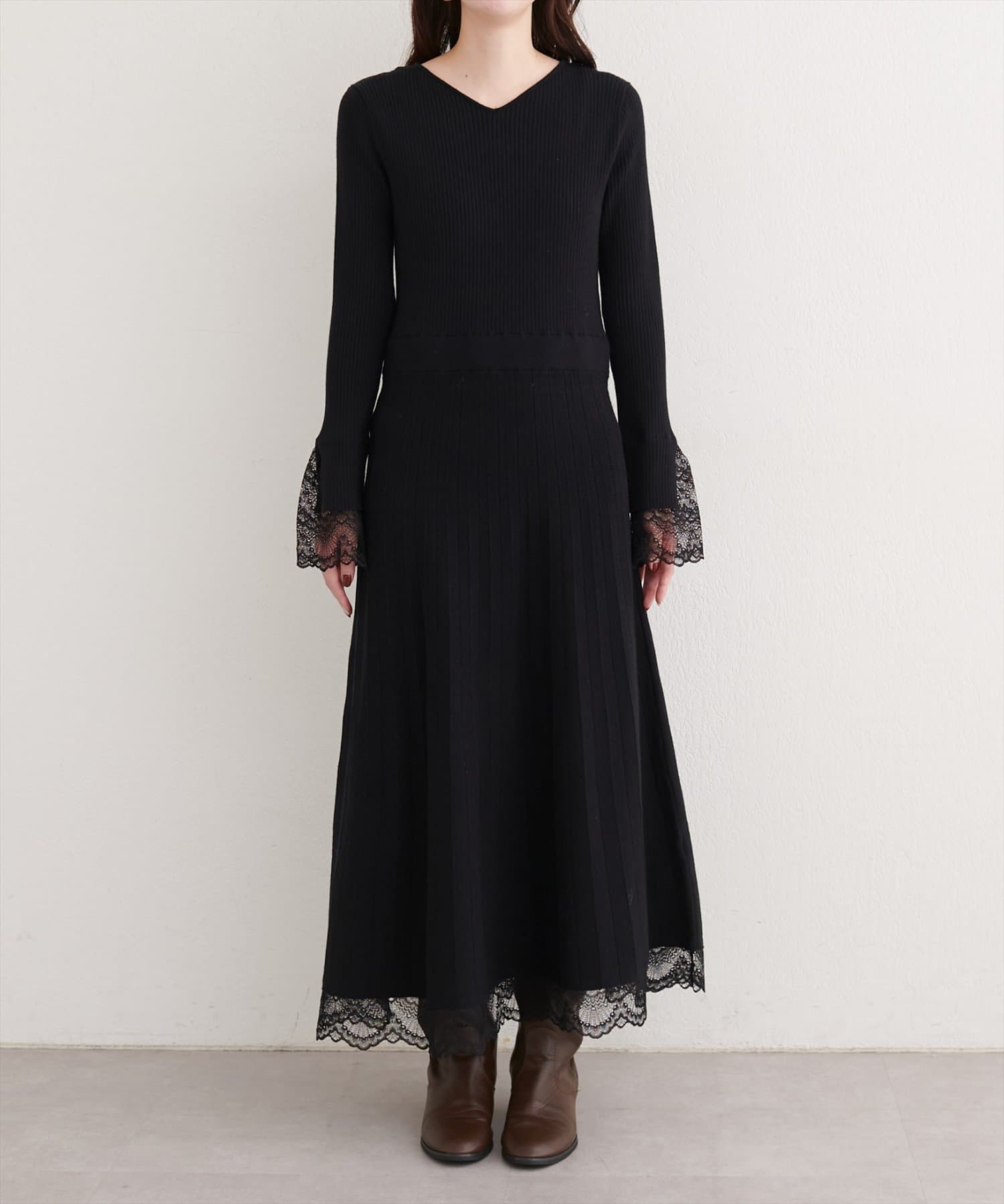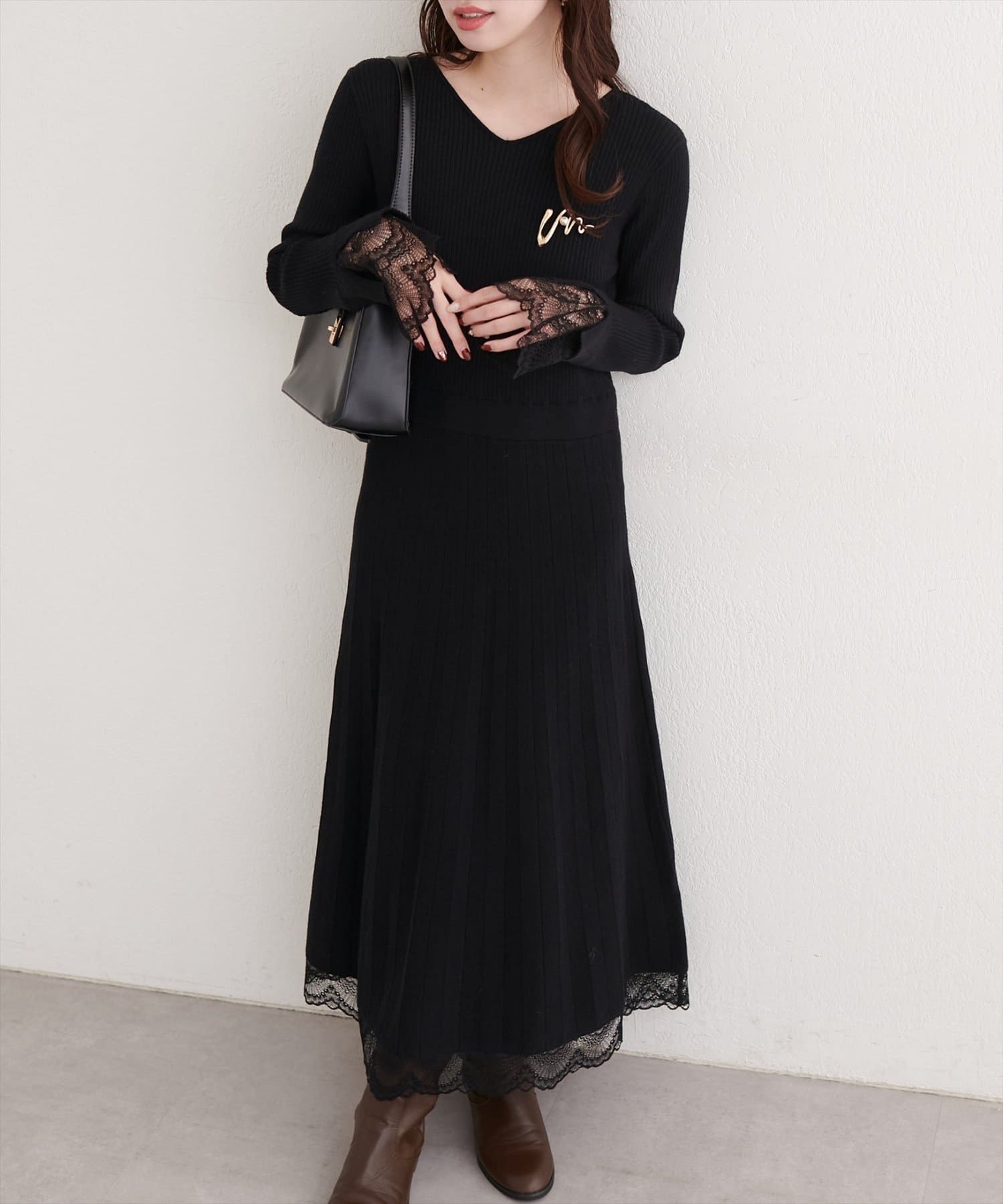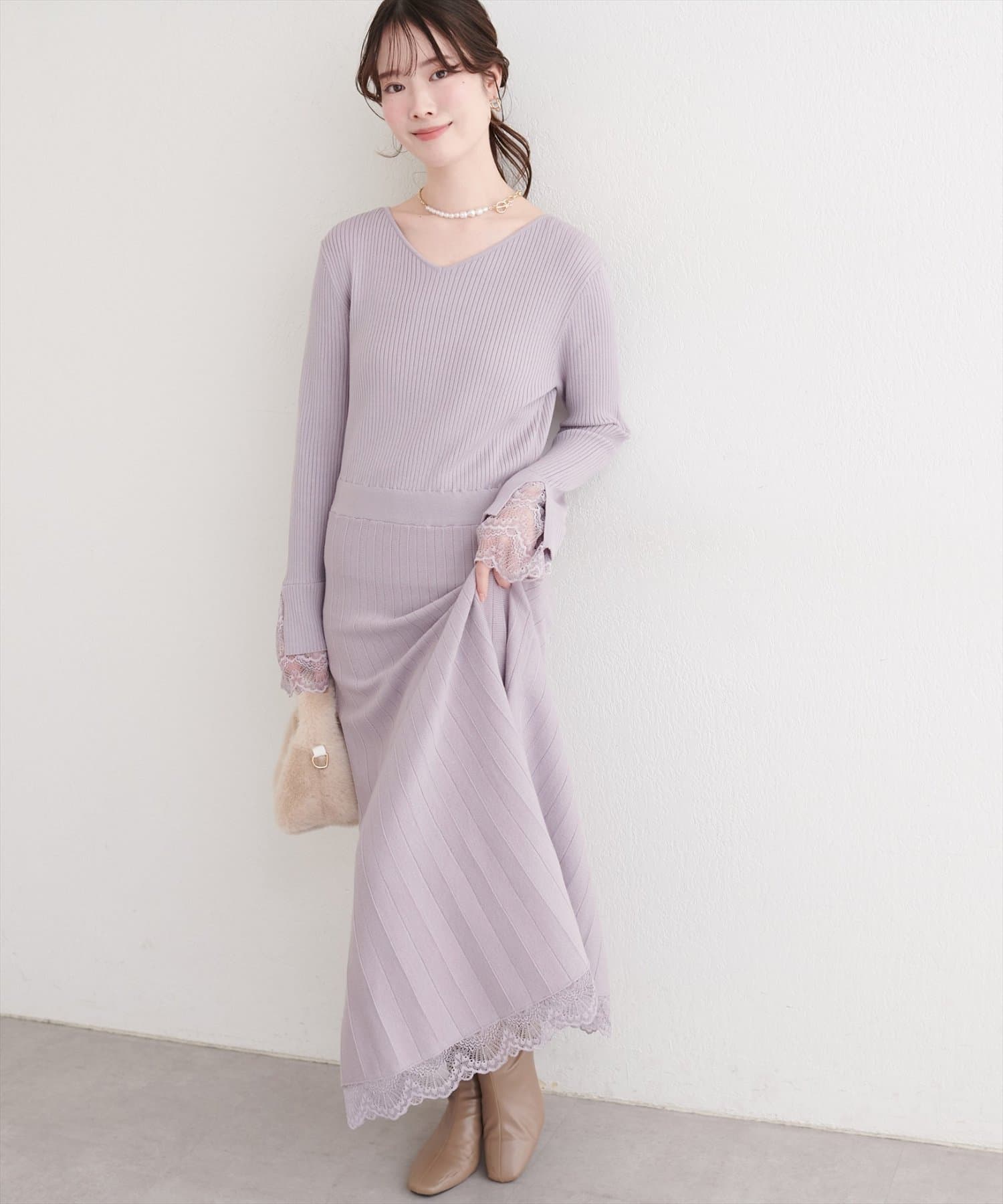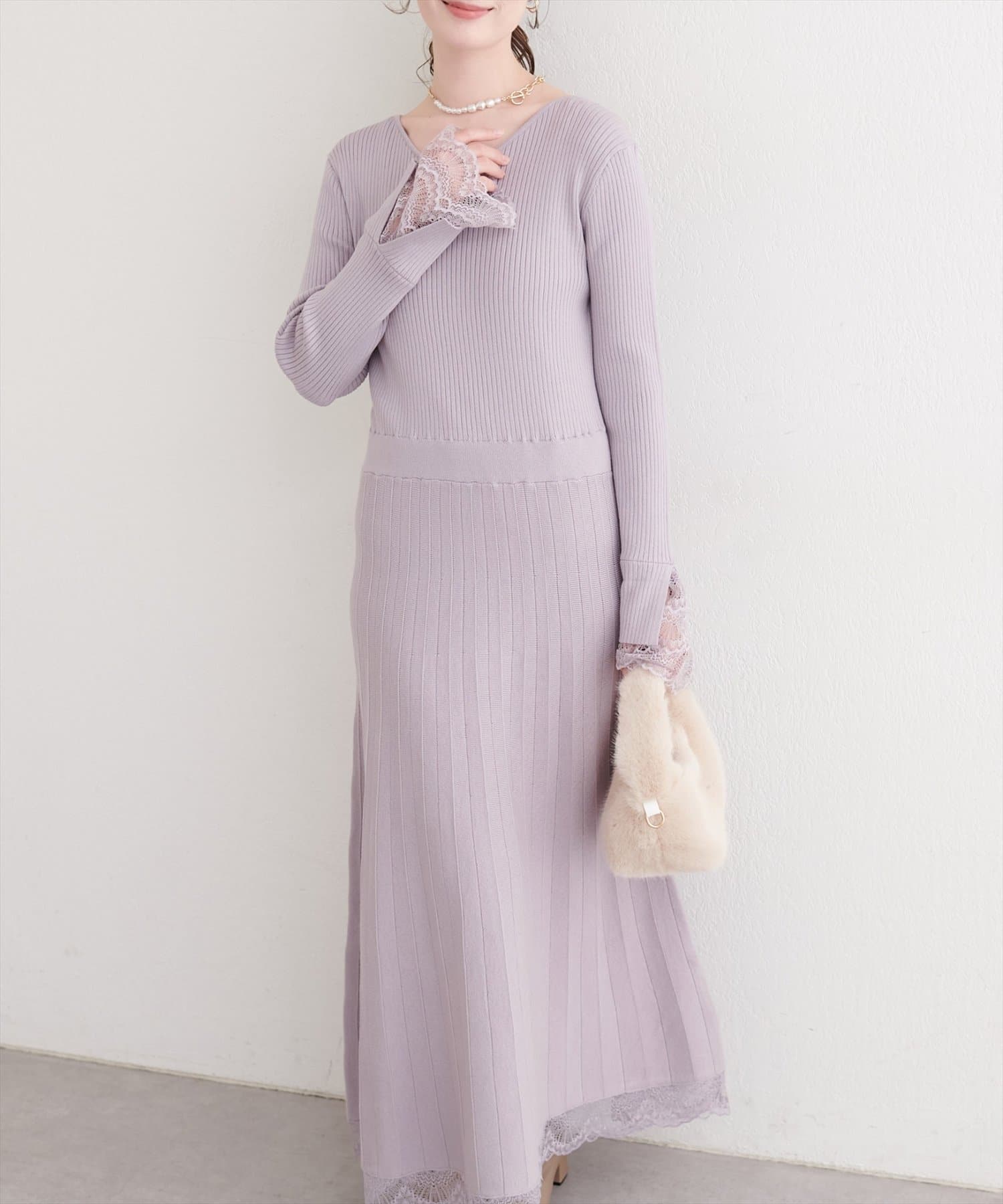 袖口と裾にあしらわれた繊細なレースが目を惹くポイント◎