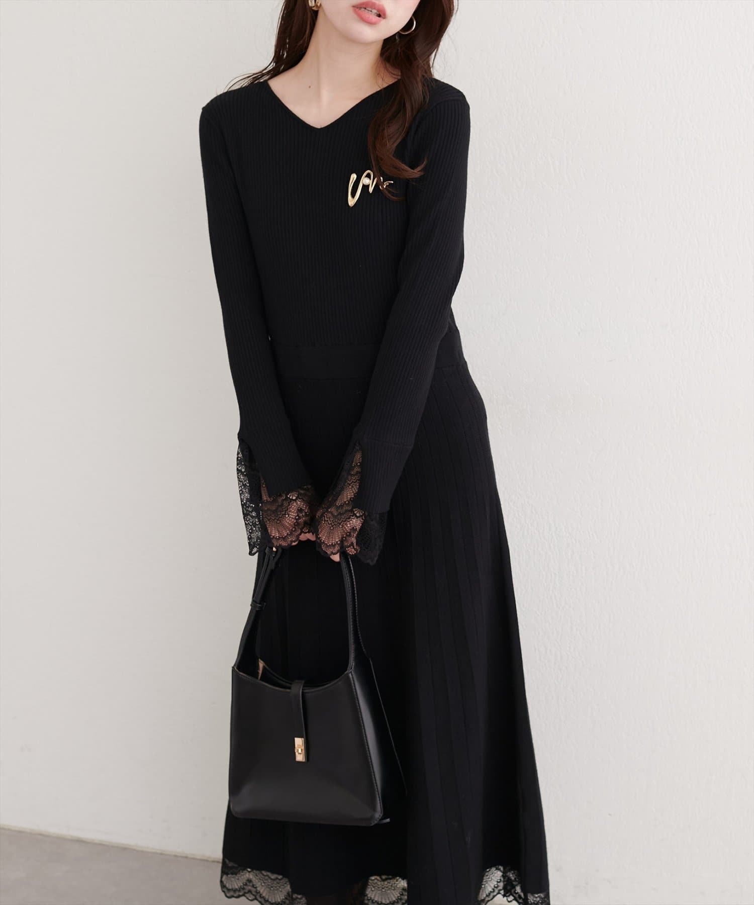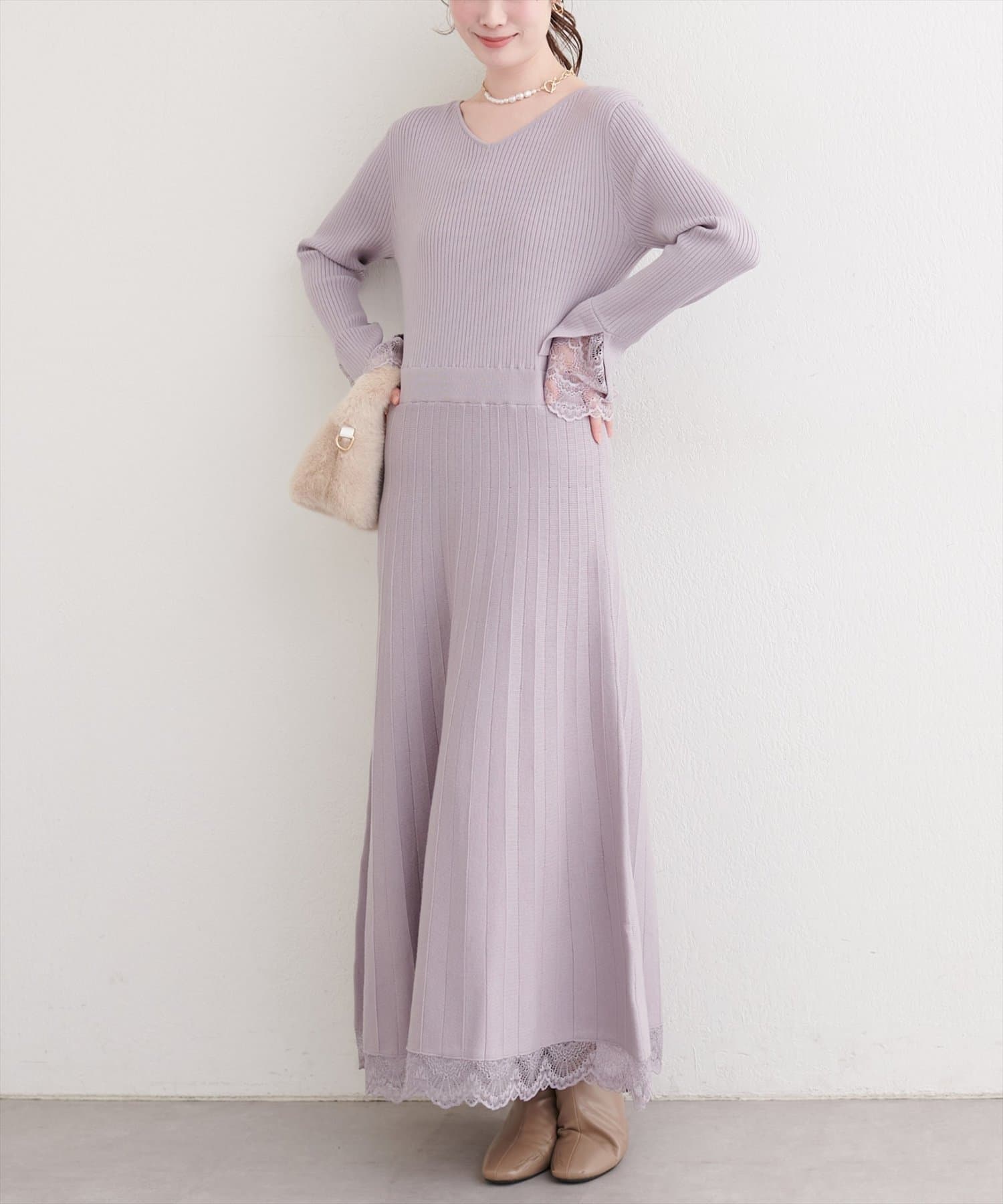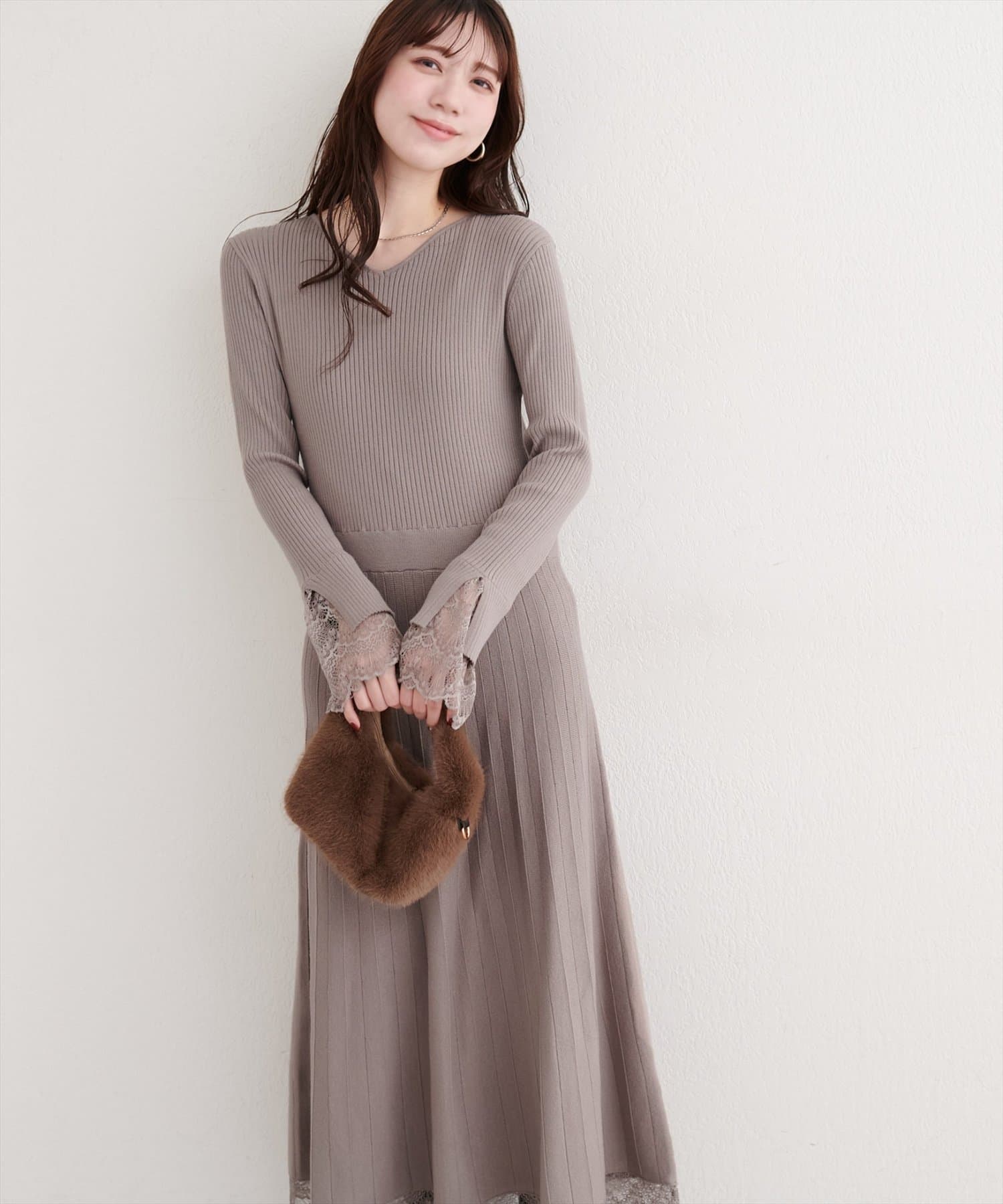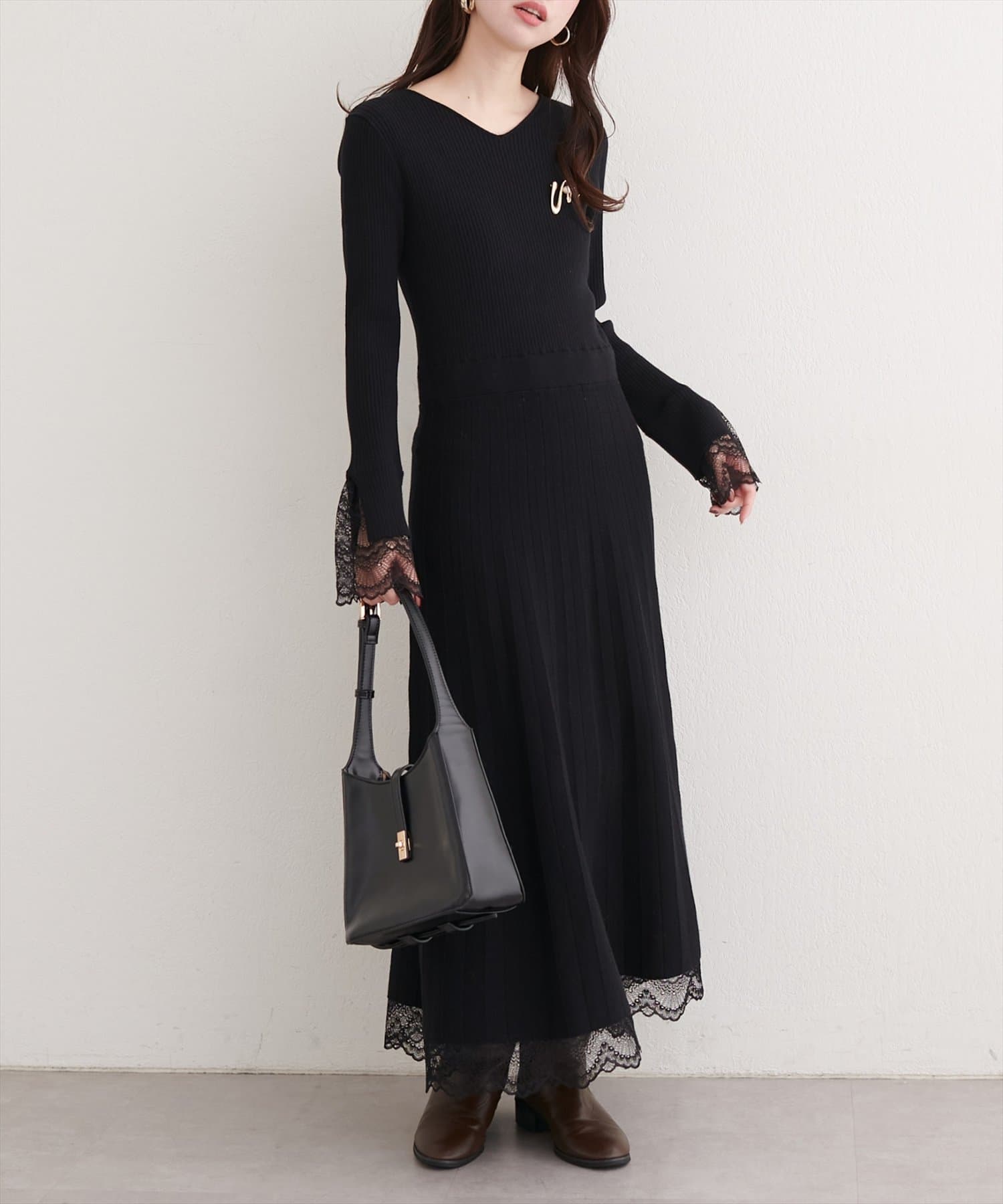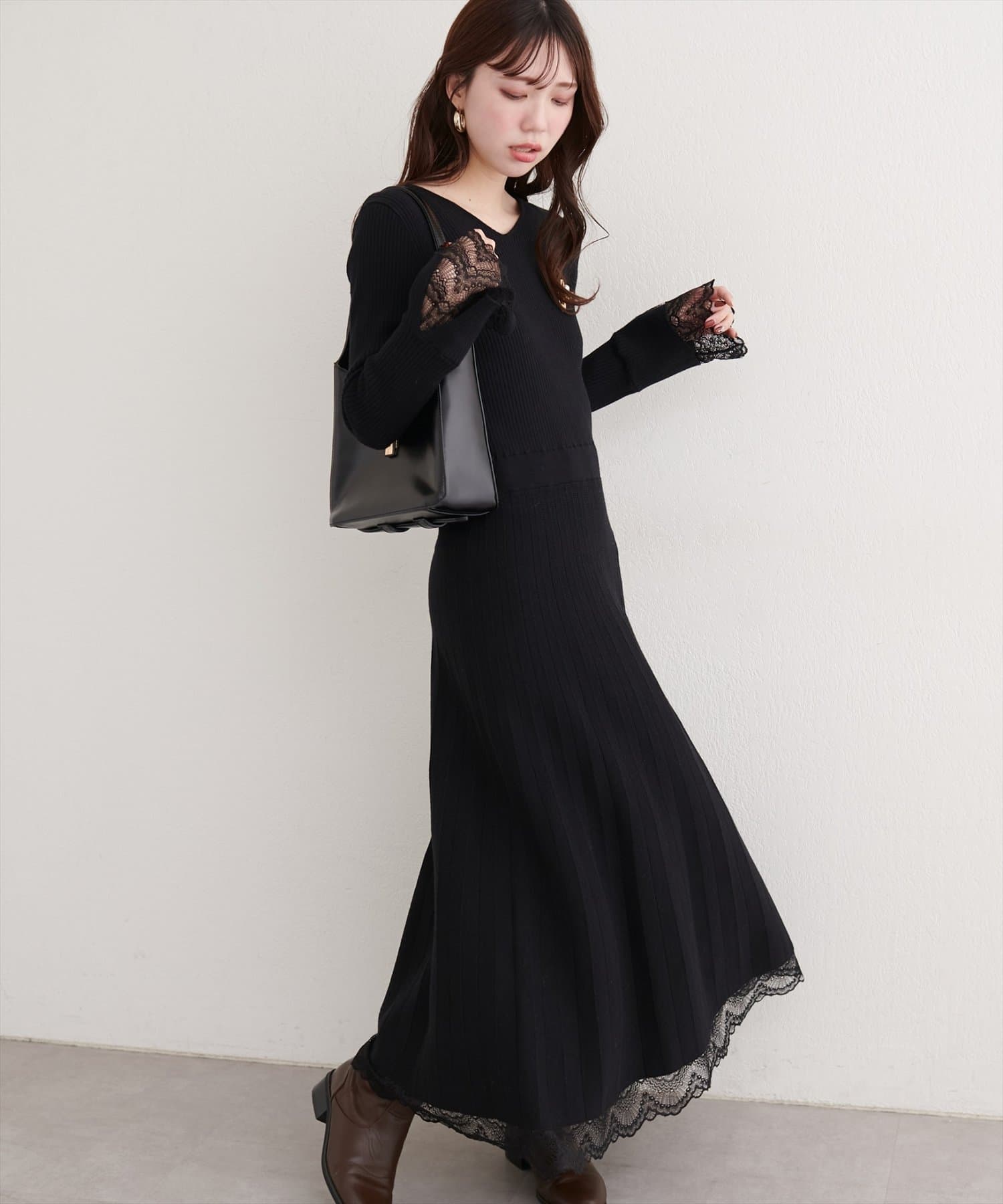 袖口と裾にあしらわれた繊細なレースが目を惹くポイント◎