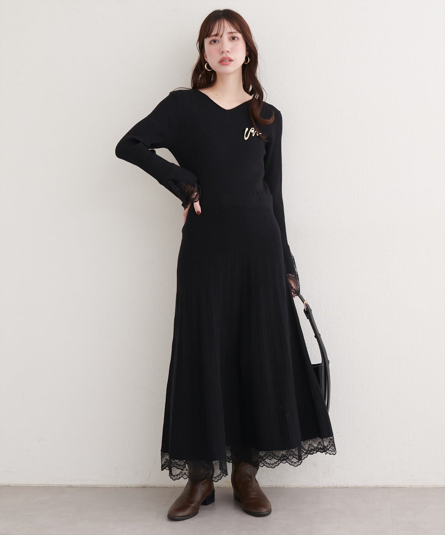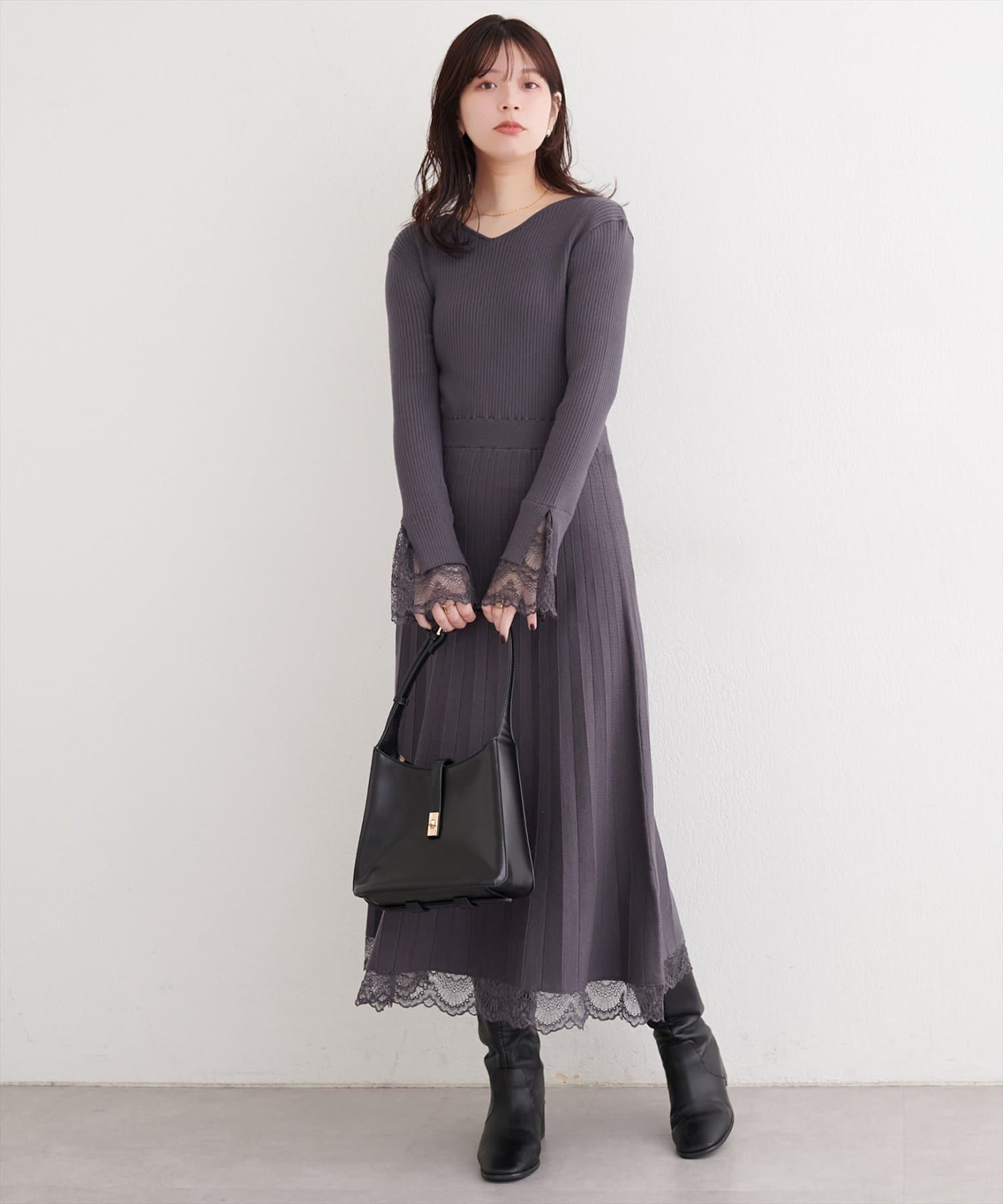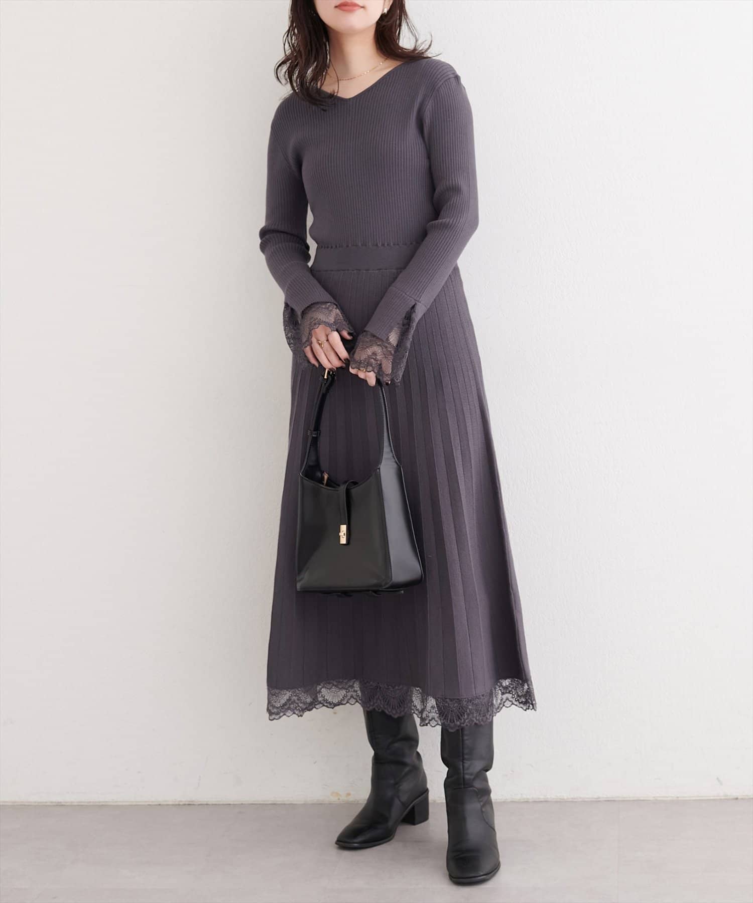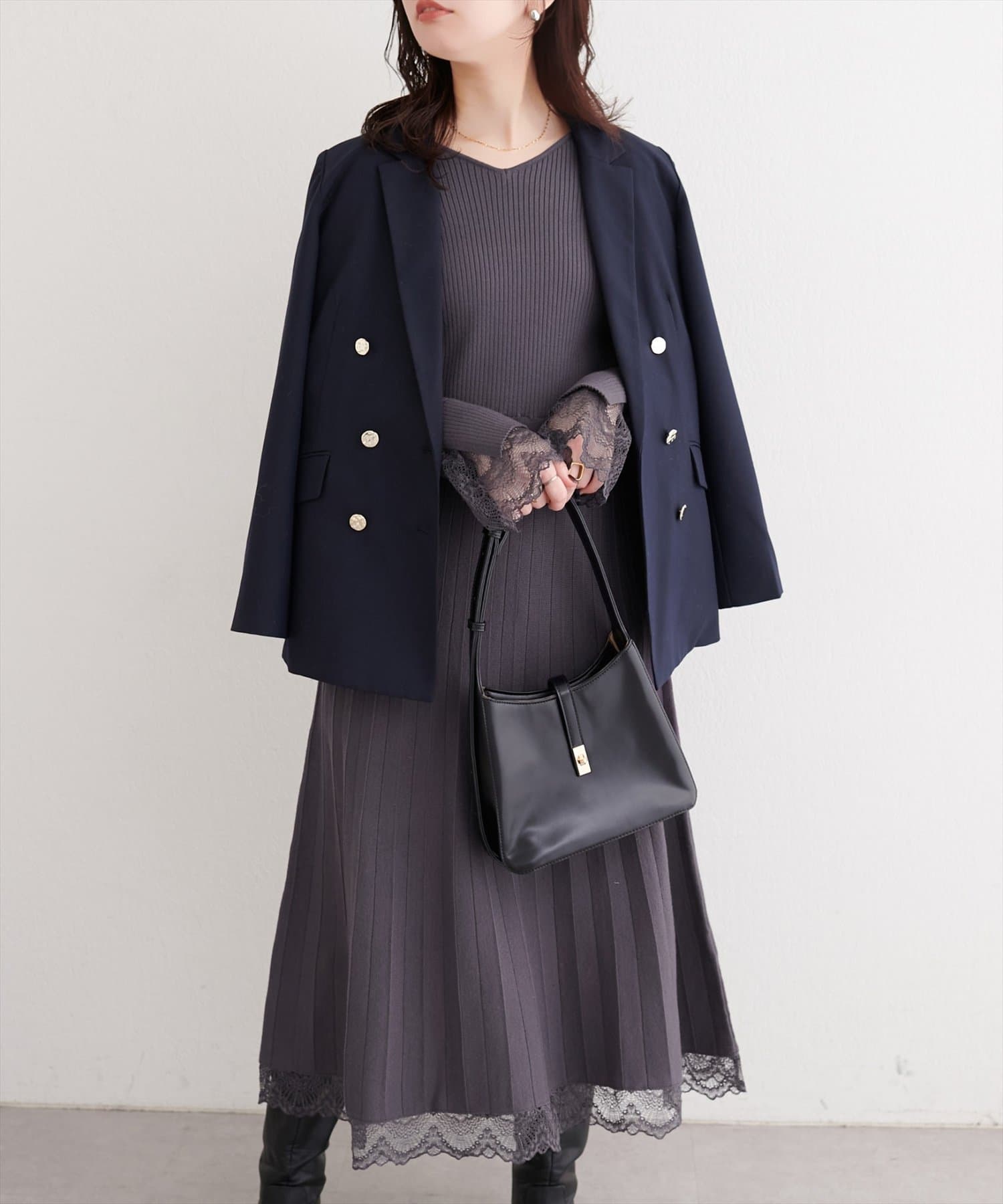 袖口と裾にあしらわれた繊細なレースが目を惹くポイント◎