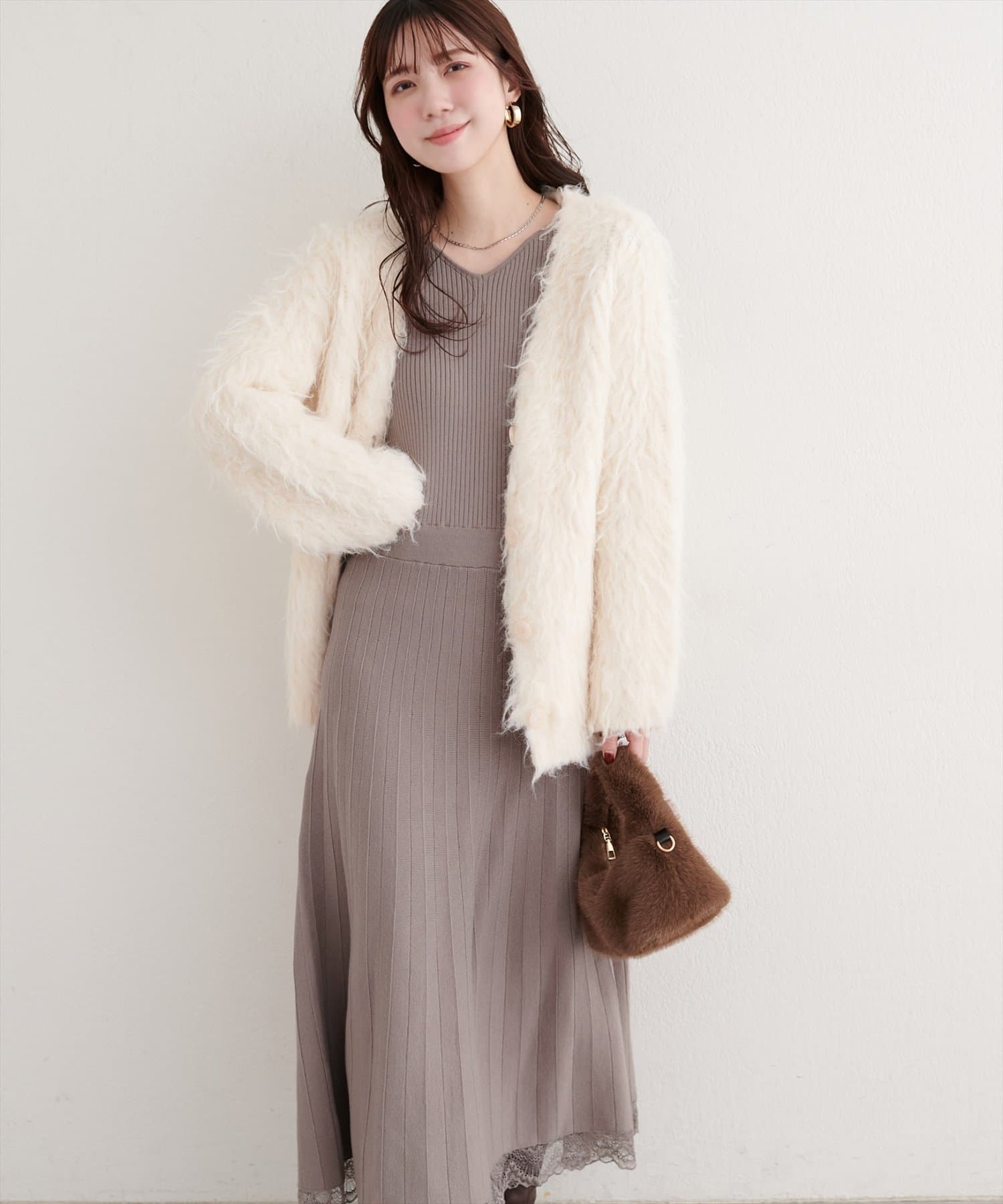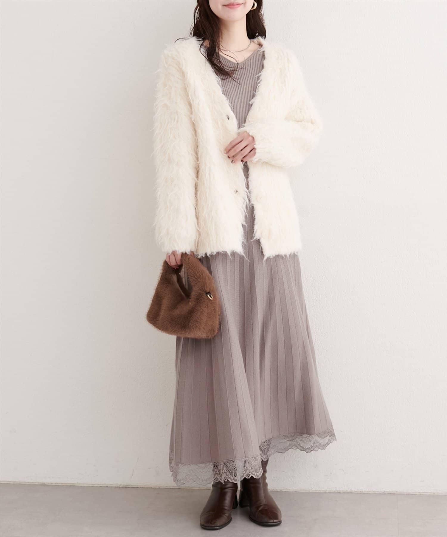 シンプルなアイテムなので、これからの季節にぴったりな、ボリュームのありファーベストや、ボアコートなどと