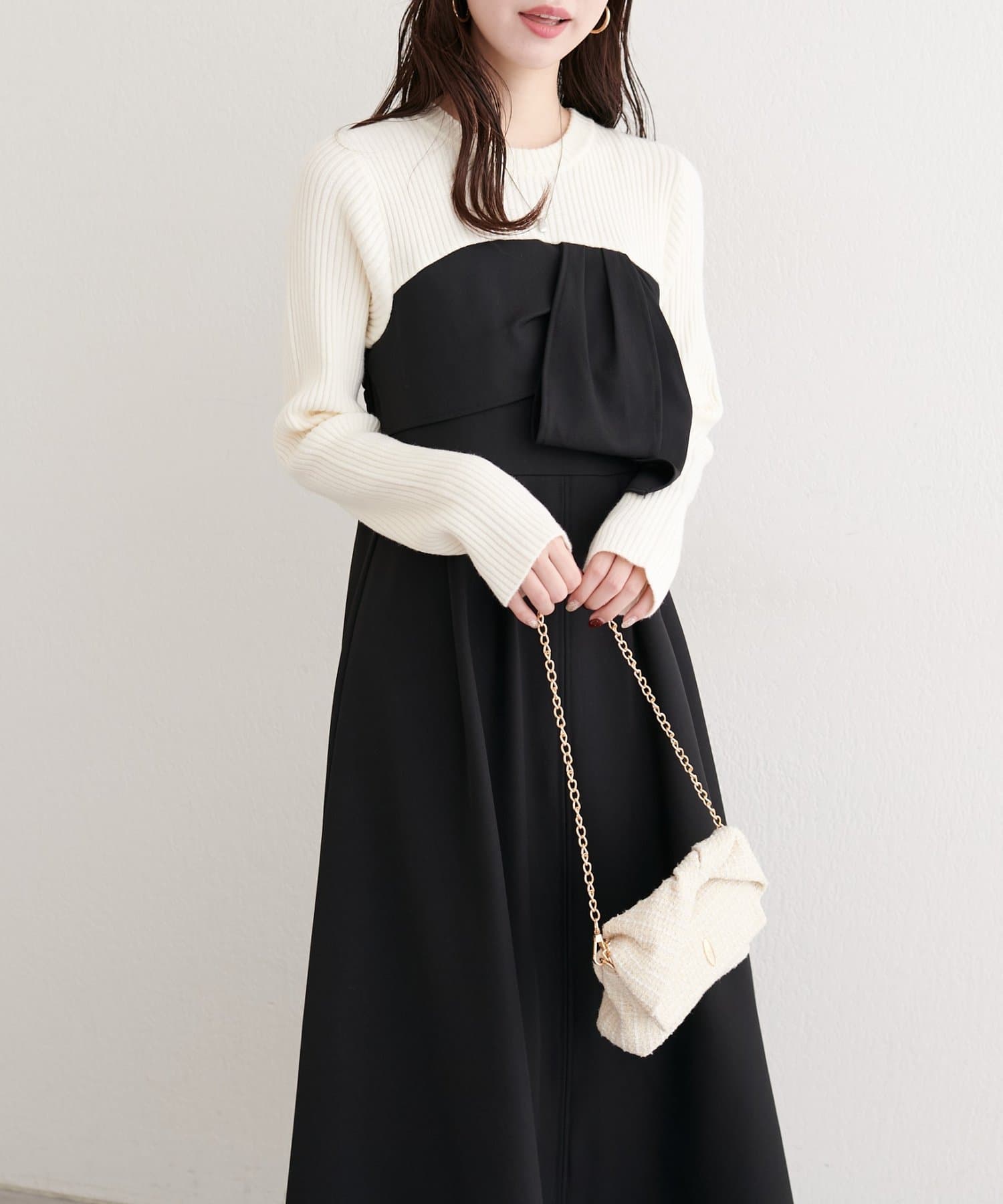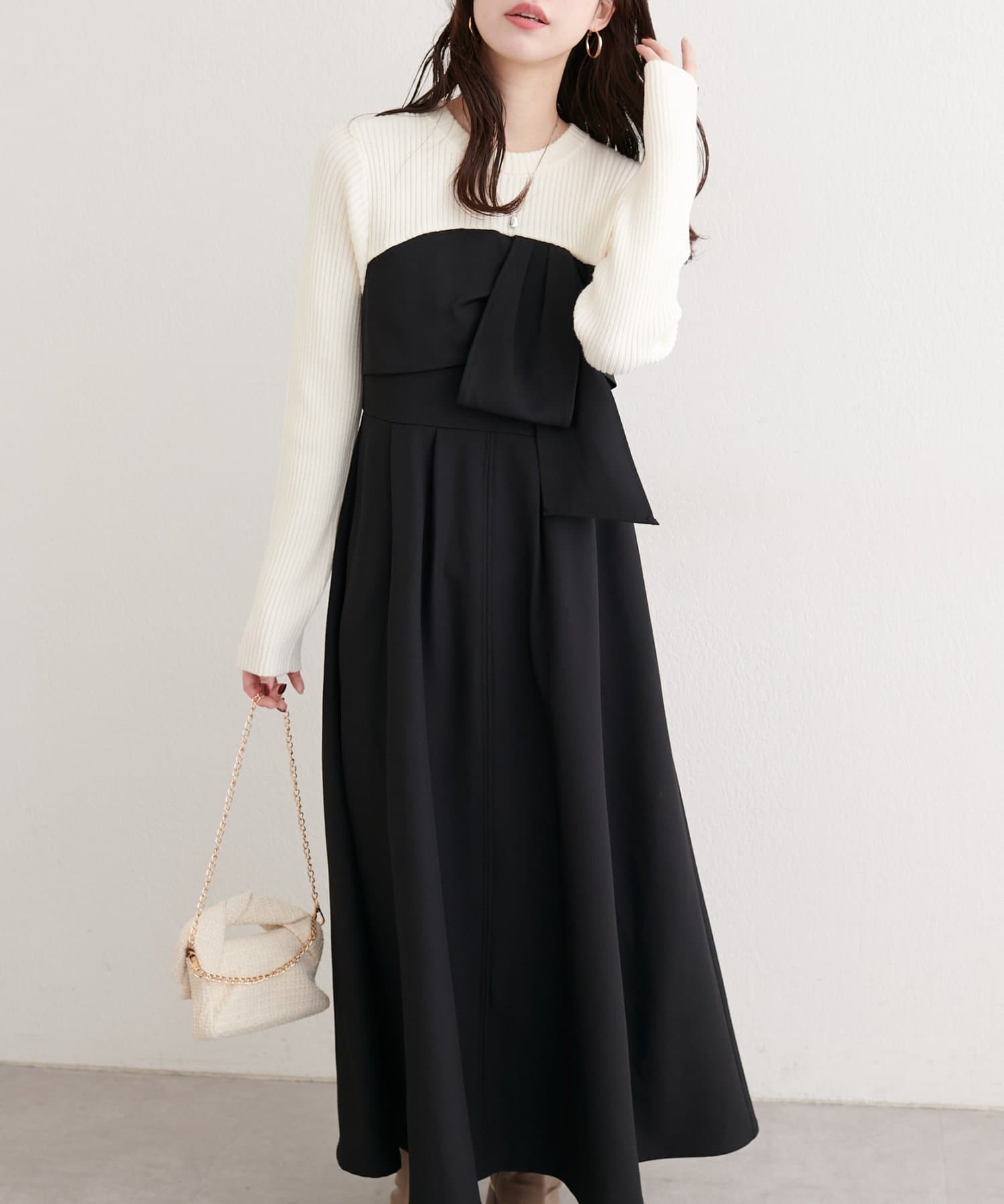 • natural couture(ナチュラルクチュール) リボン風ドッキングワンピース