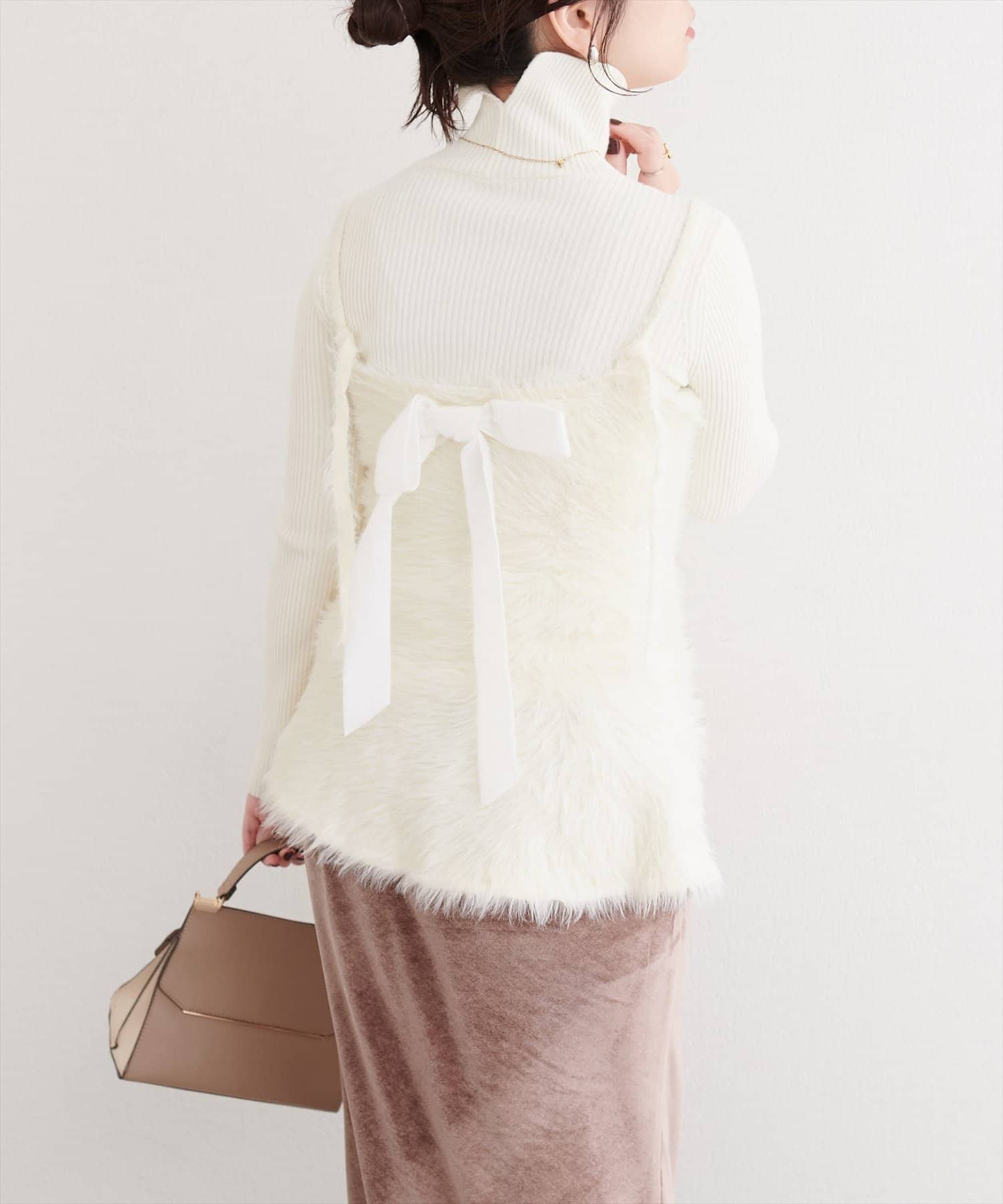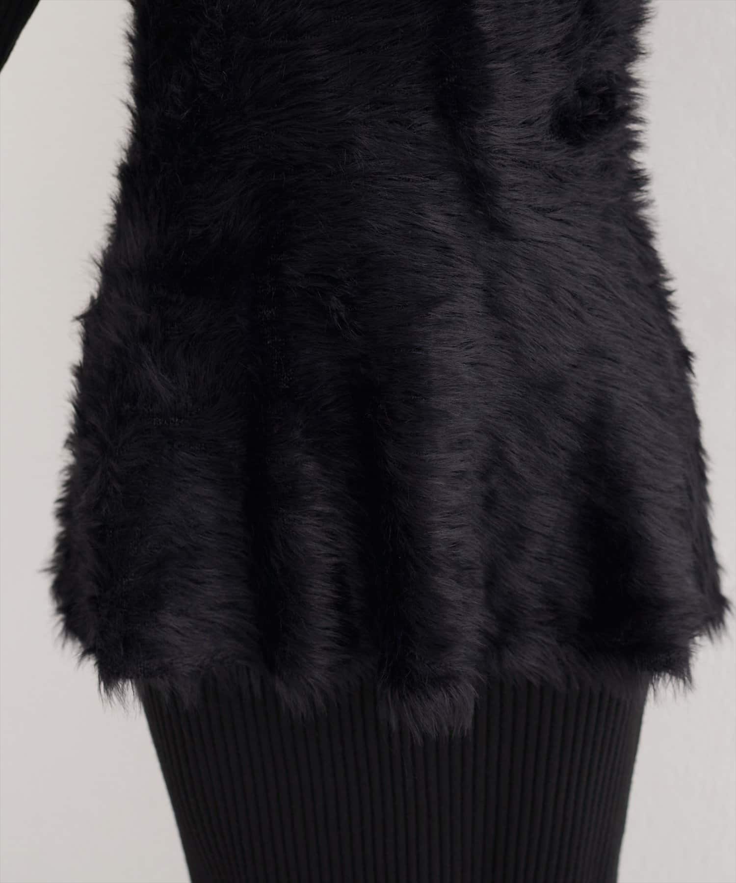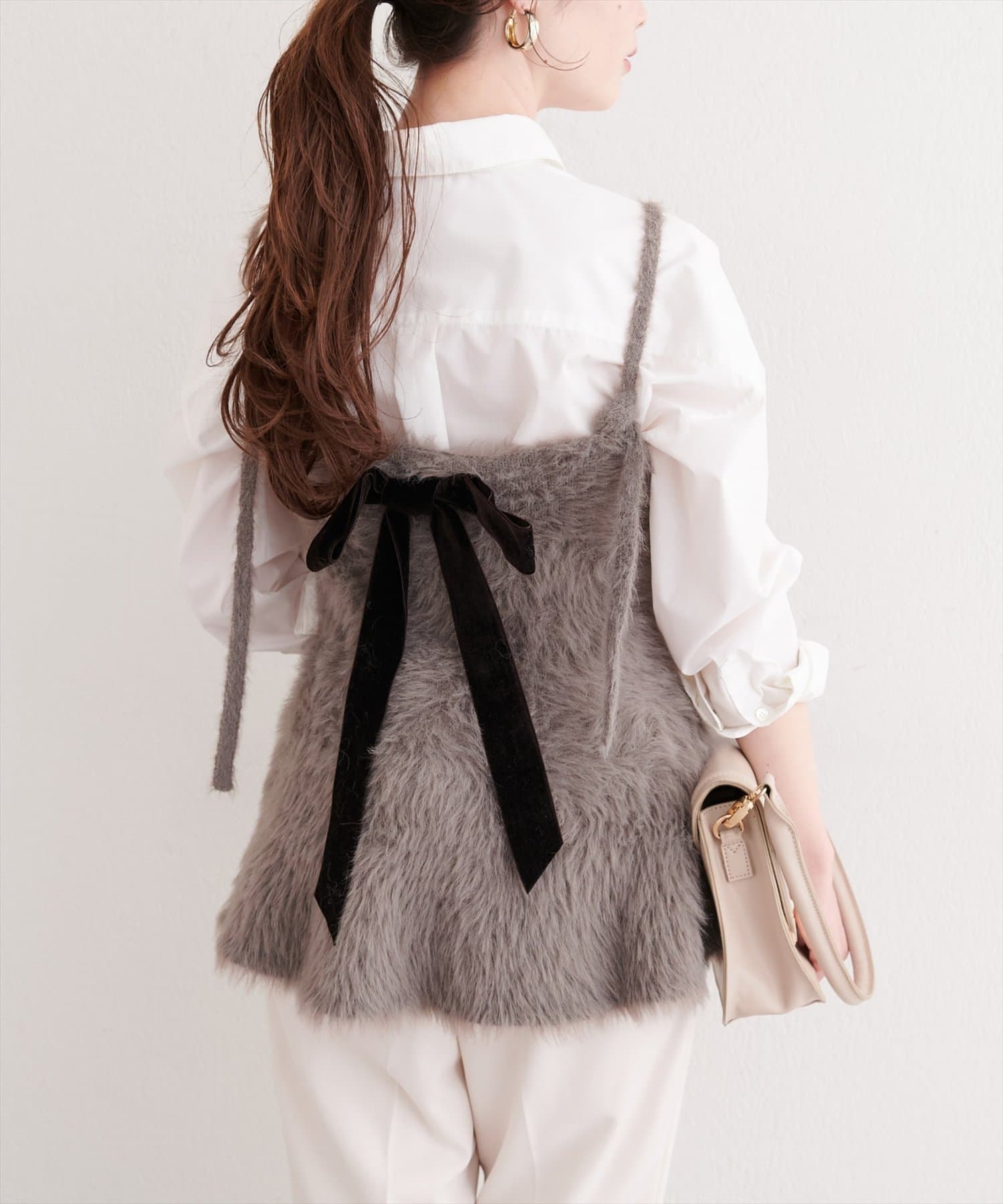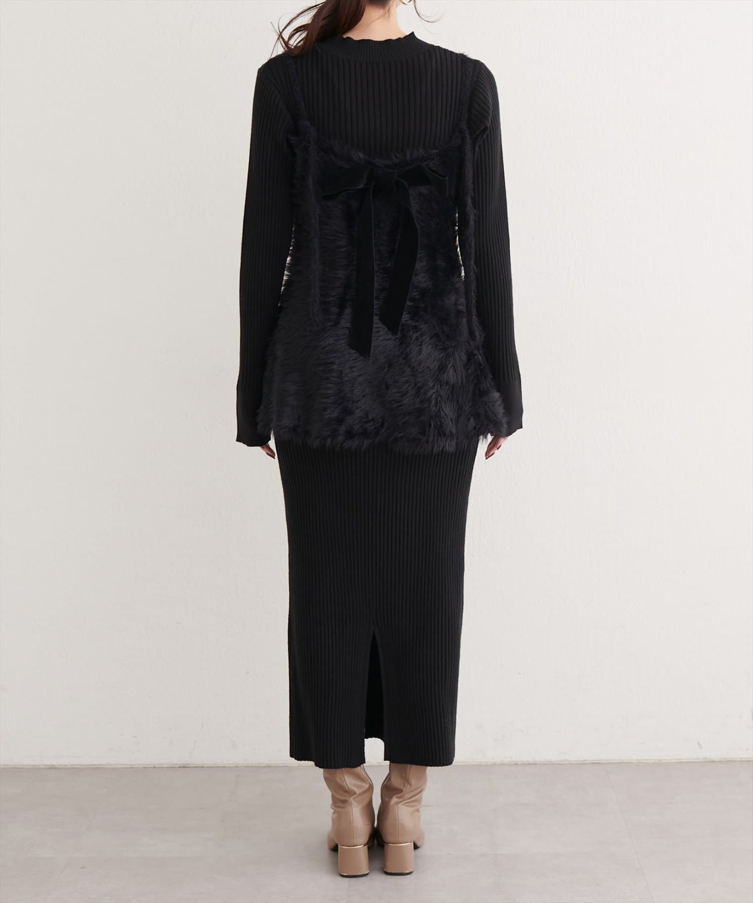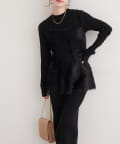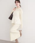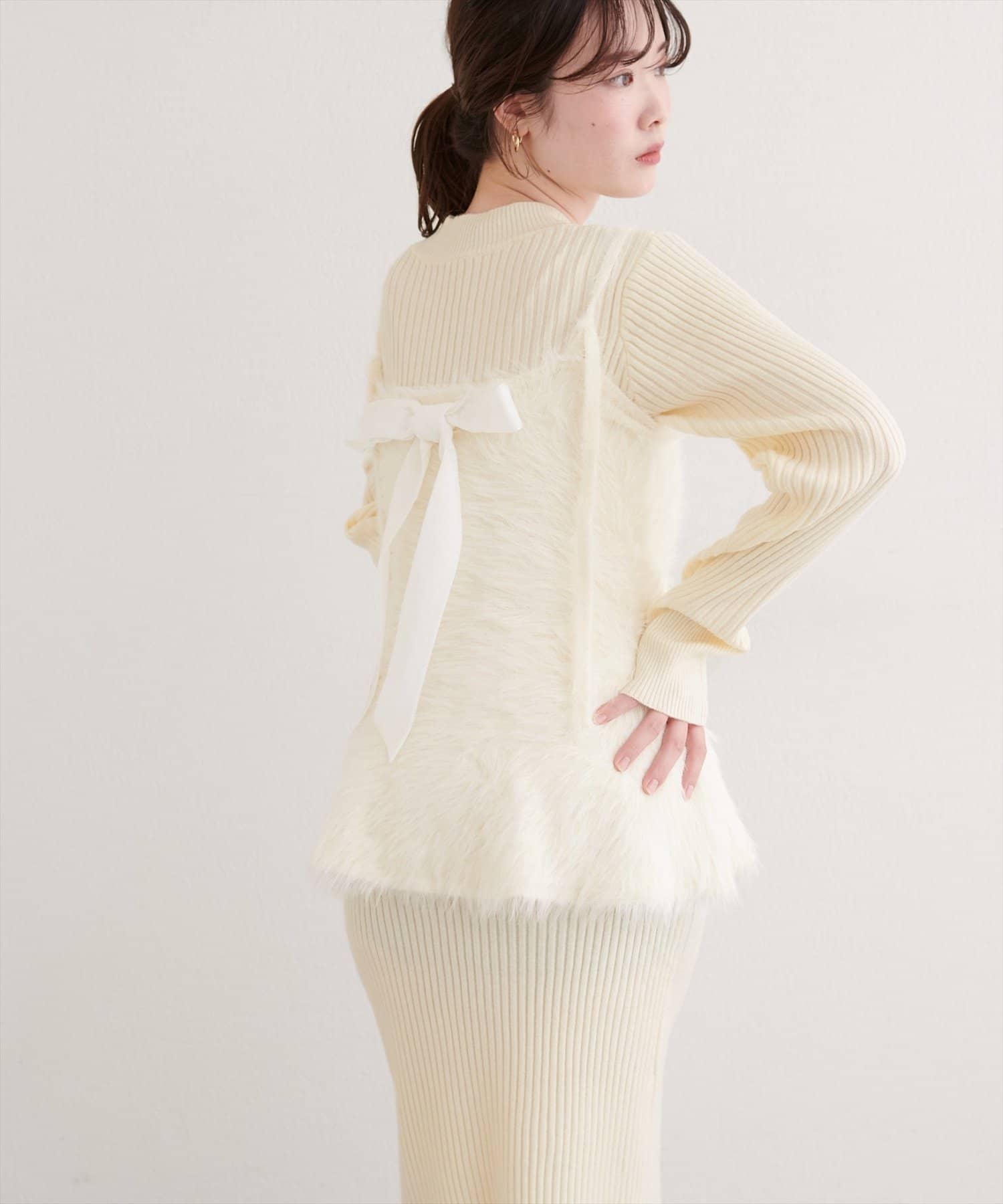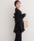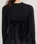 バックリボンが目を惹くペプラムビスチェは、ふわふわとした素材感が、ニットワンピースに奥行きと立体感をプラス。