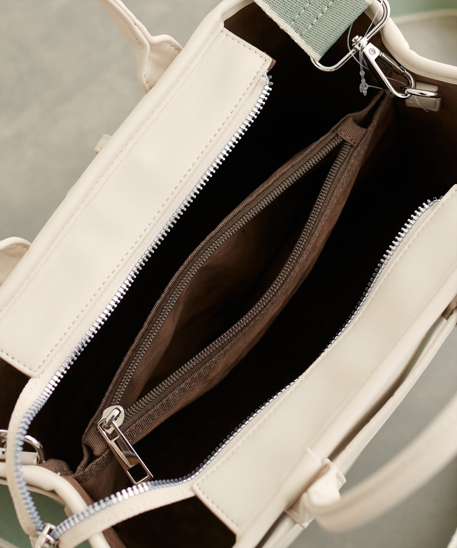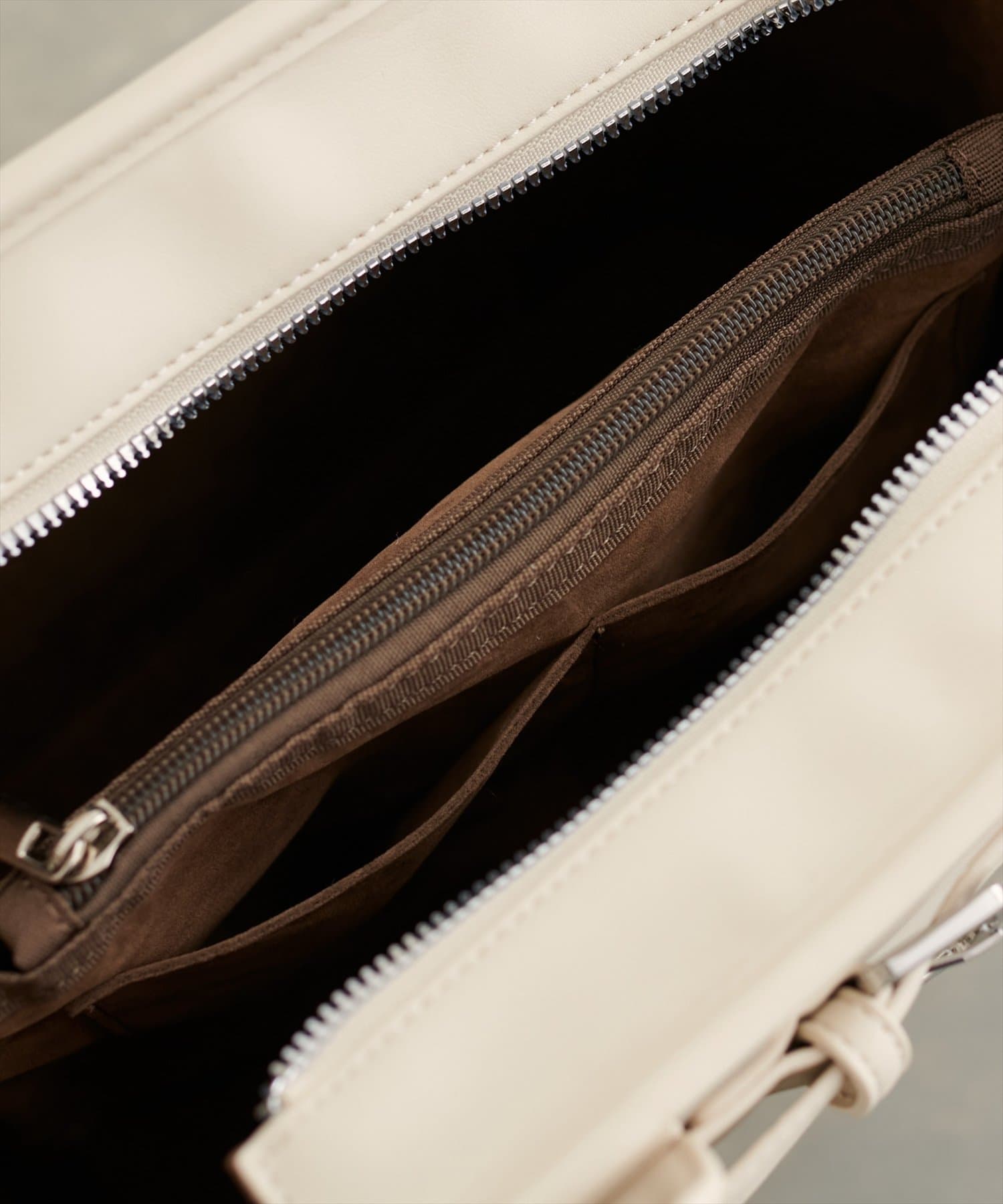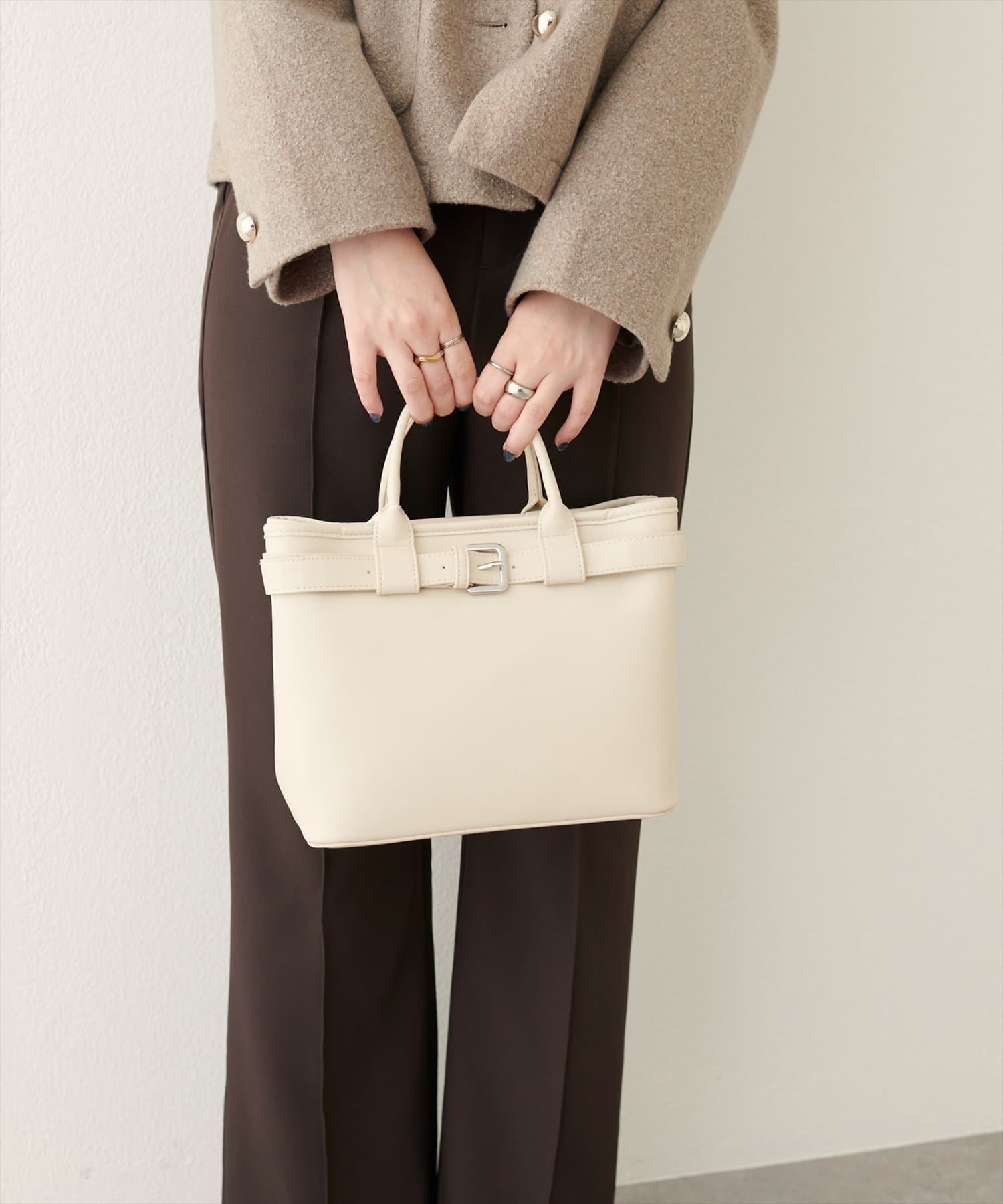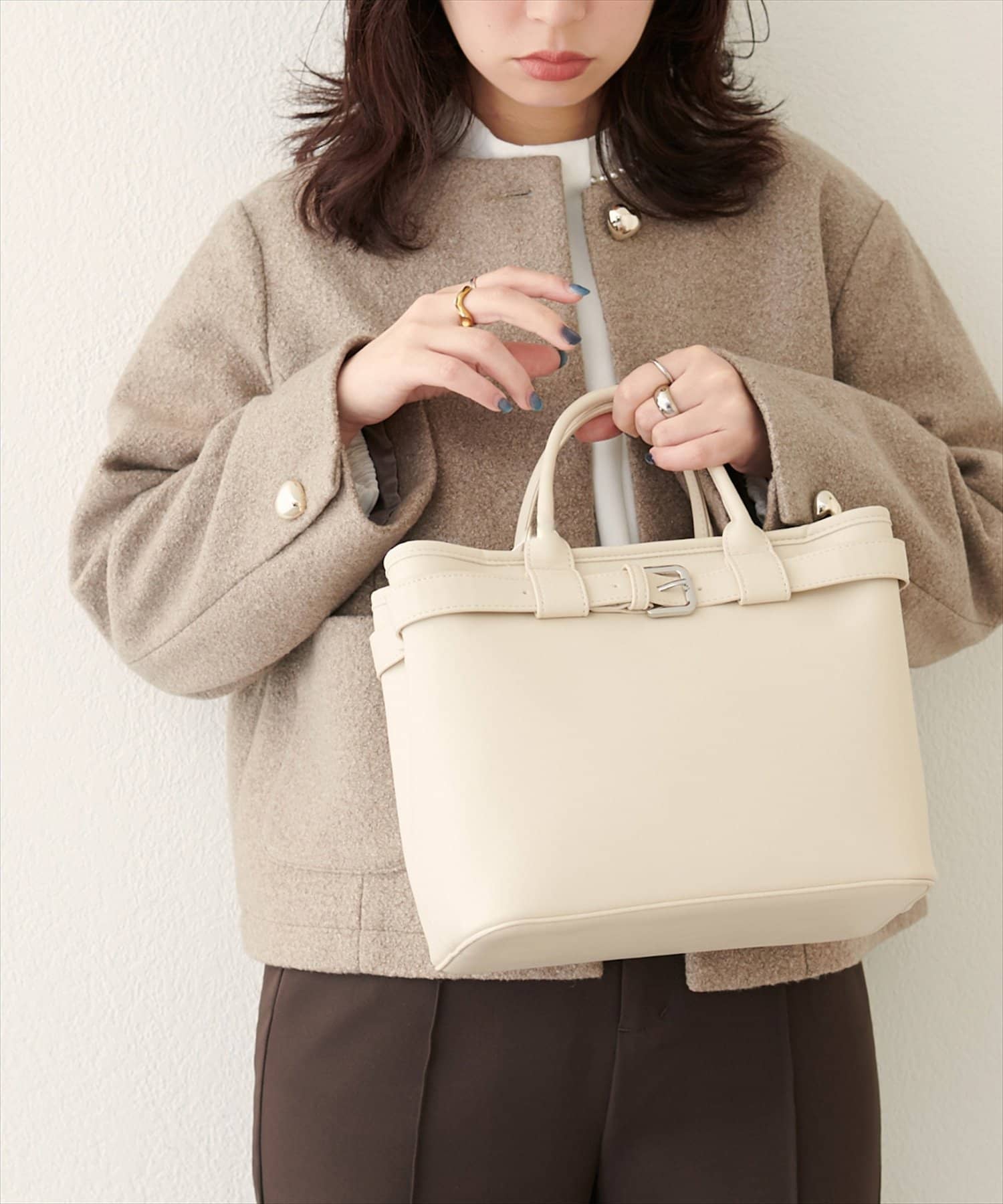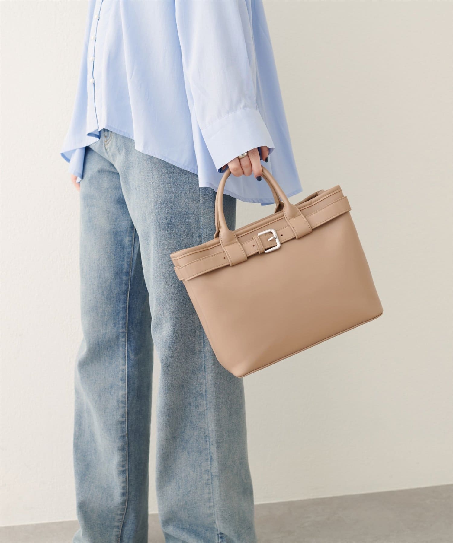 日々のスタイリングに上品さをプラスしてくれる、ベルトディティール仕切りトート。