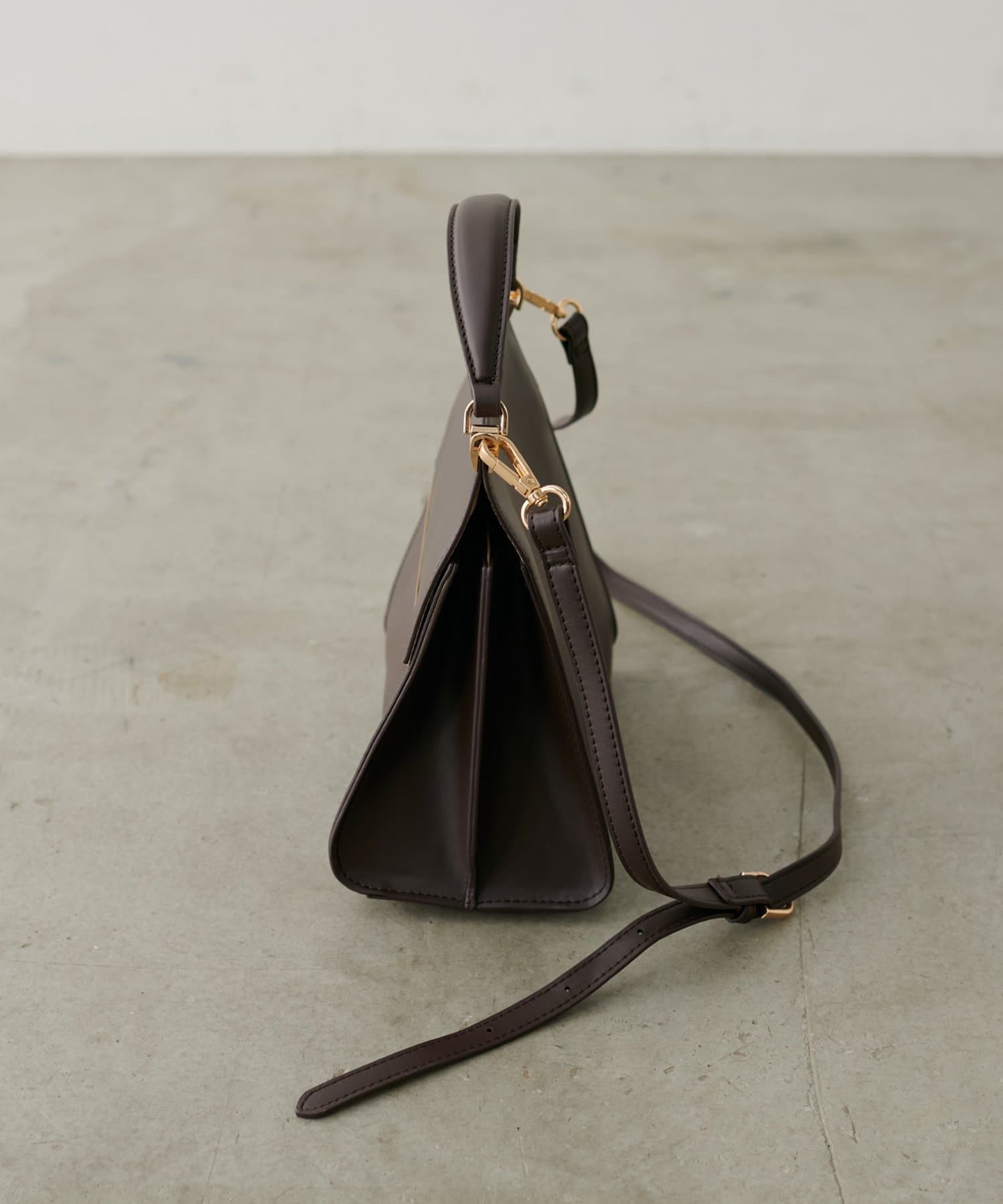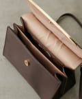 フラップ部分にあしらわれたゴールドバーが、上品なアクセントを添え、高見え効果に◎