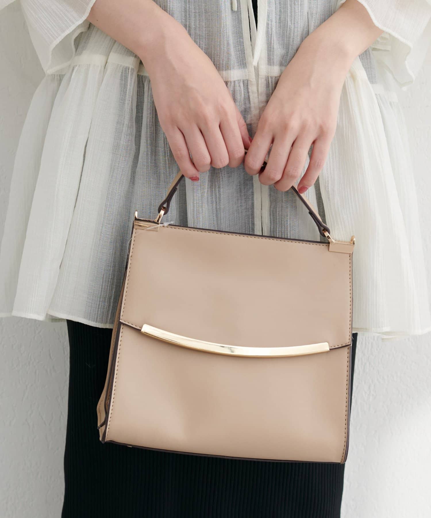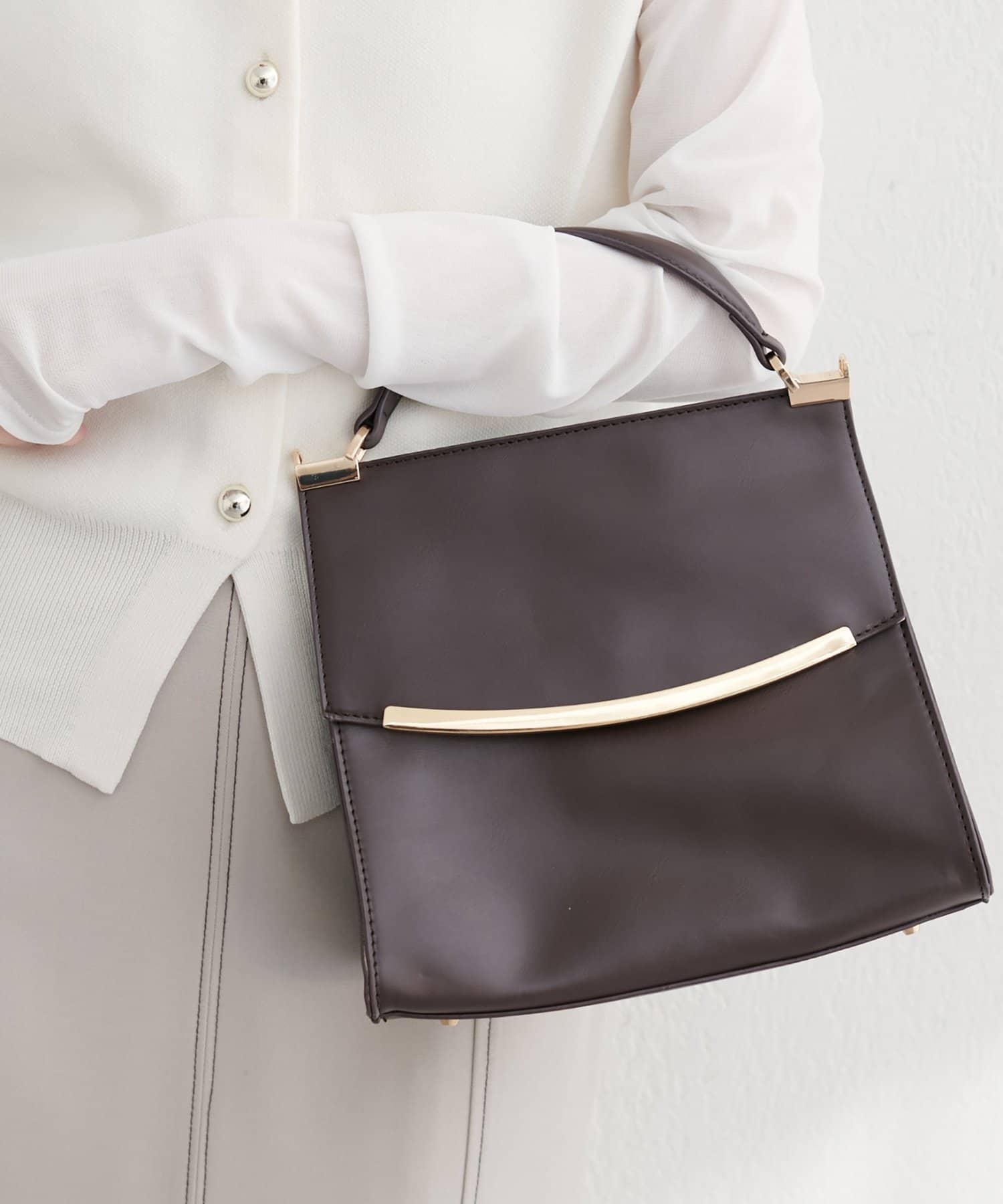付属のストラップを付ければショルダーバッグとして、外せばハンドバッグとして使える2WAY仕様なので