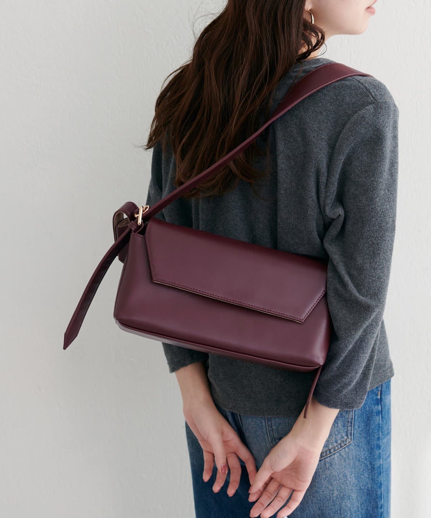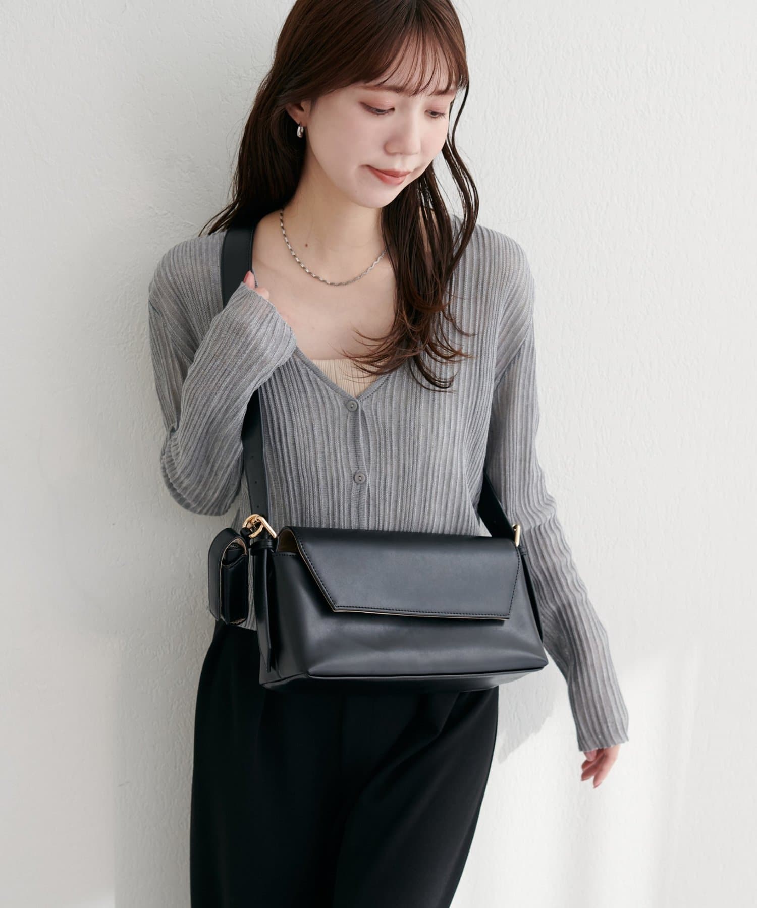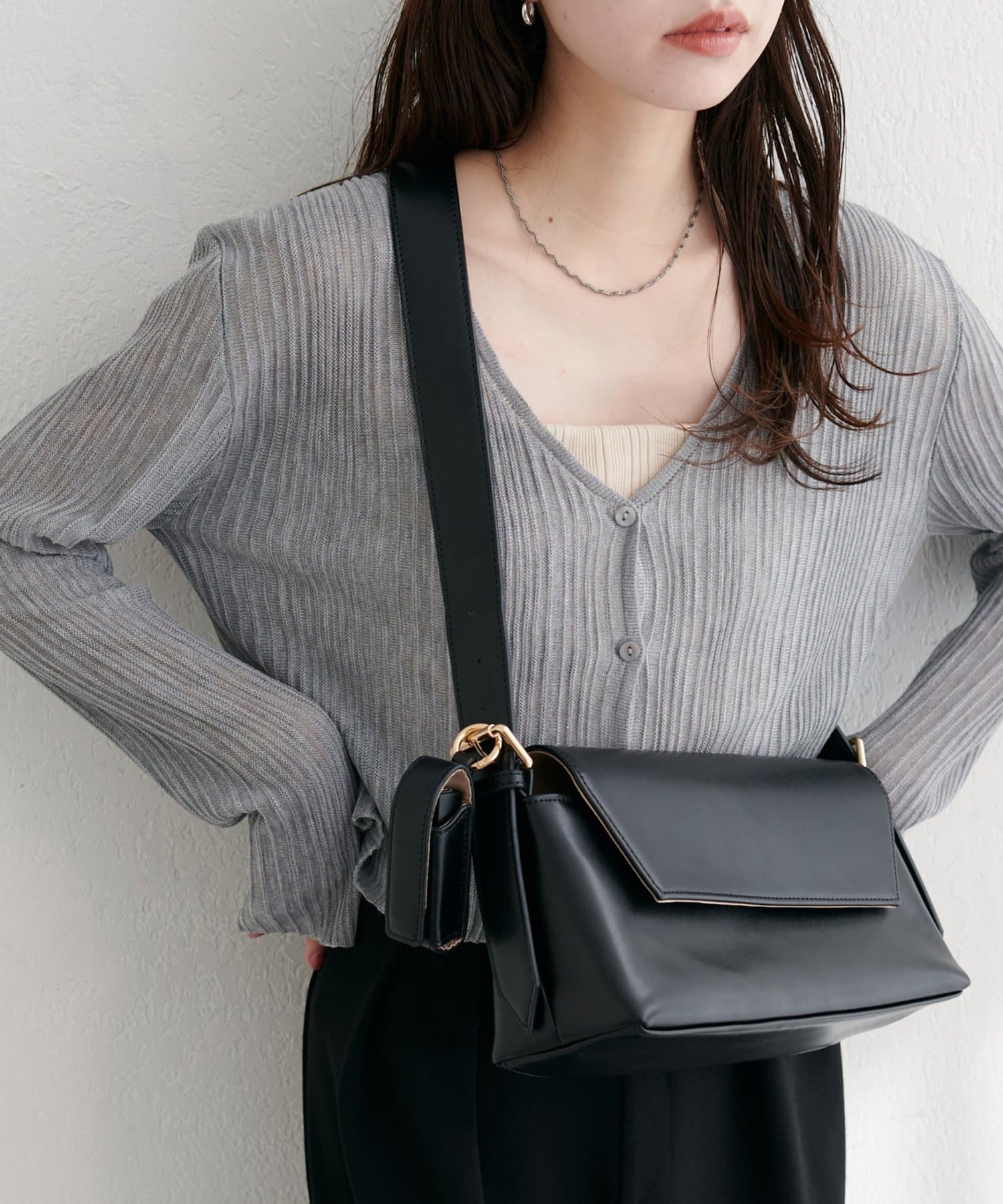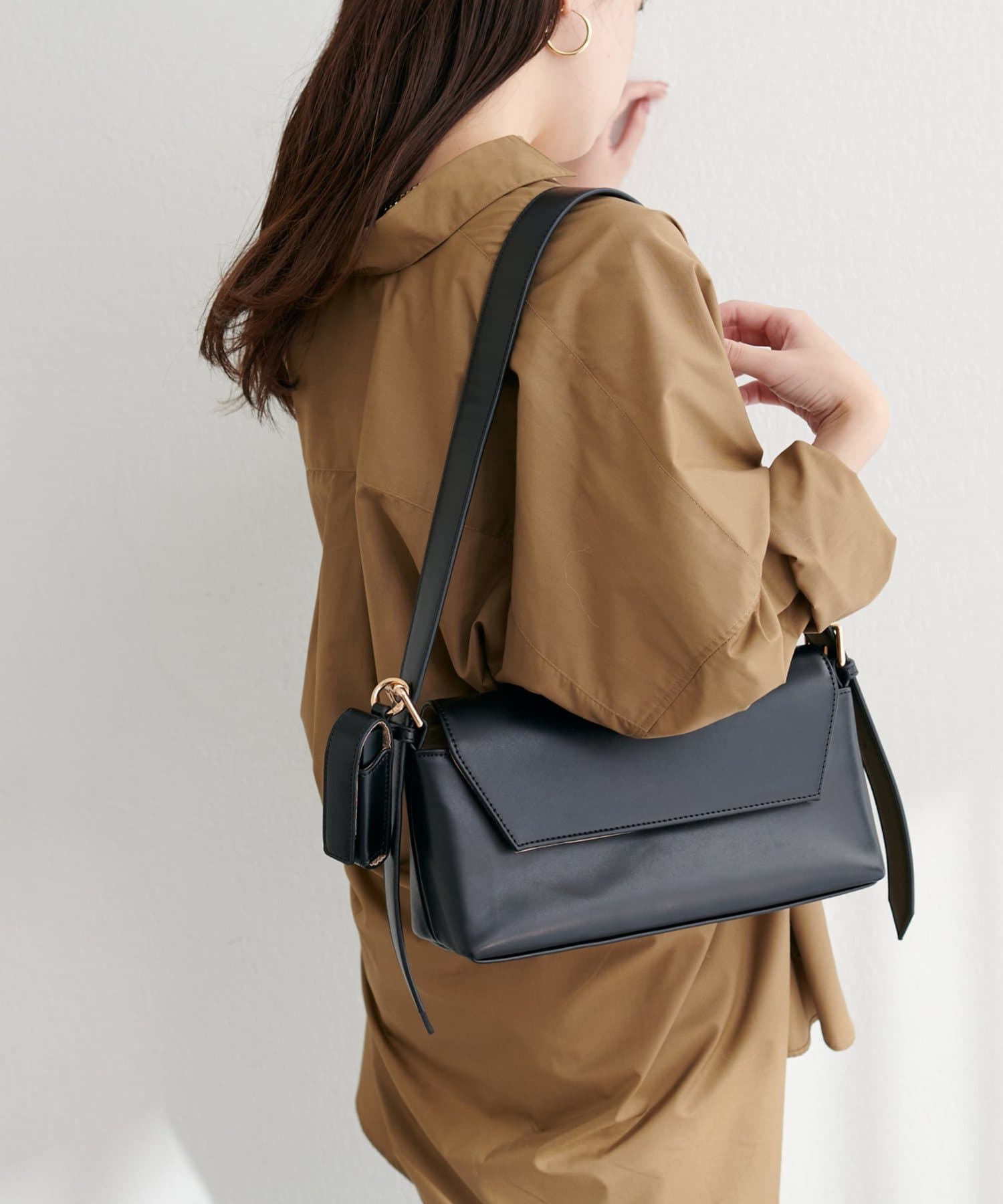 洗練されたデザインが魅力の、横長ショルダーバッグ。
