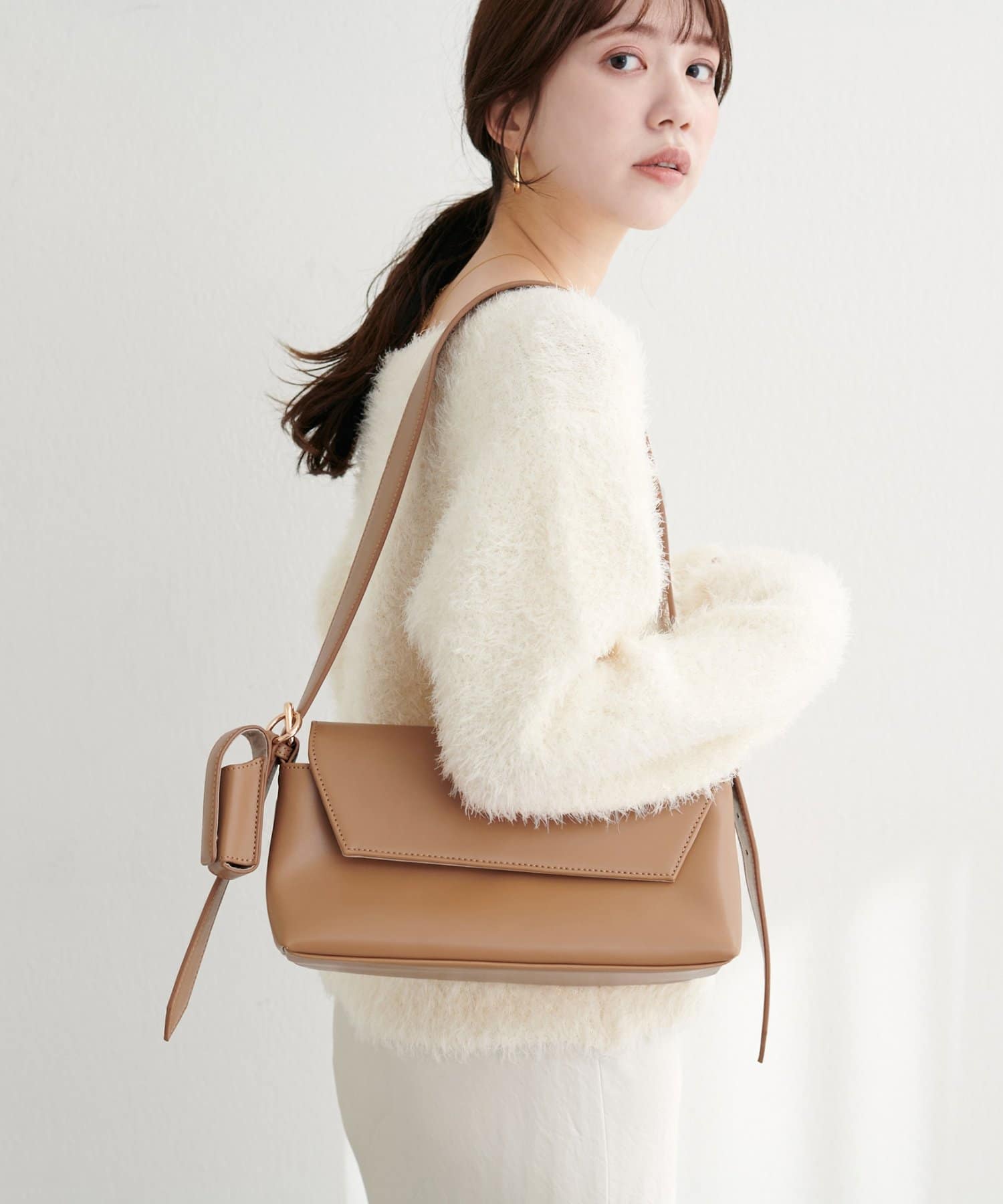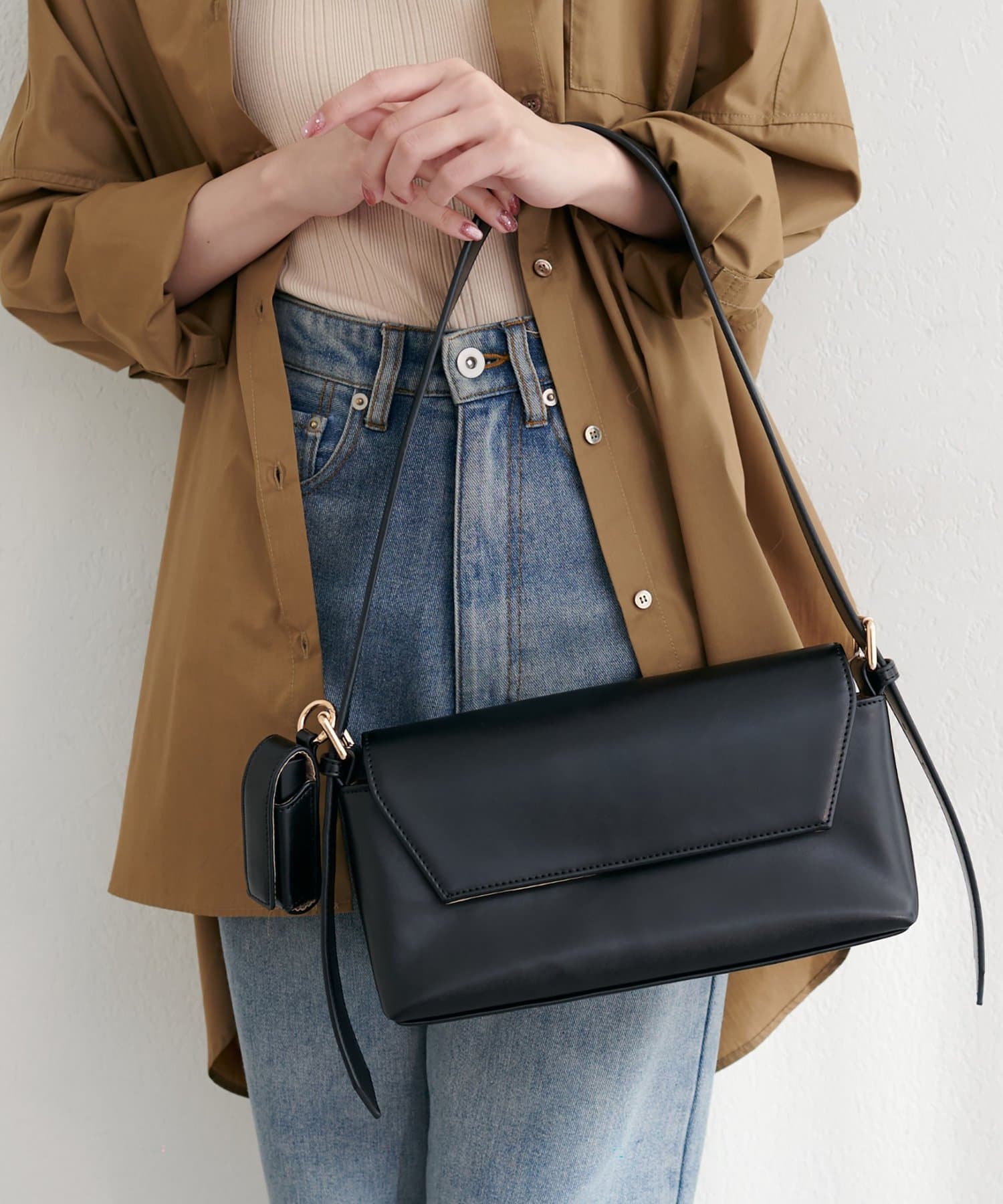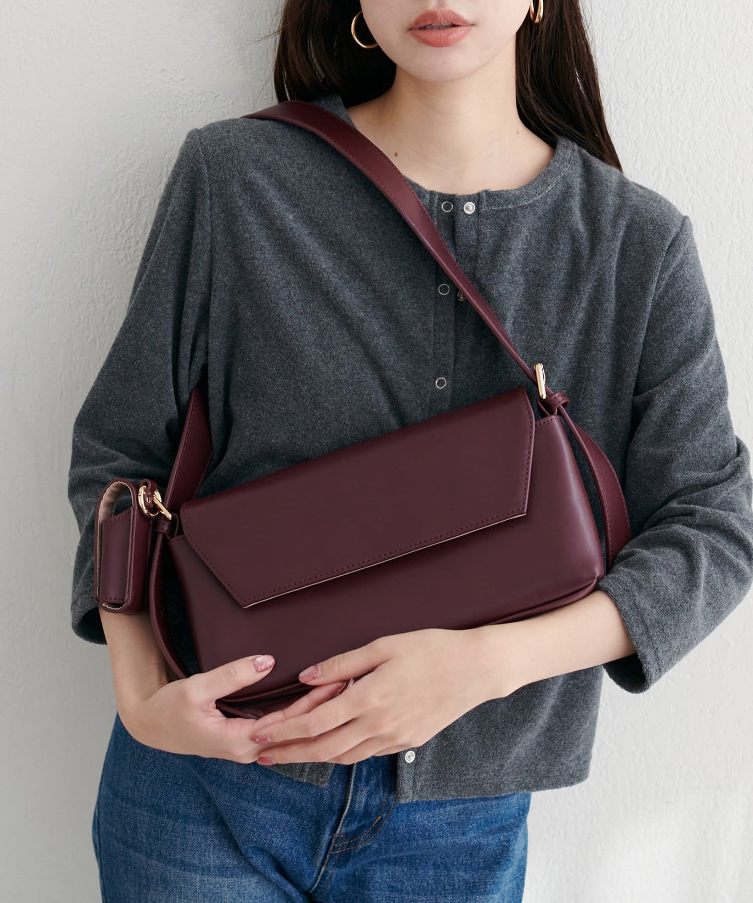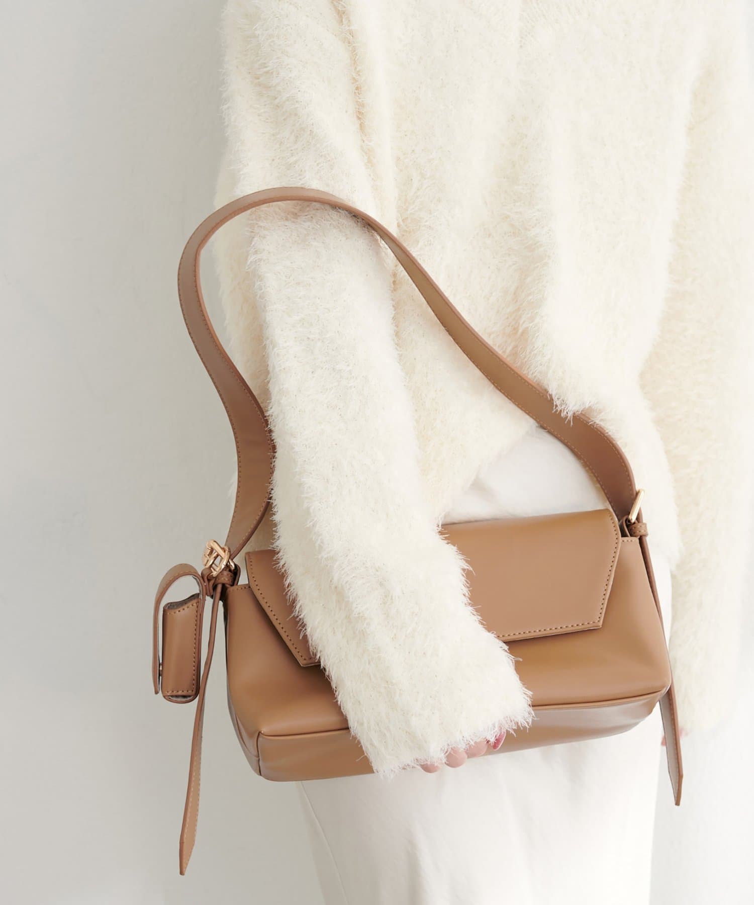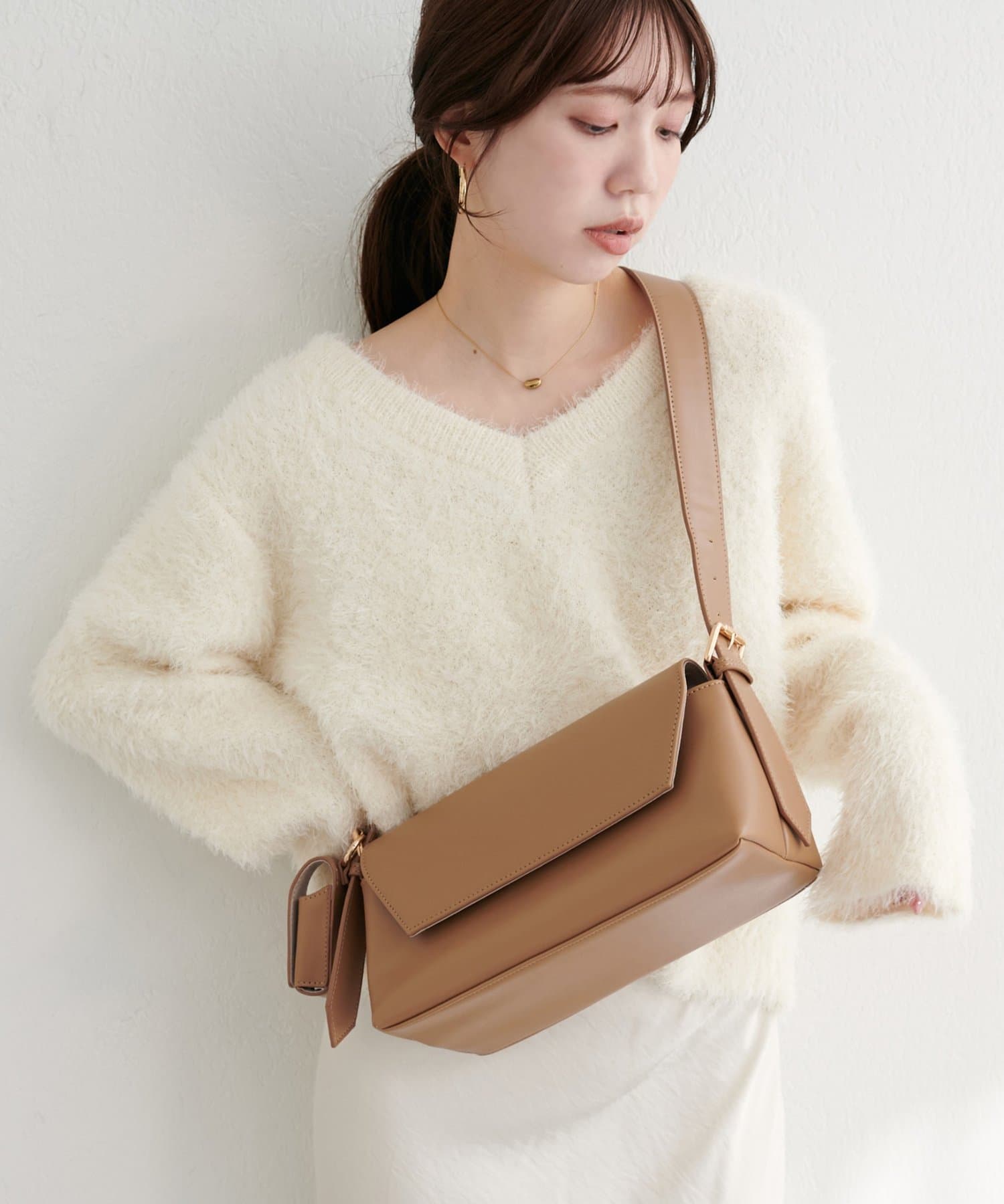 洗練されたデザインが魅力の、横長ショルダーバッグ。