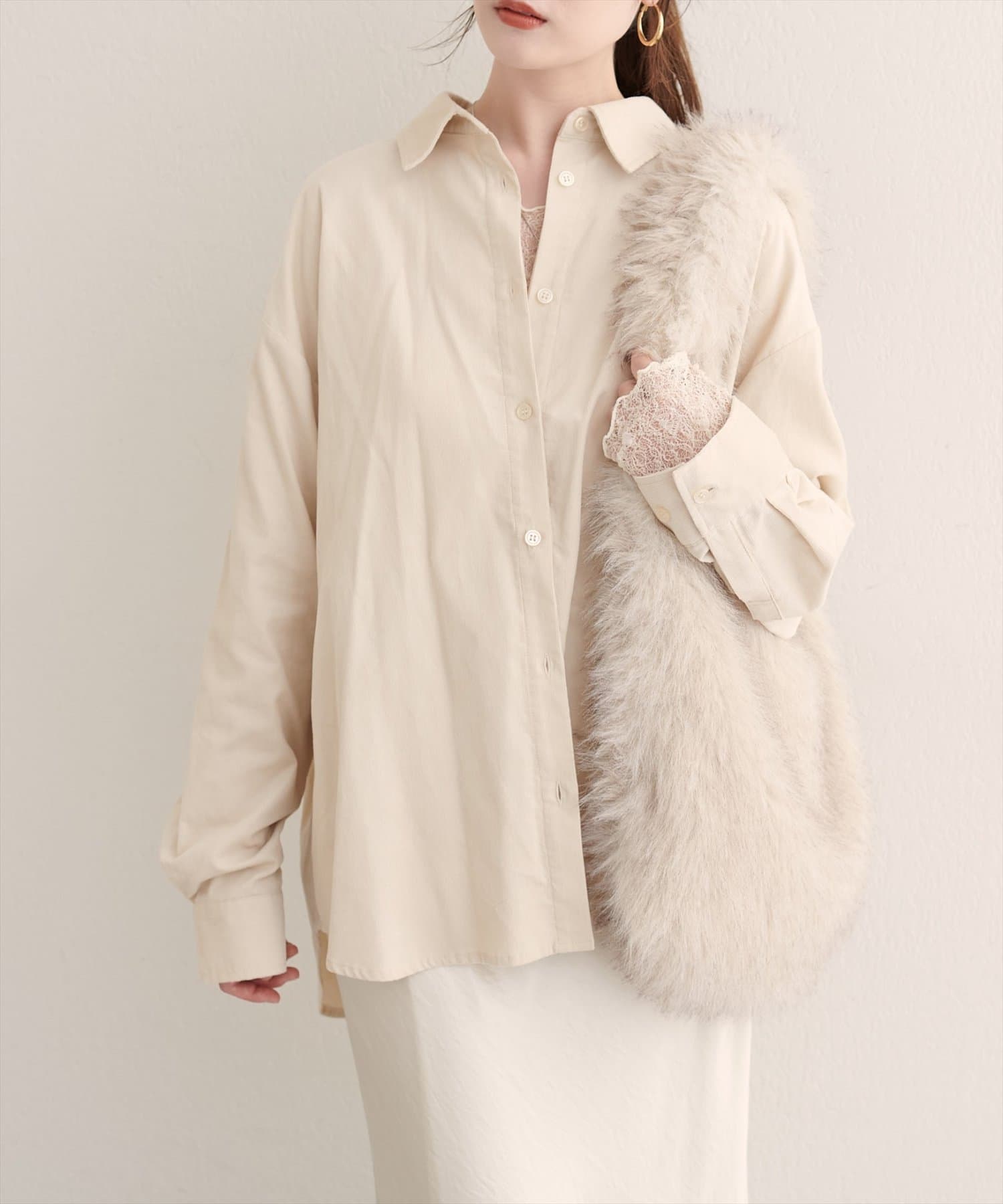 手触りの良いフェイクファーは、上品な光沢と柔らかな風合いが魅力。カジュアルスタイルにはもちろん、