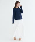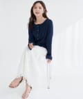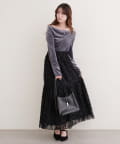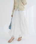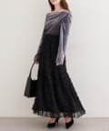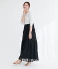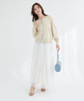 軽やかな素材感と相まって、重たく見えがちなロングスカートでも、軽快でエアリーな印象を与えます。