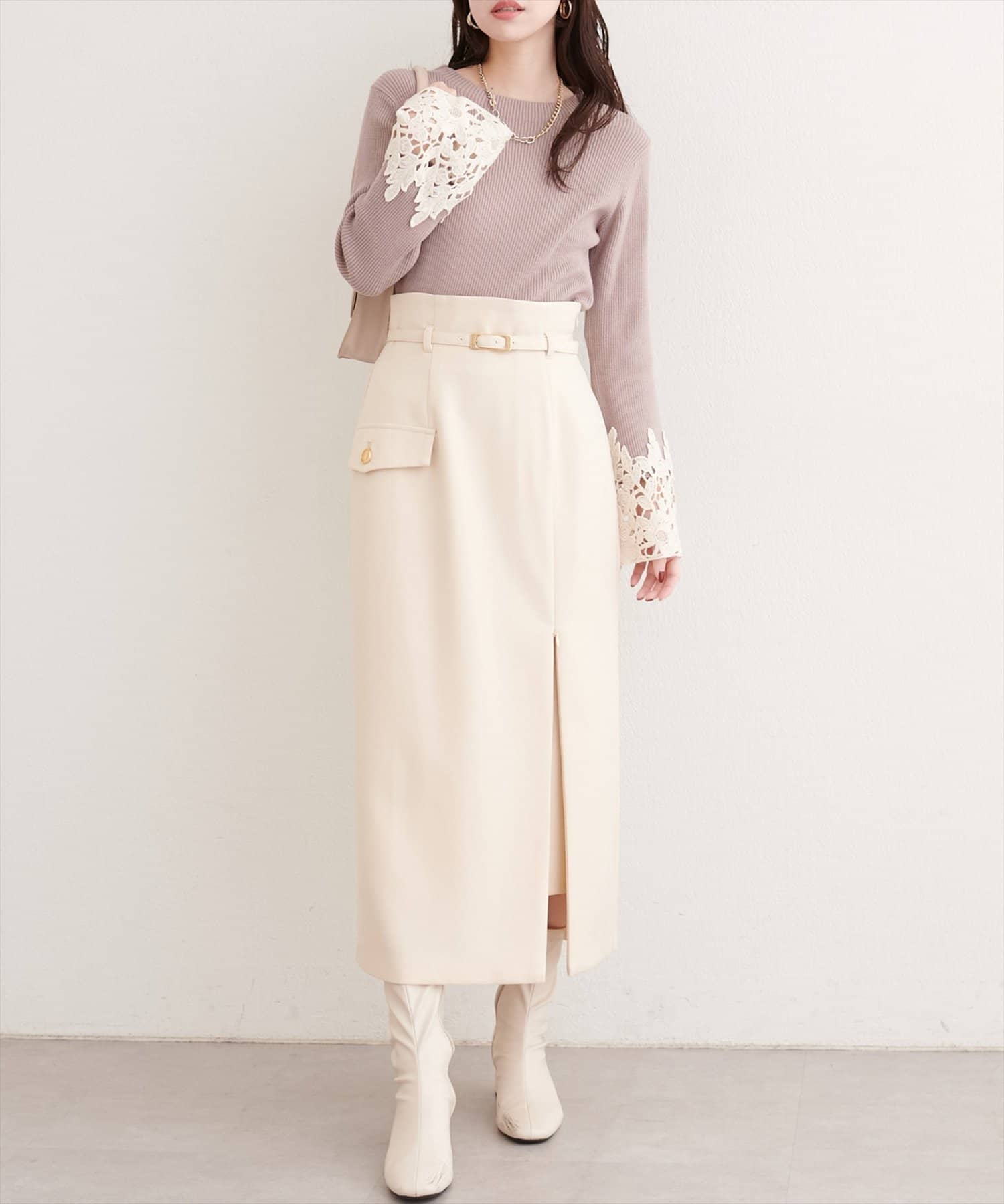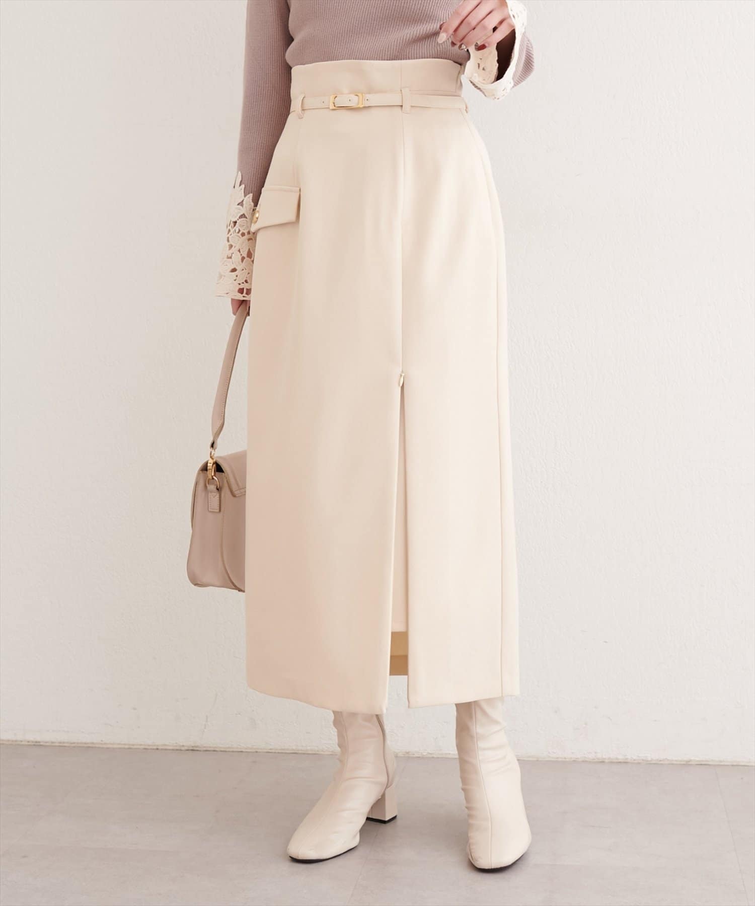• natural couture(ナチュラルクチュール) ベルト付きナロースカート