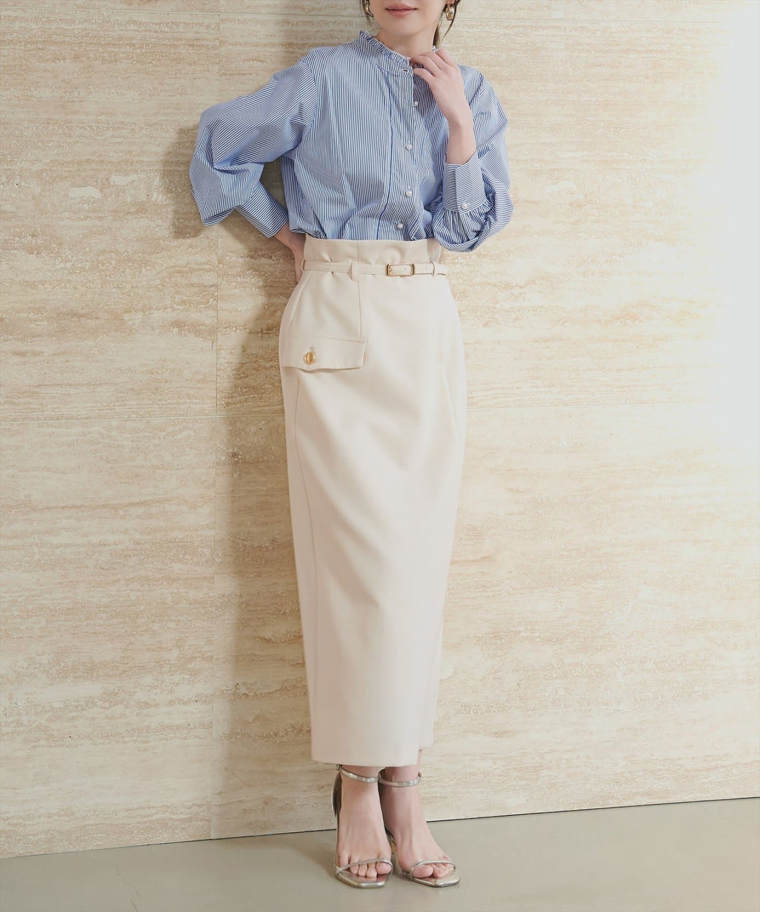 洗練されたナローシルエットが美しいスカートアイテム。