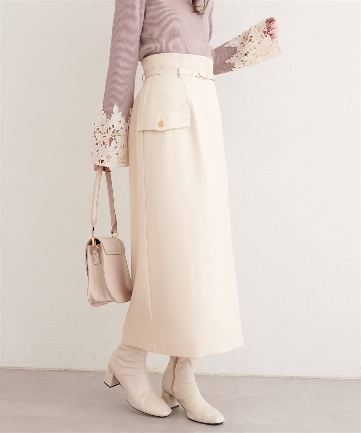 しかしこのスカートはベルトがあってメリハリがつけられるので、長くても重く見えない気がします。