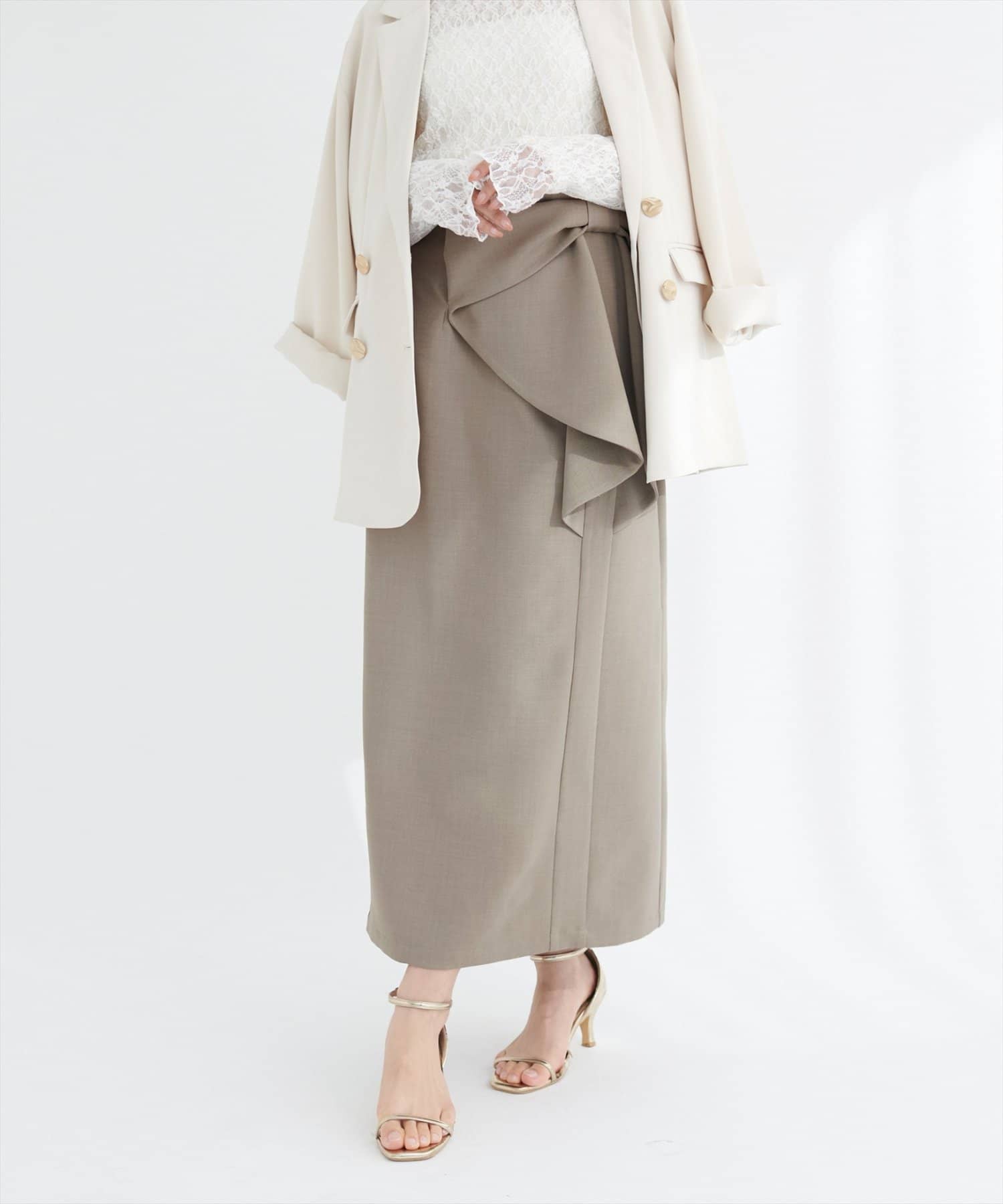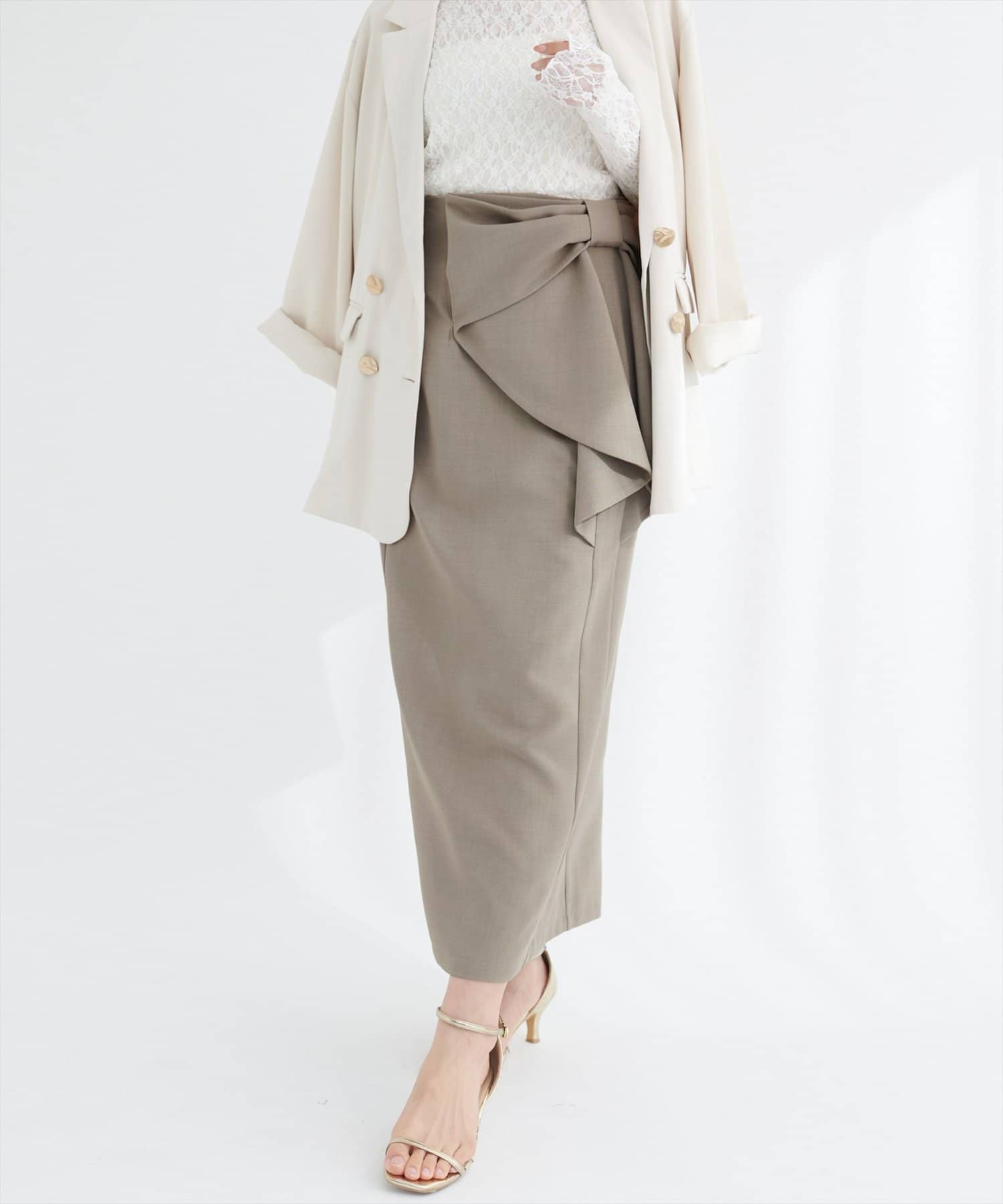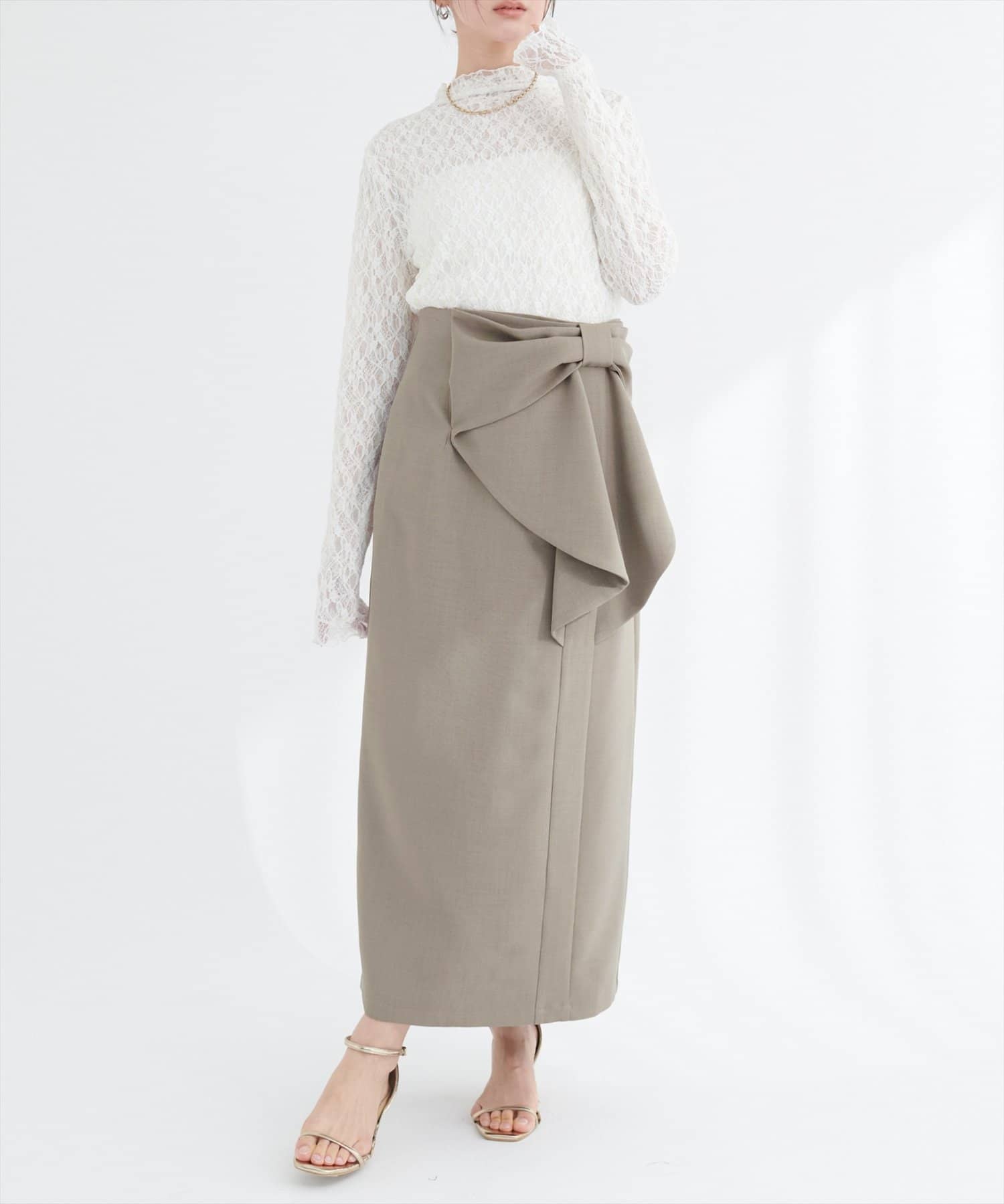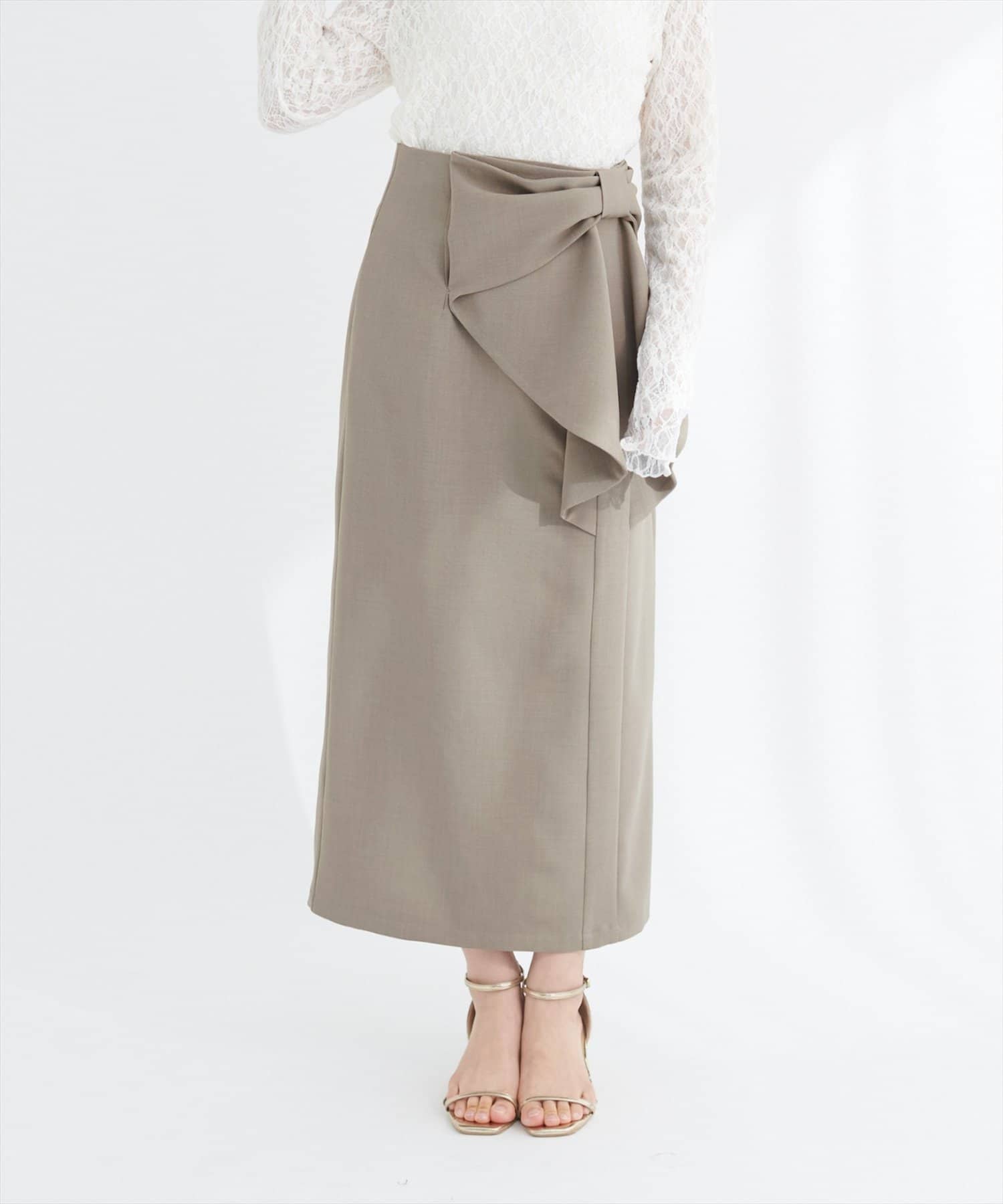 ウエスト部分にあしらわれたリボンデザインがポイントのスカート。