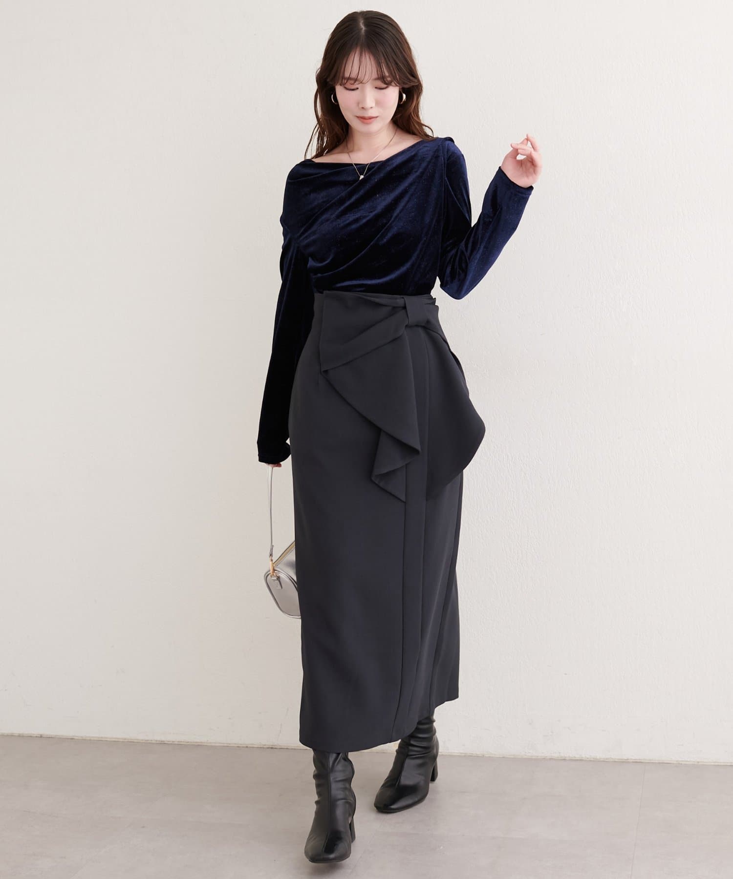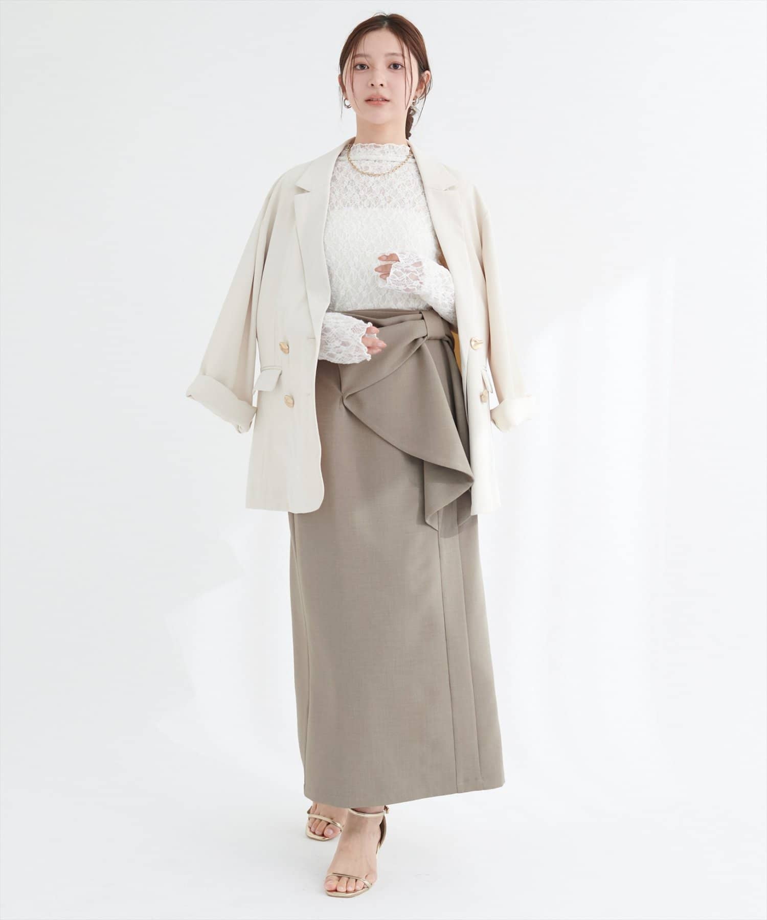 存在感あるリボンで目線が上に集まり、スタイルアップ効果も◎