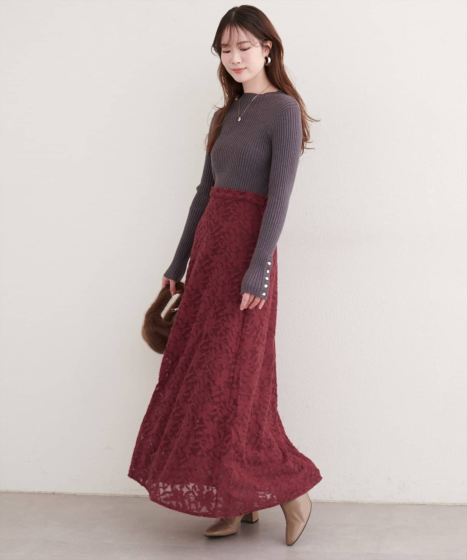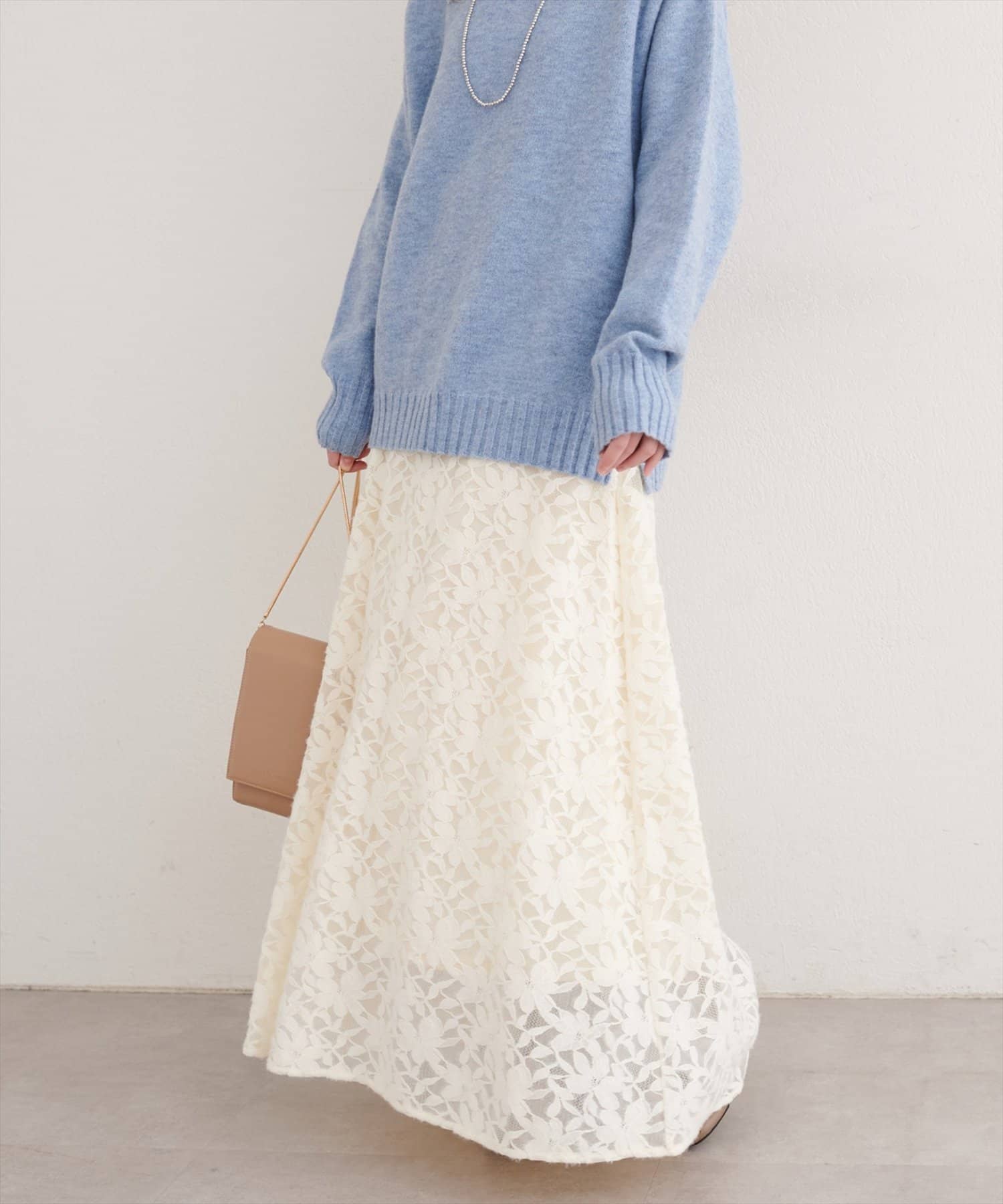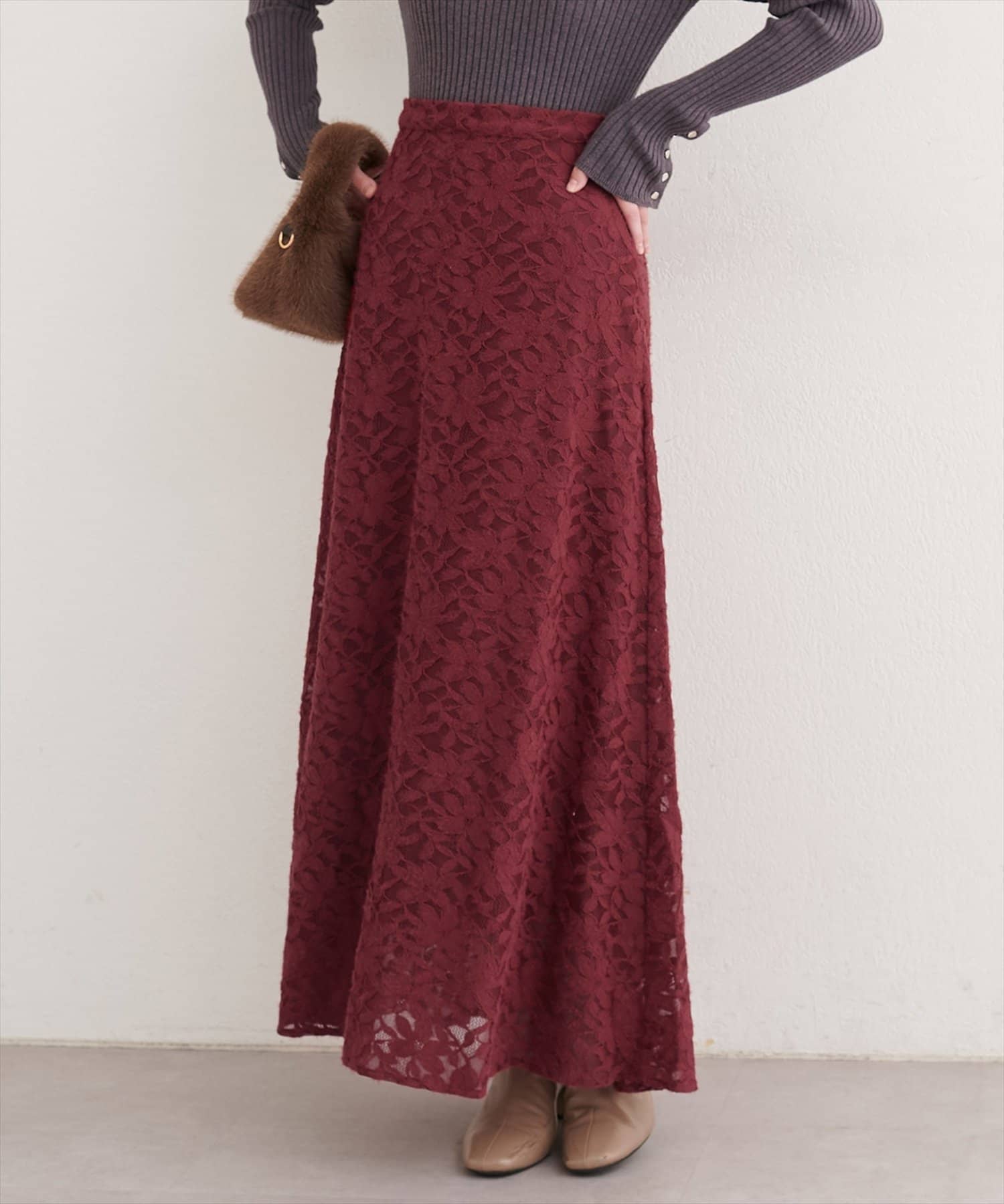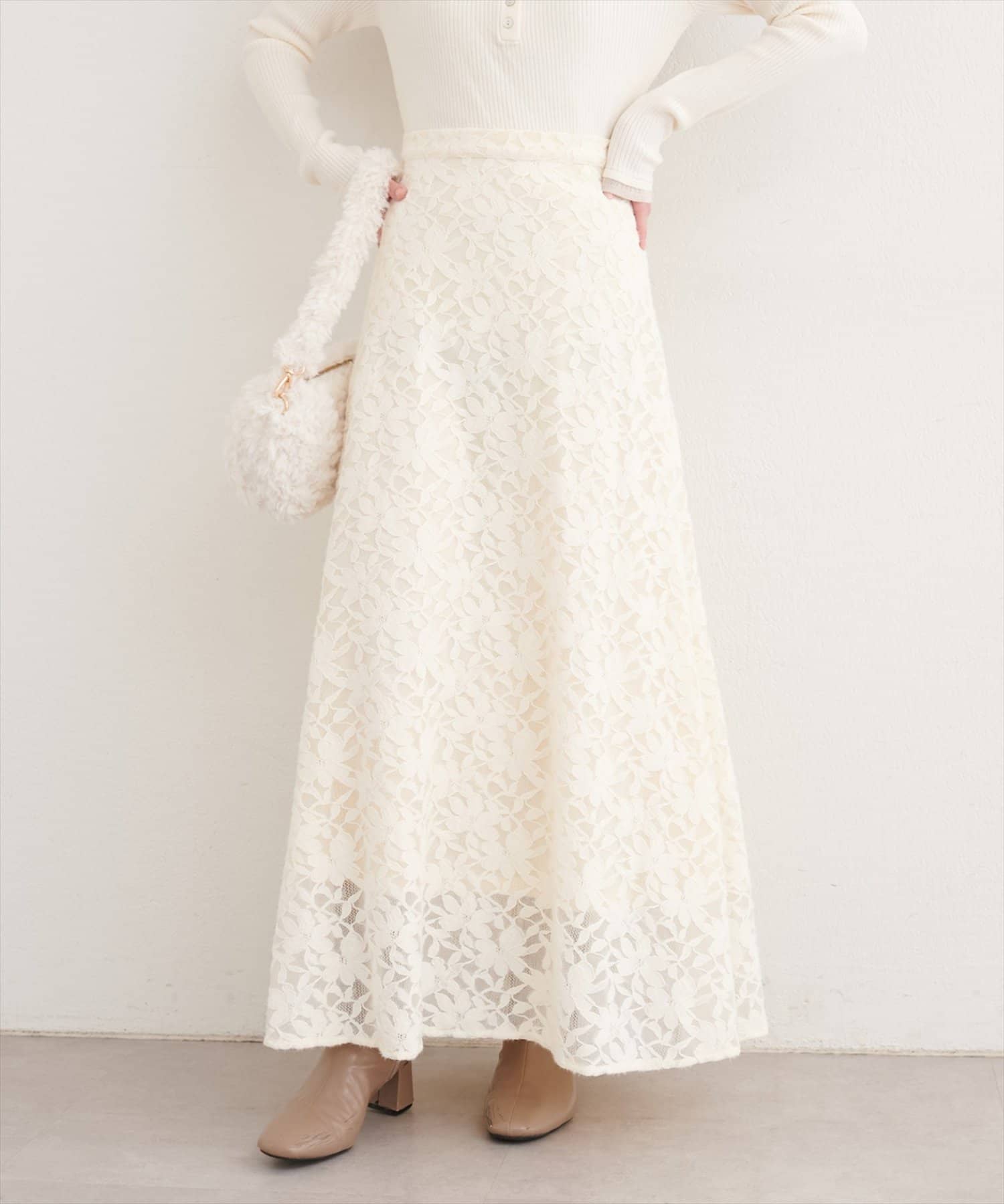 繊細なレース使いと、起毛加工が魅力的なスカート。