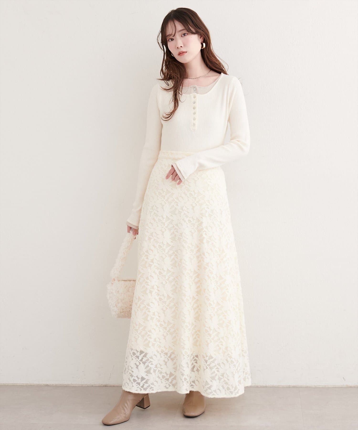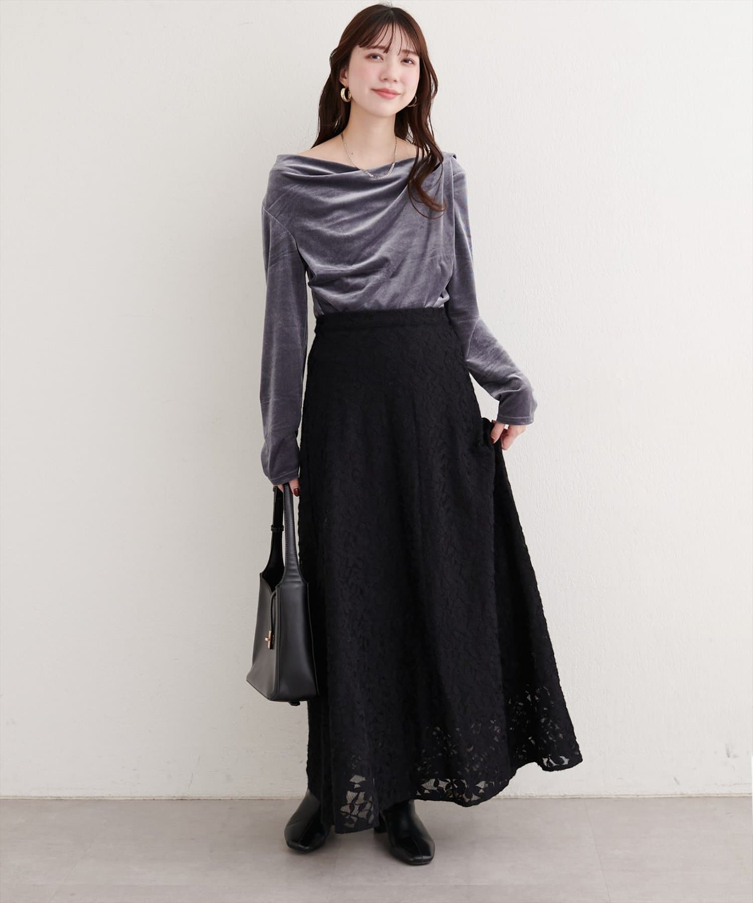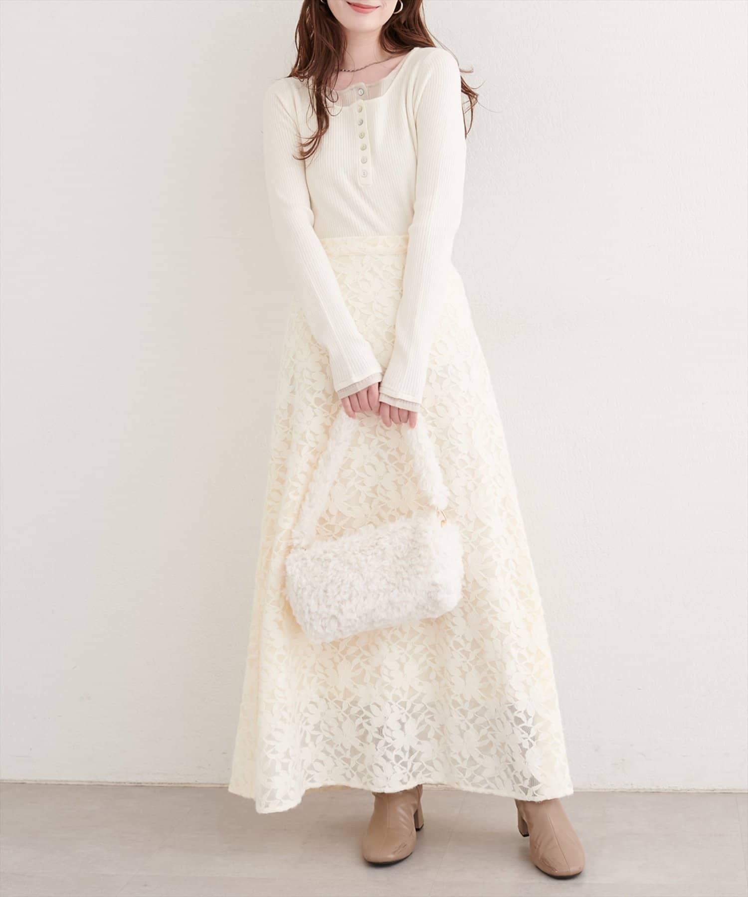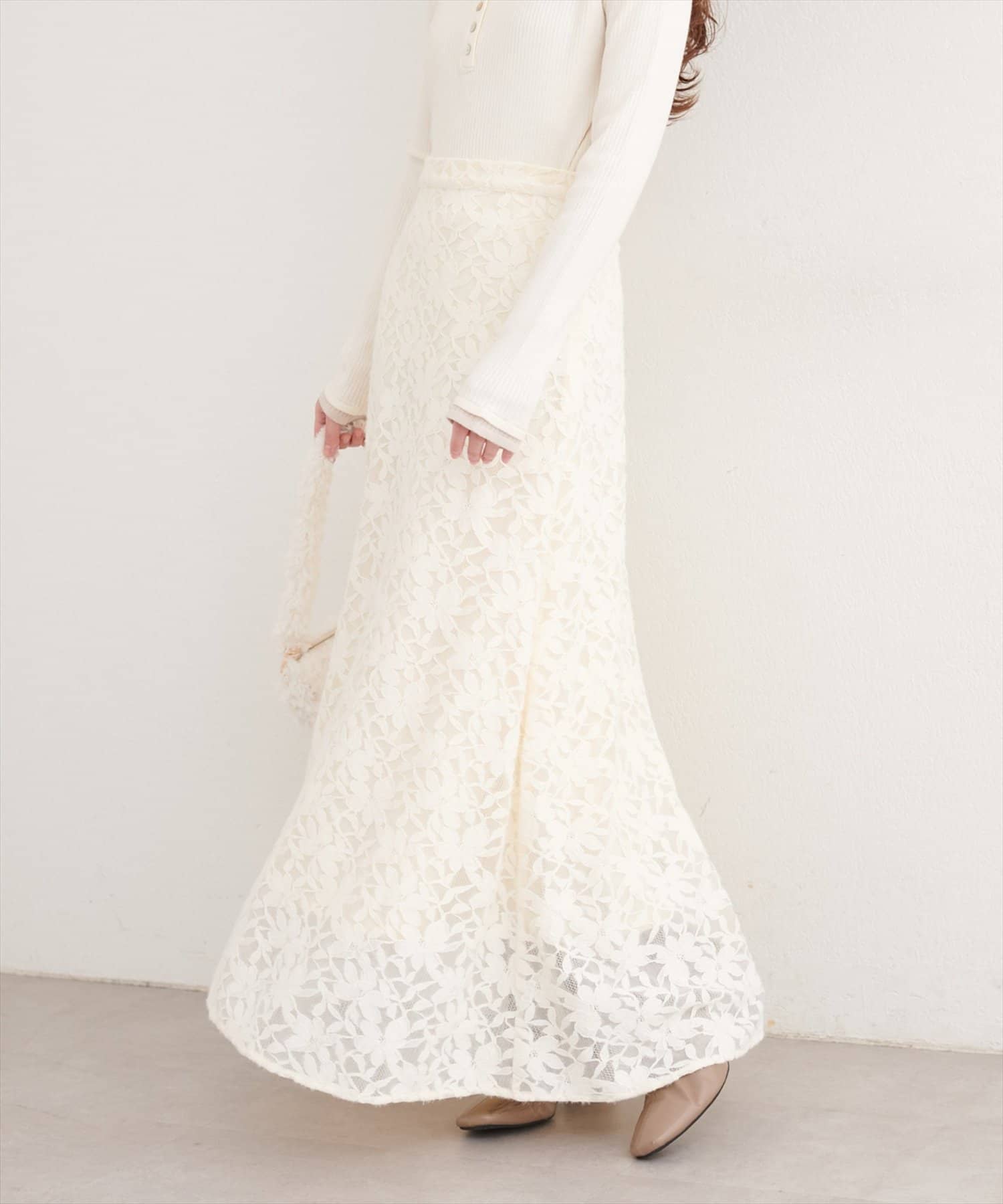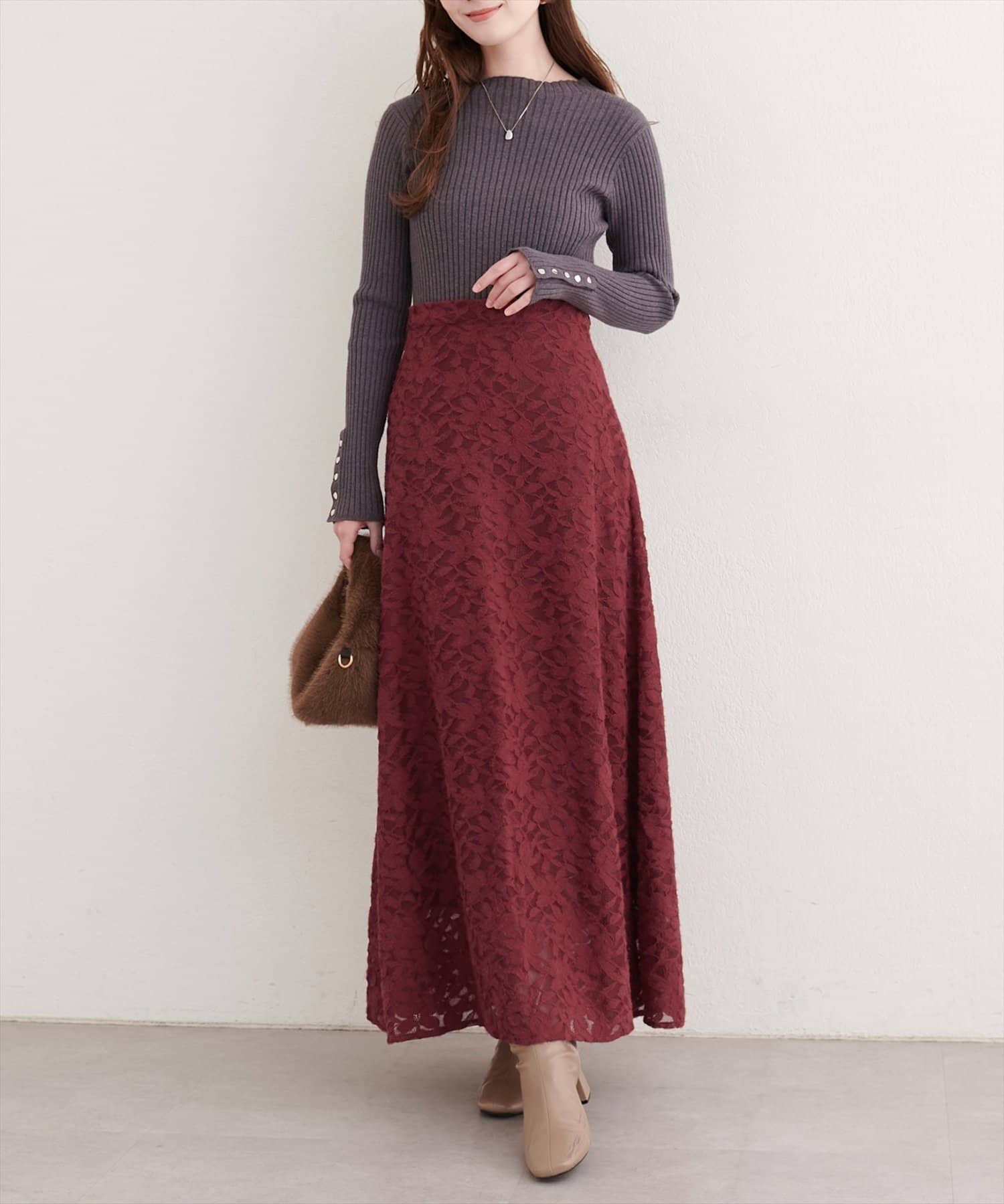 繊細なレース使いと、起毛加工が魅力的なスカート。