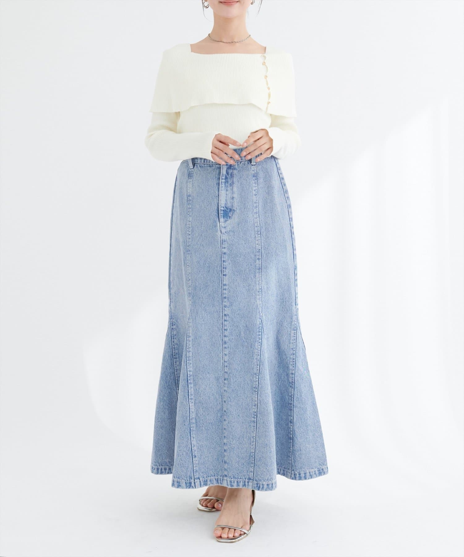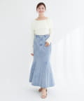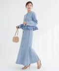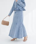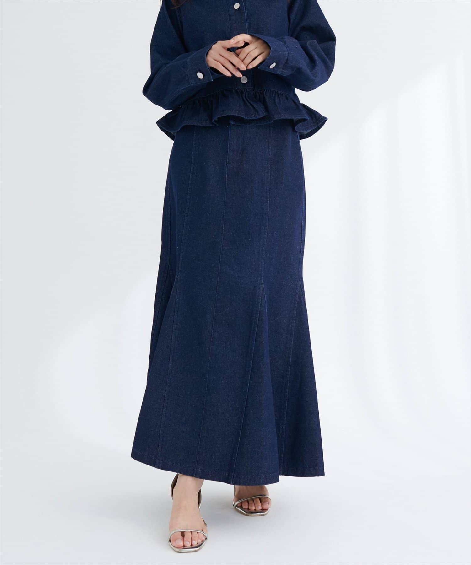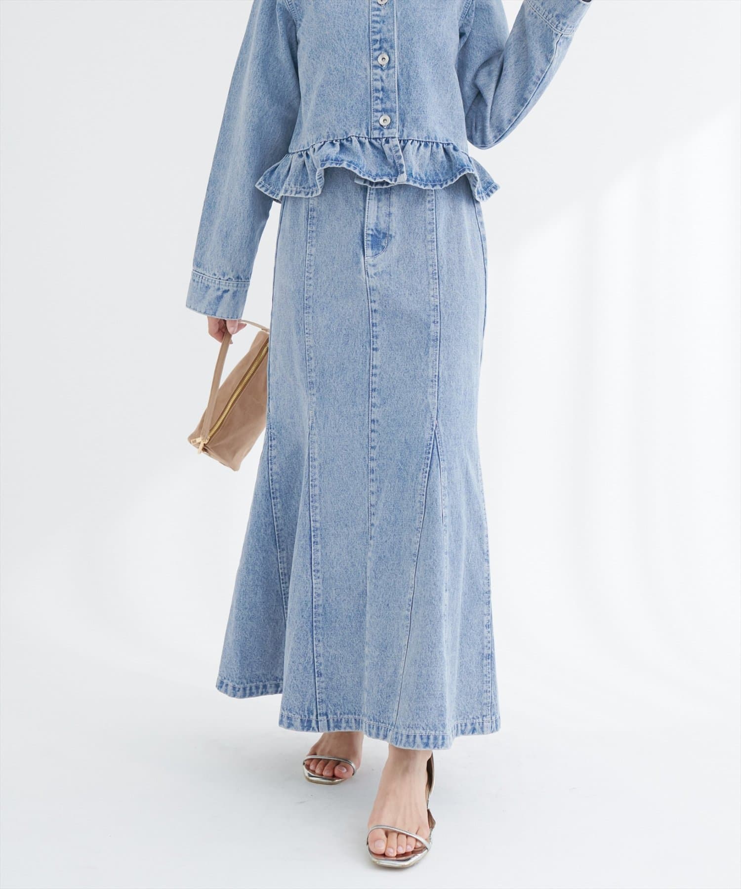 0361070170 ノーカラーペプラムデニムジャケットと合わせればセットアップ風コーデに♪