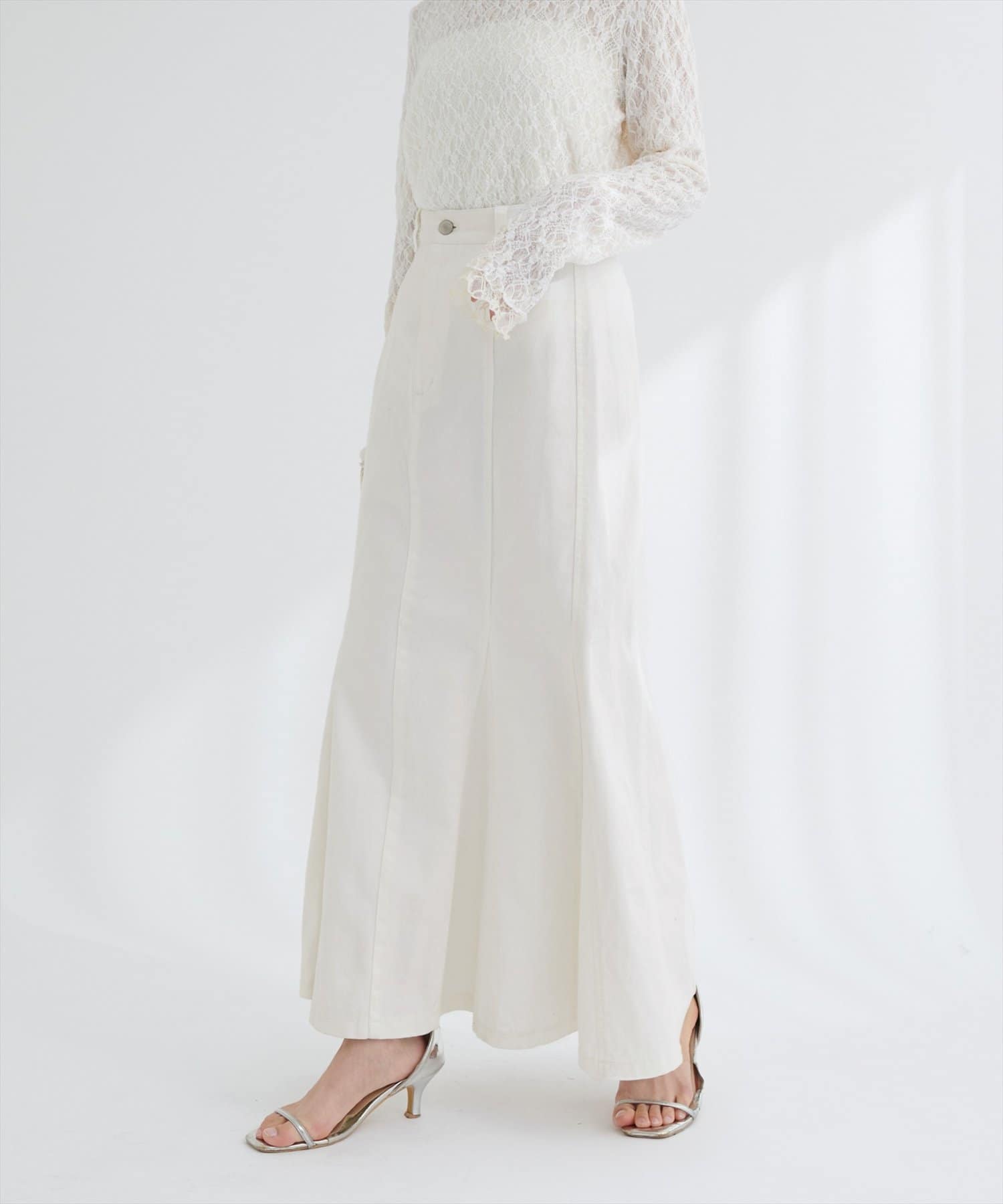膝下から広がるフレアデザインが、歩くたびに優雅な揺れ感を生み出し、華やかな雰囲気がプラス。