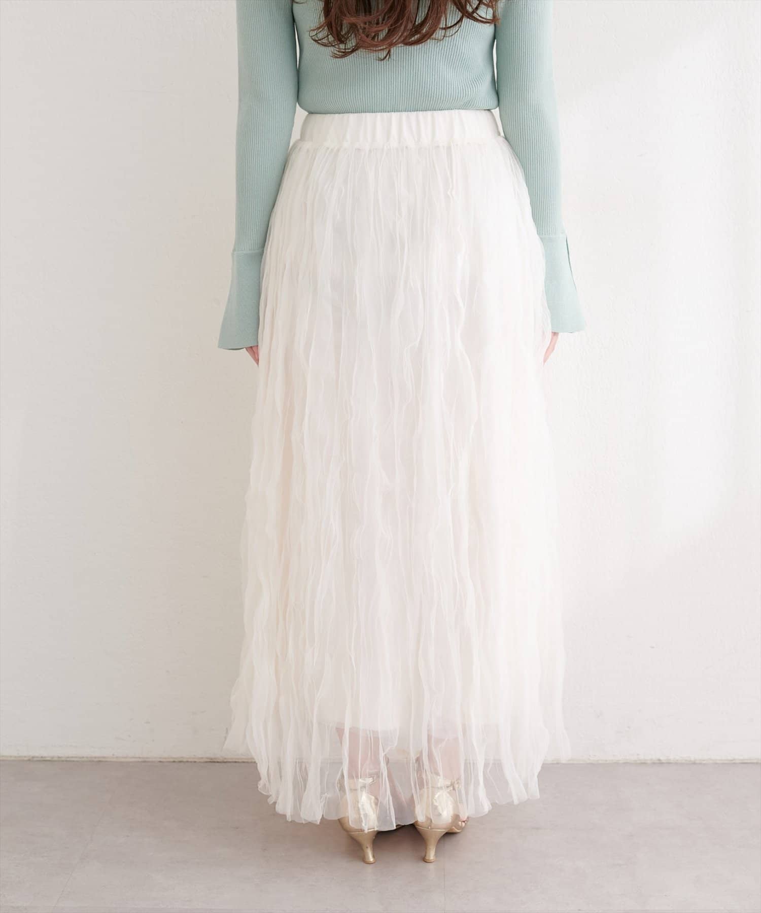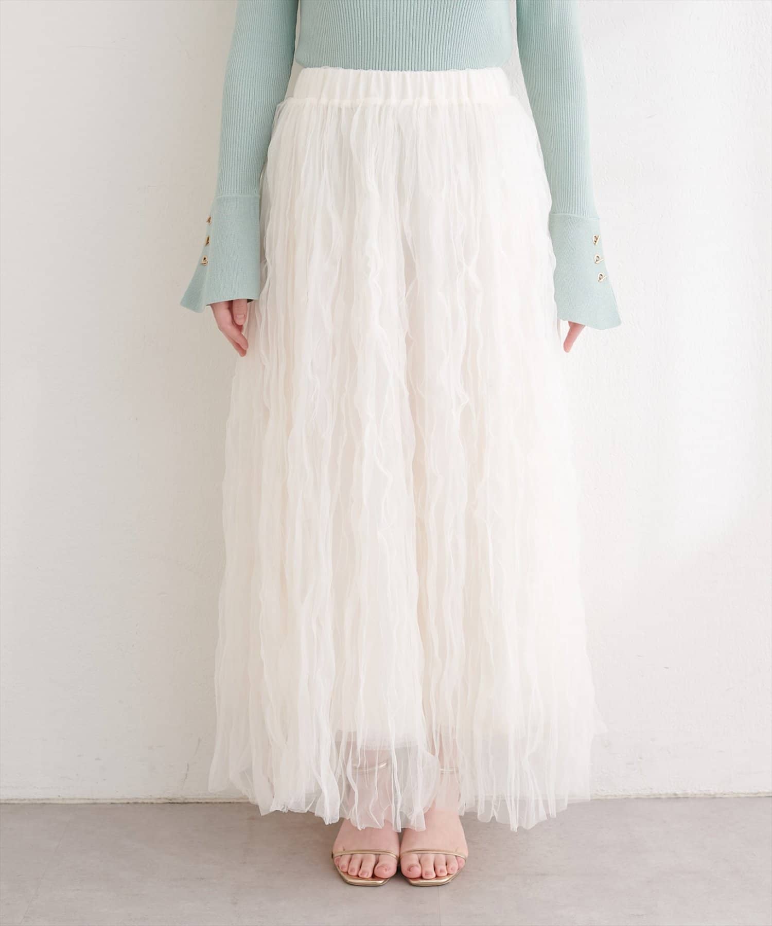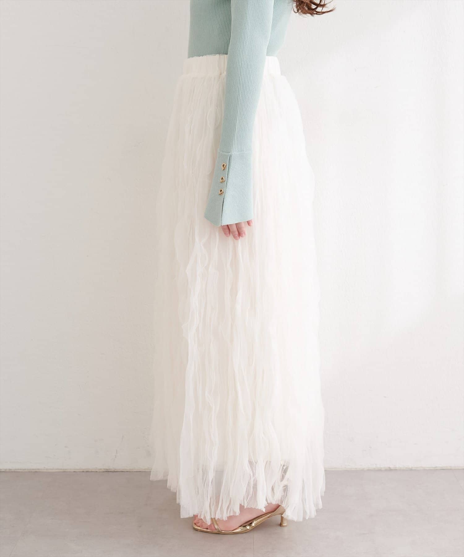 単調になりがちなロングスカートに豊かな表情を与えます。