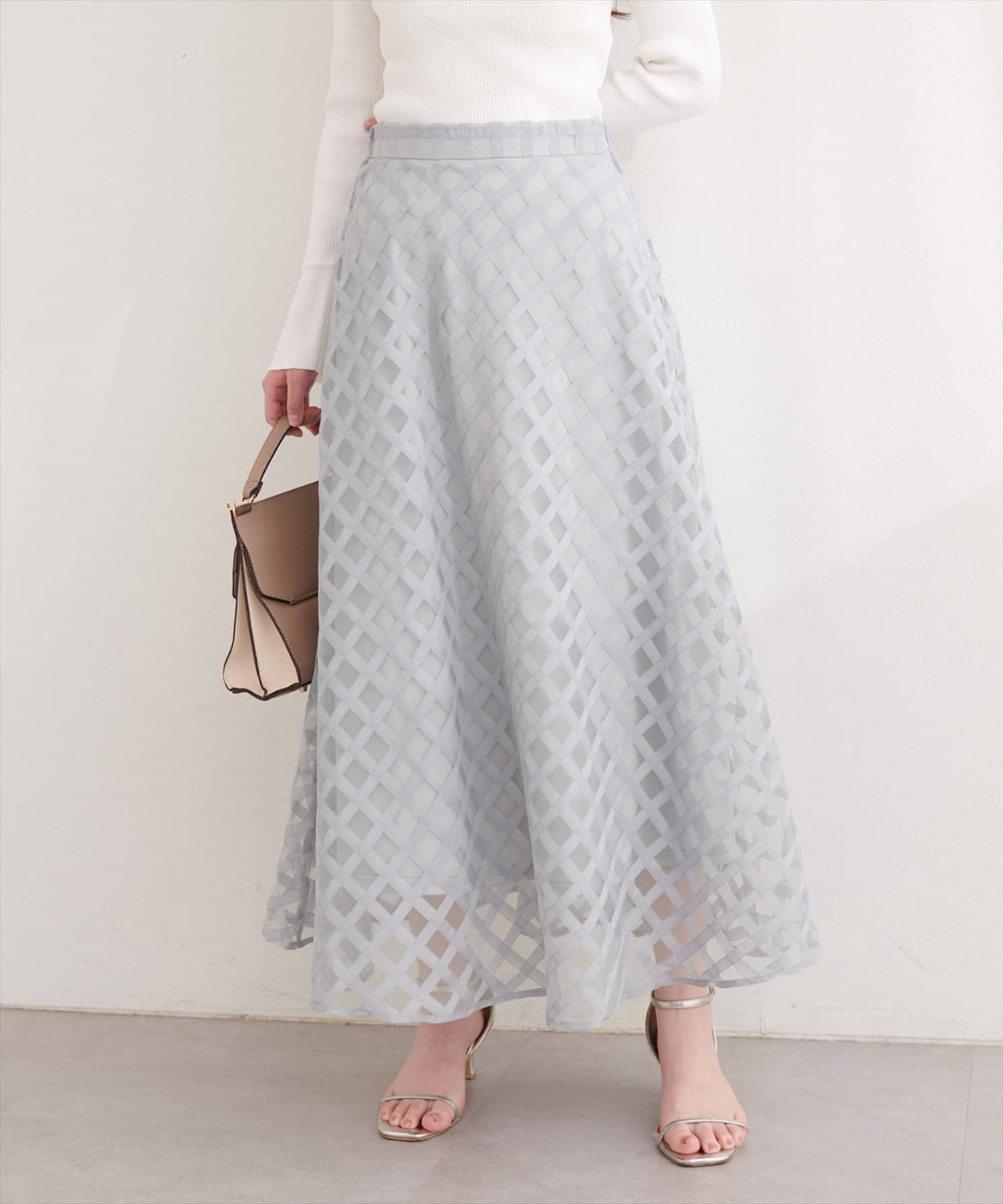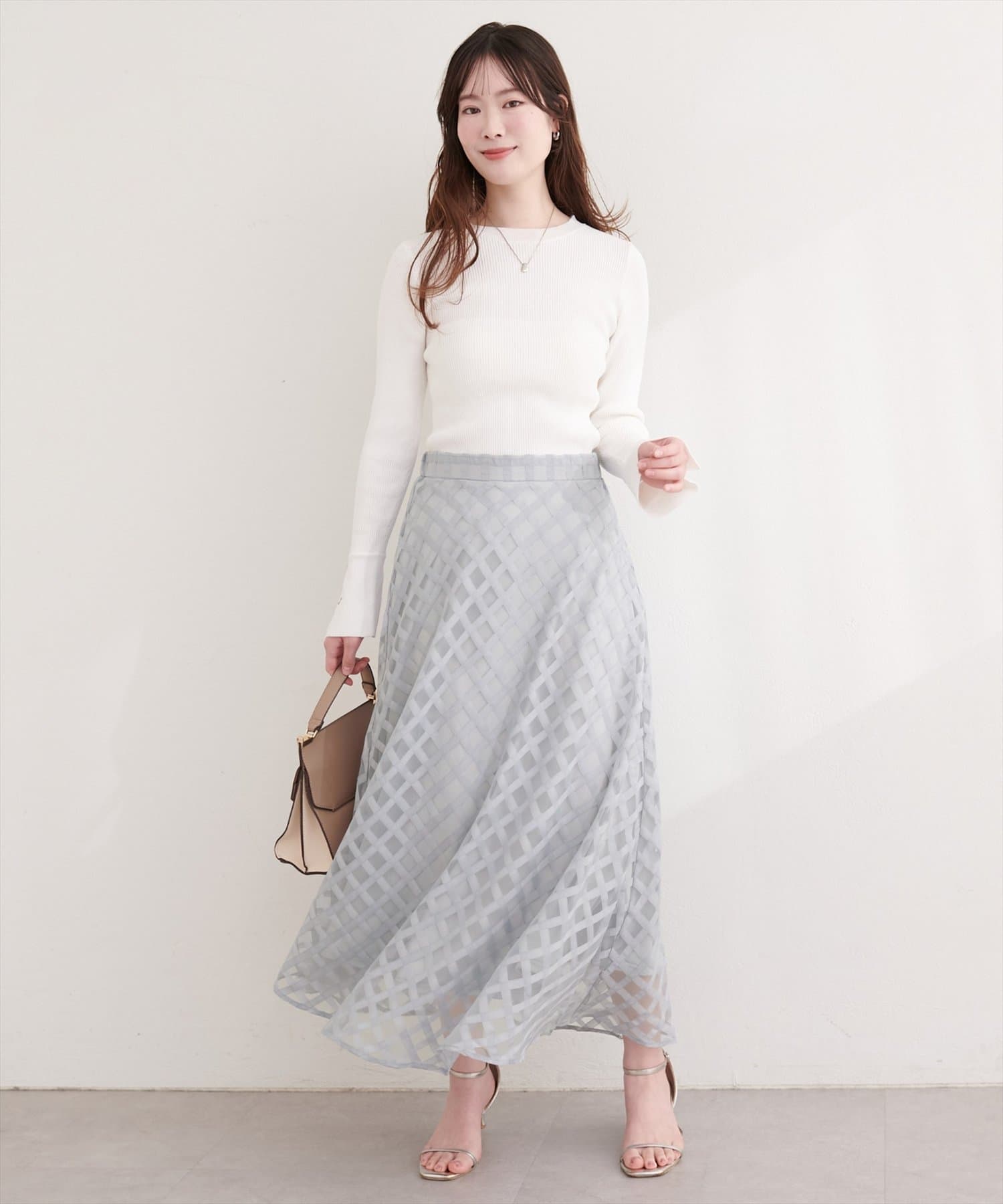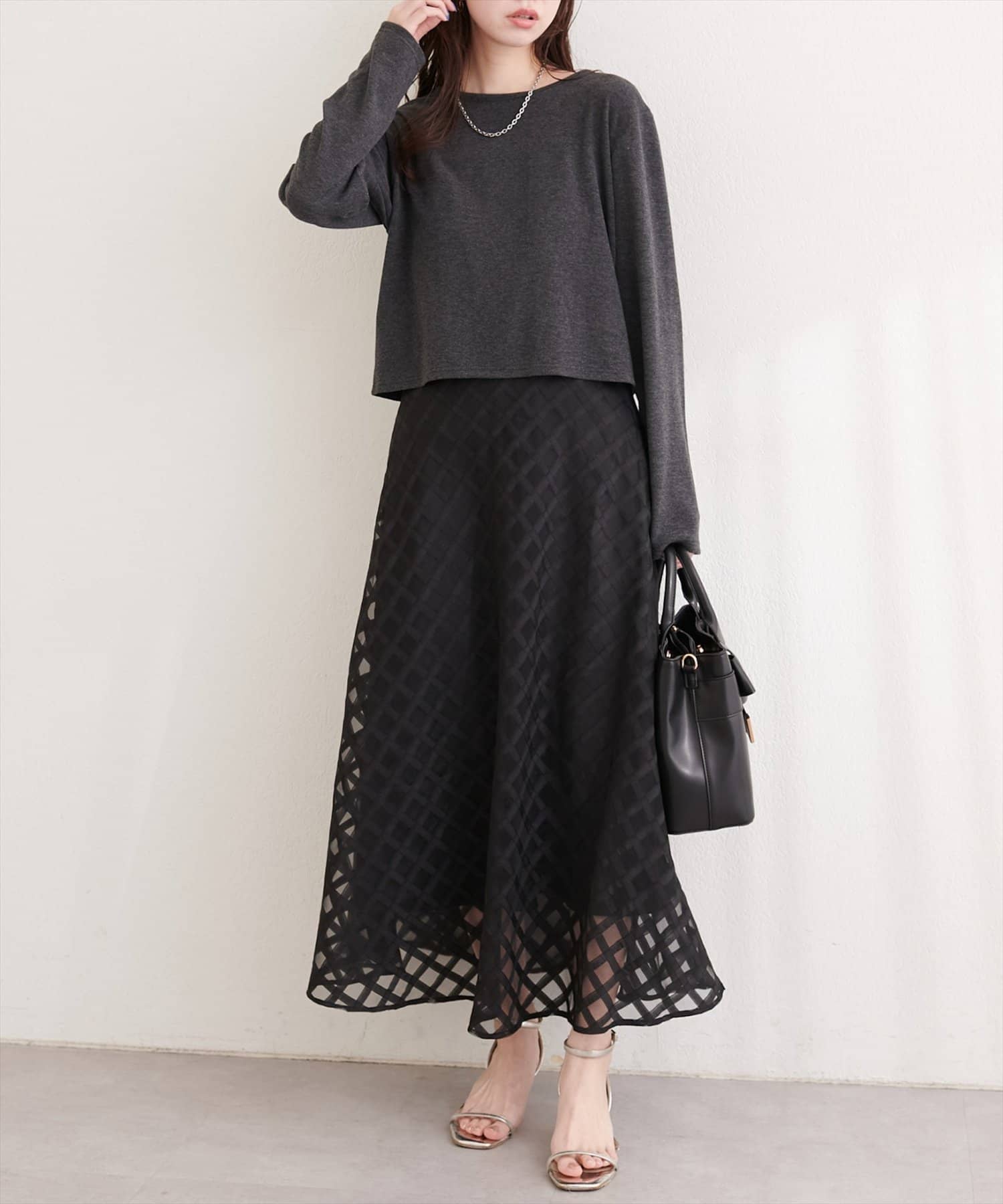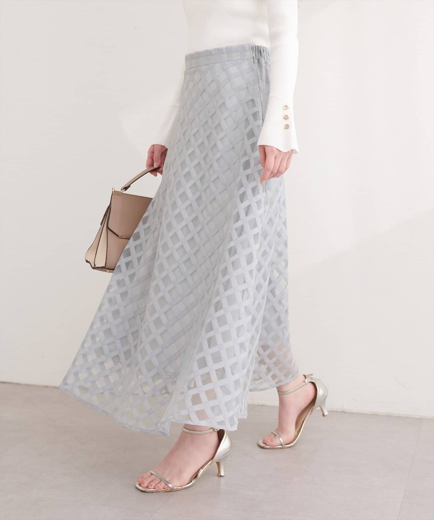 軽やかな素材感と相まって、重くなりがちなロングスカートに抜け感をプラス。