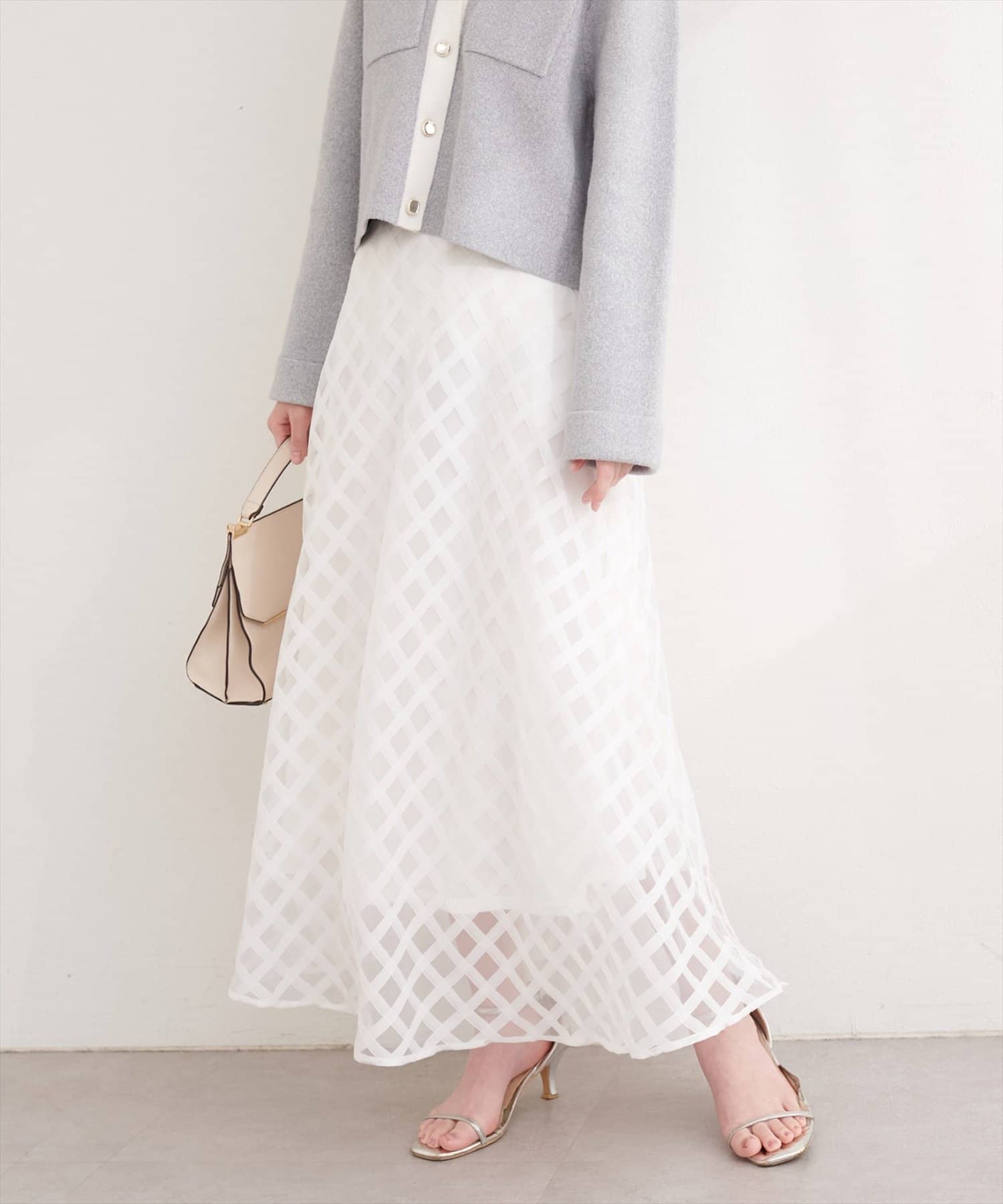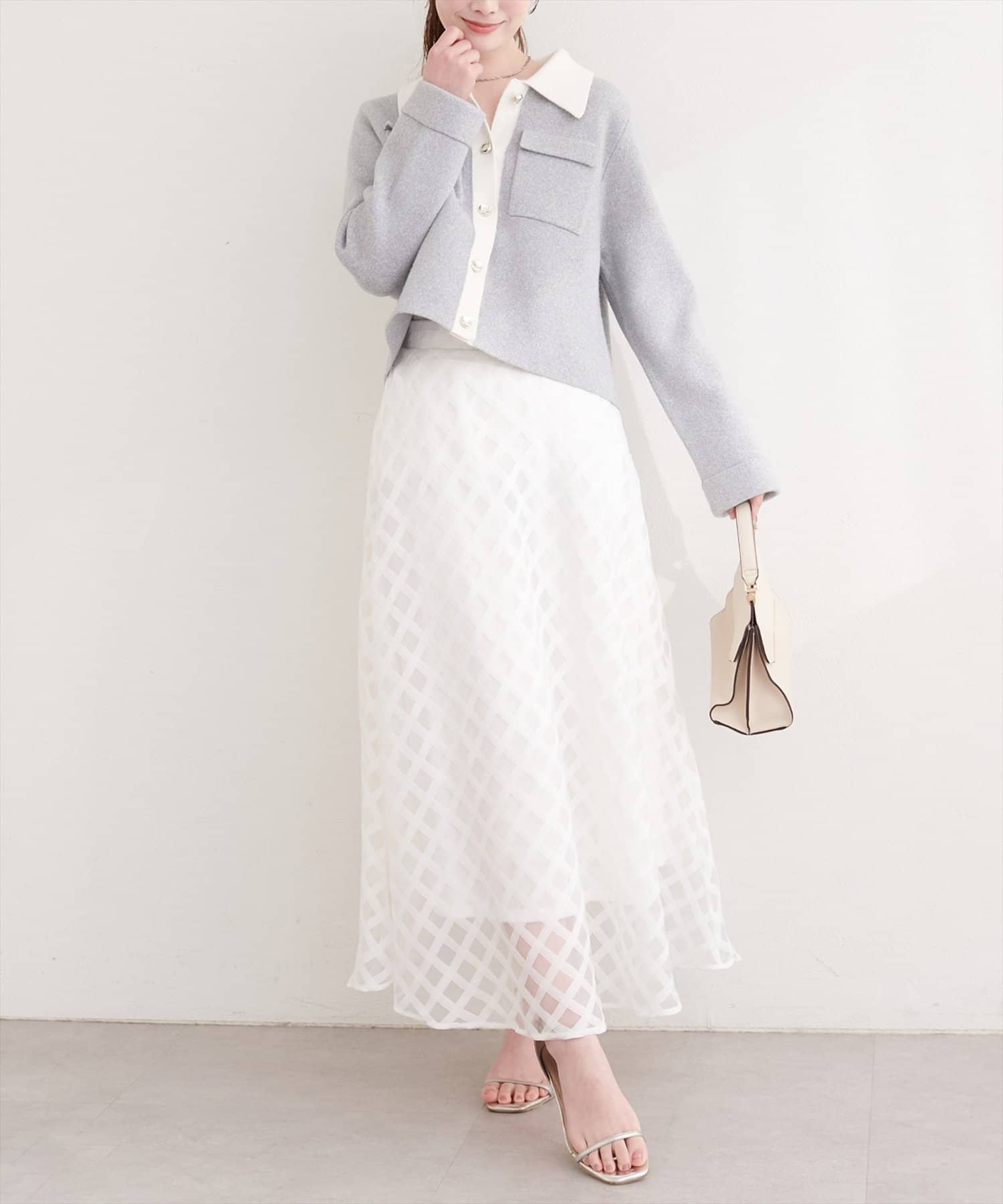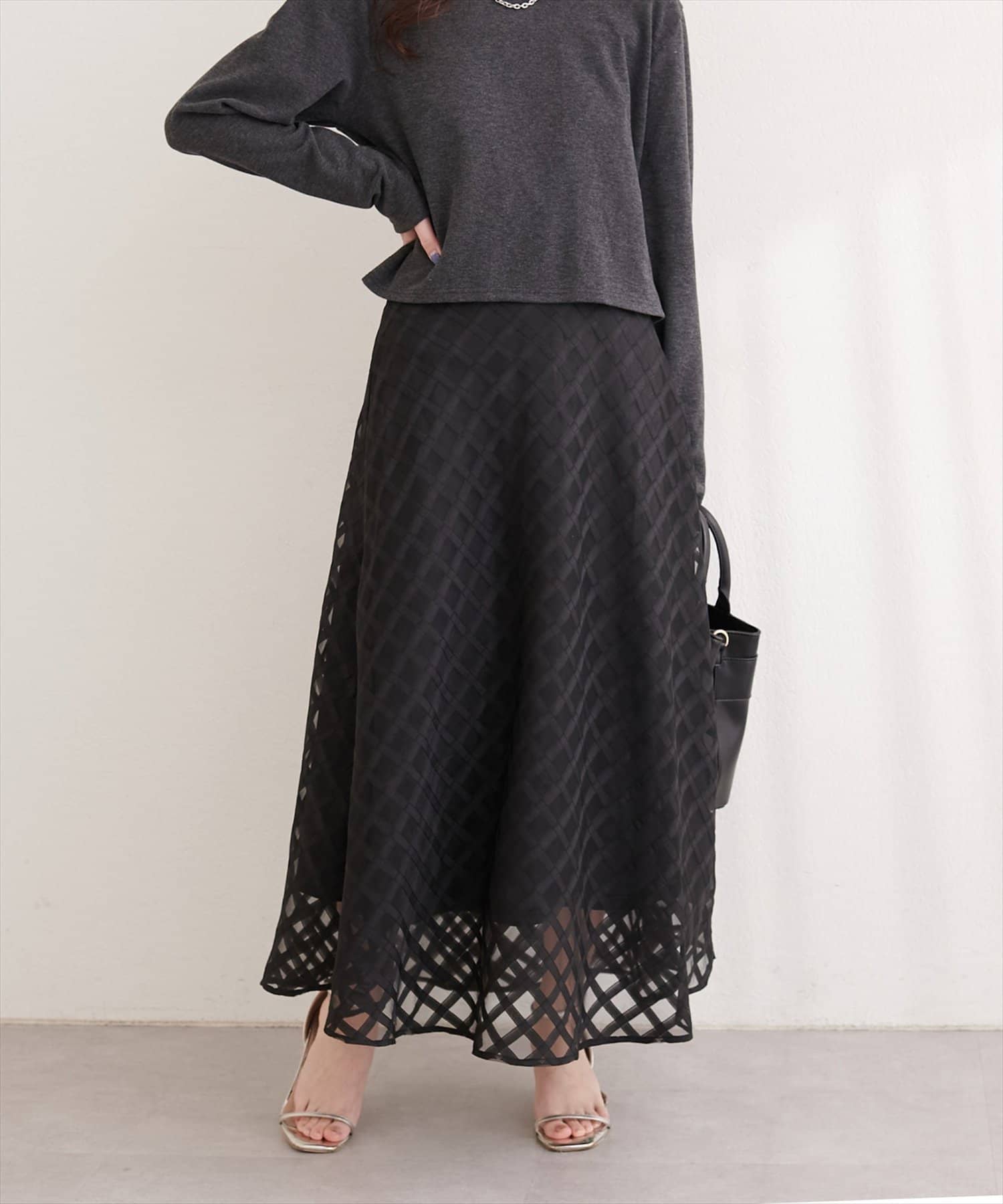 軽やかな素材感と相まって、重くなりがちなロングスカートに抜け感をプラス。