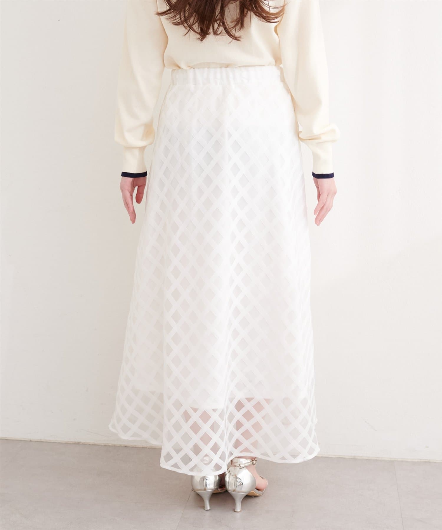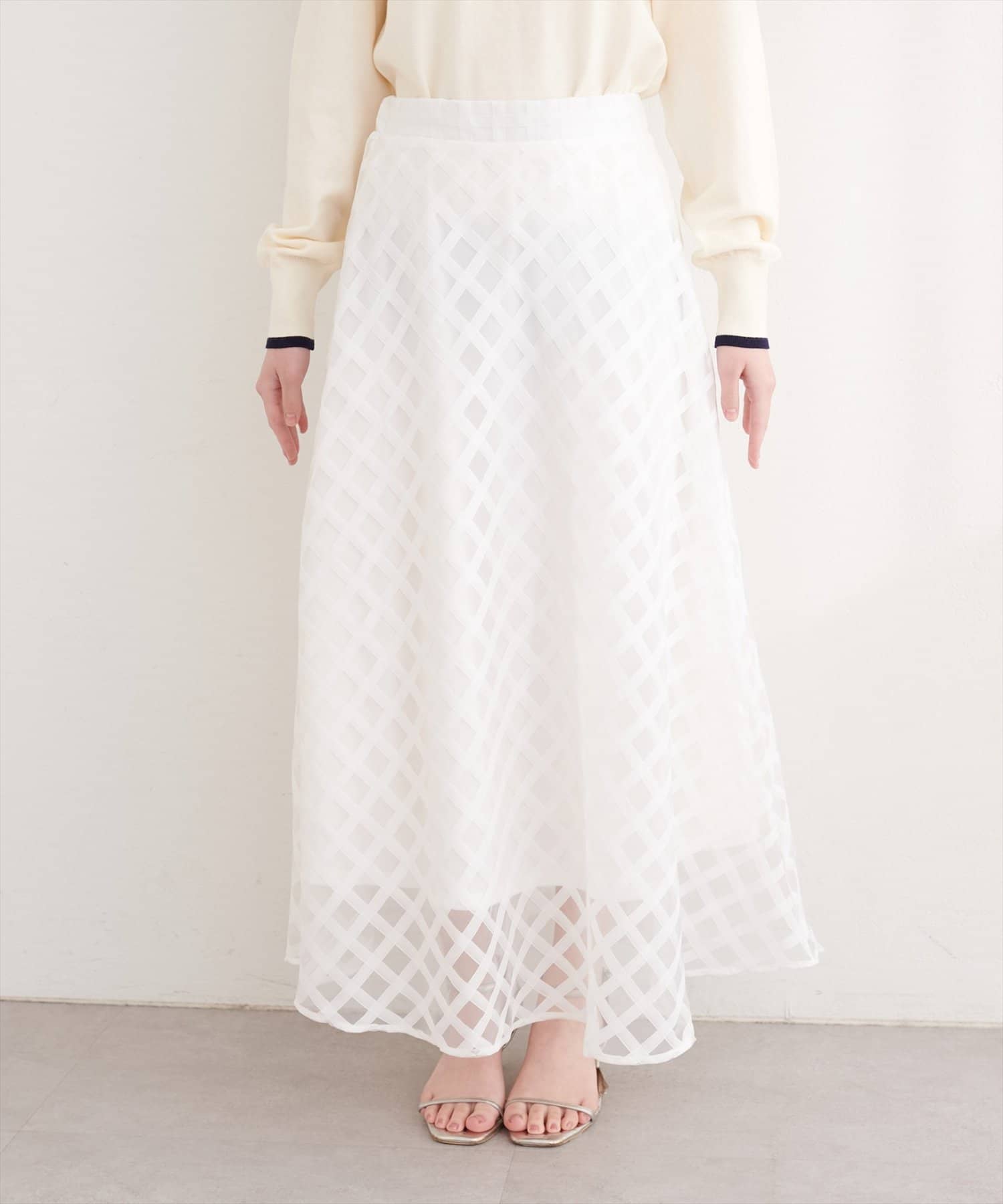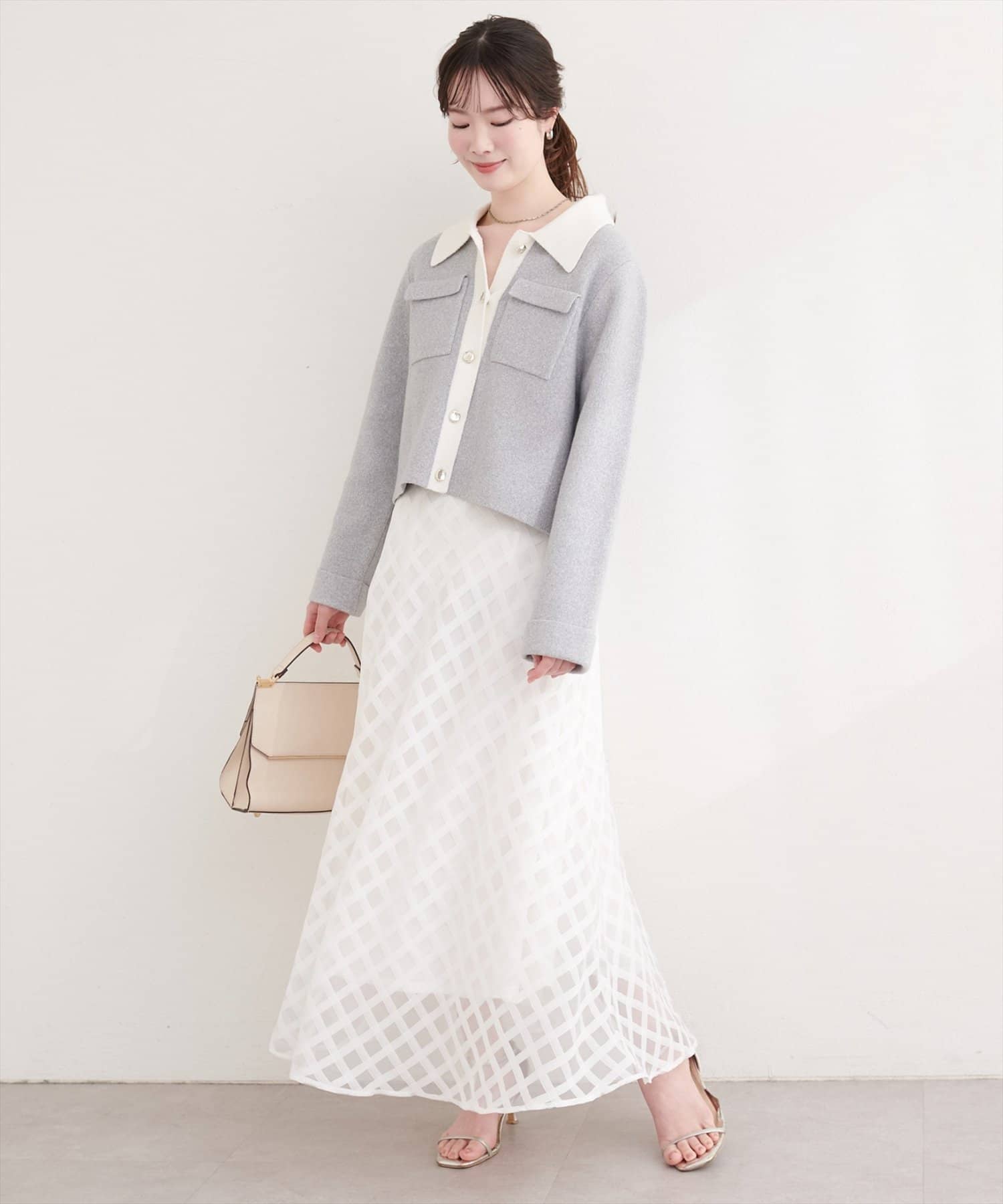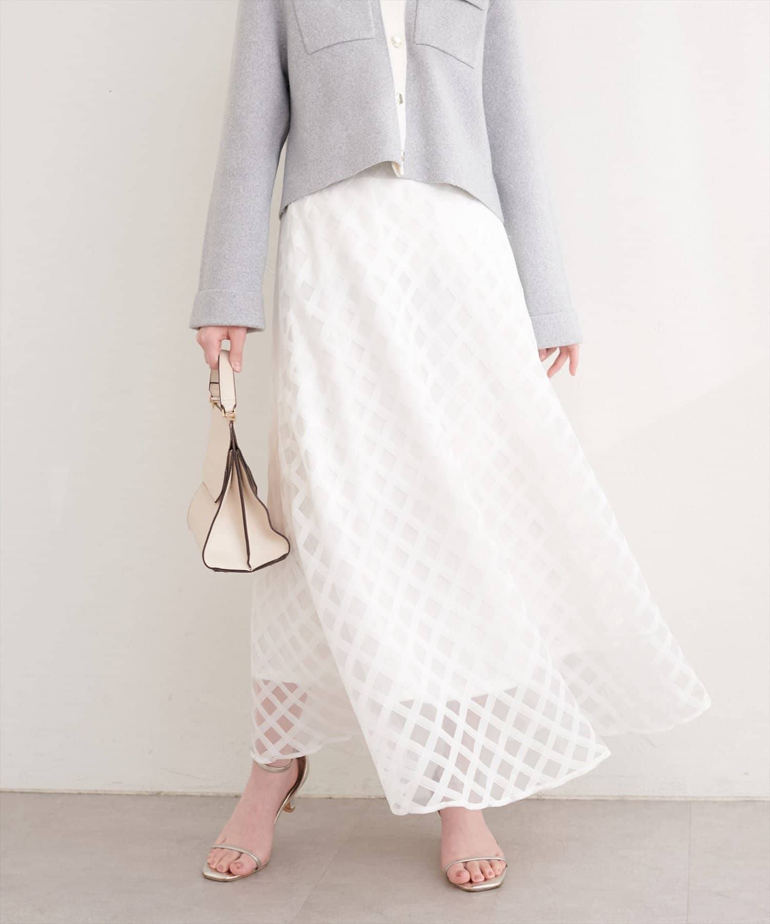 軽やかな素材感と相まって、重くなりがちなロングスカートに抜け感をプラス。