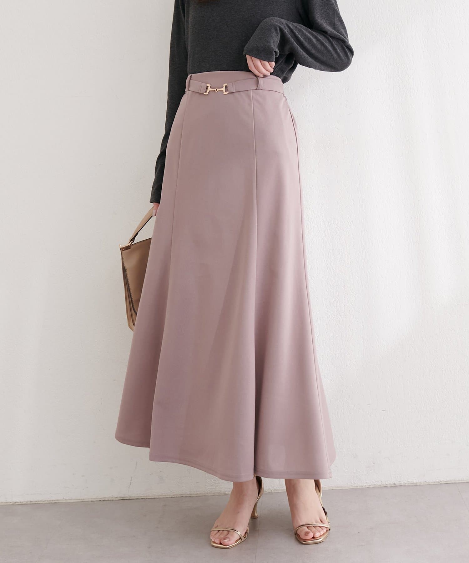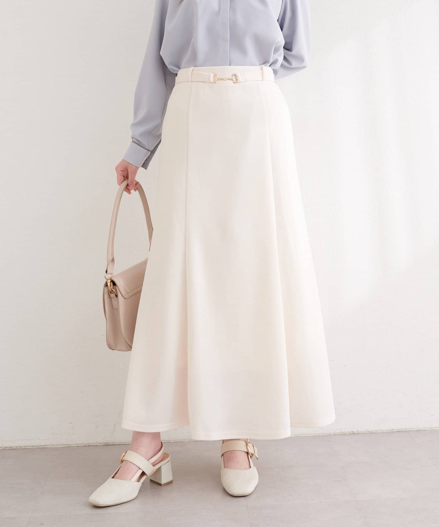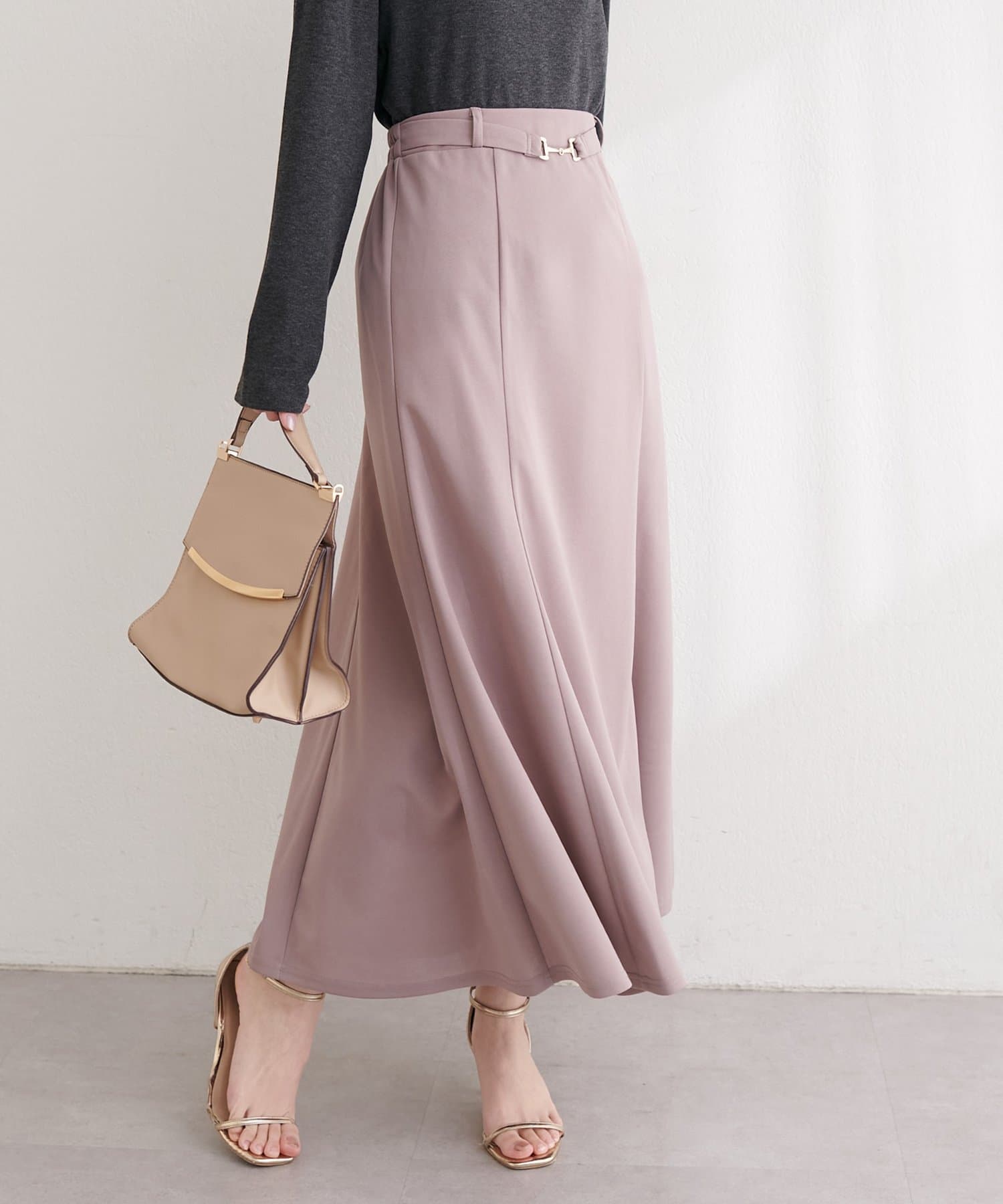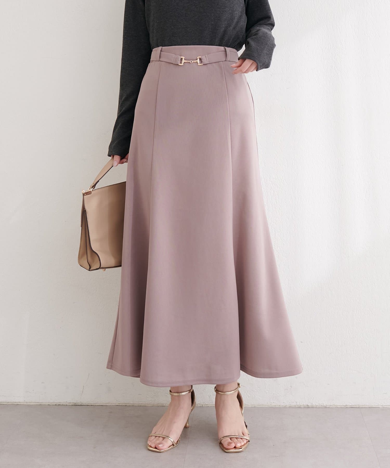 すっきりとしたIラインシルエットと、裾にかけて緩やかに広がるフレアが、女性らしい上品な印象を与えてくれます。