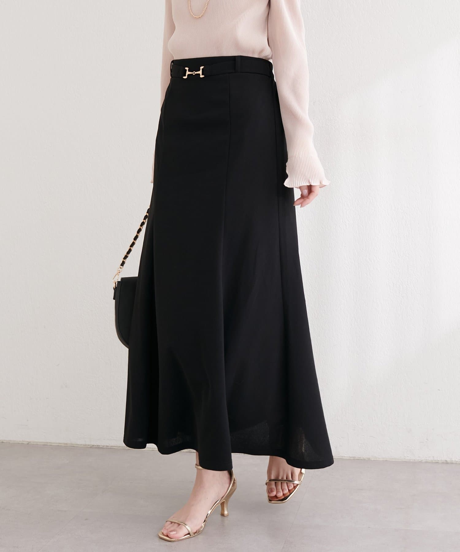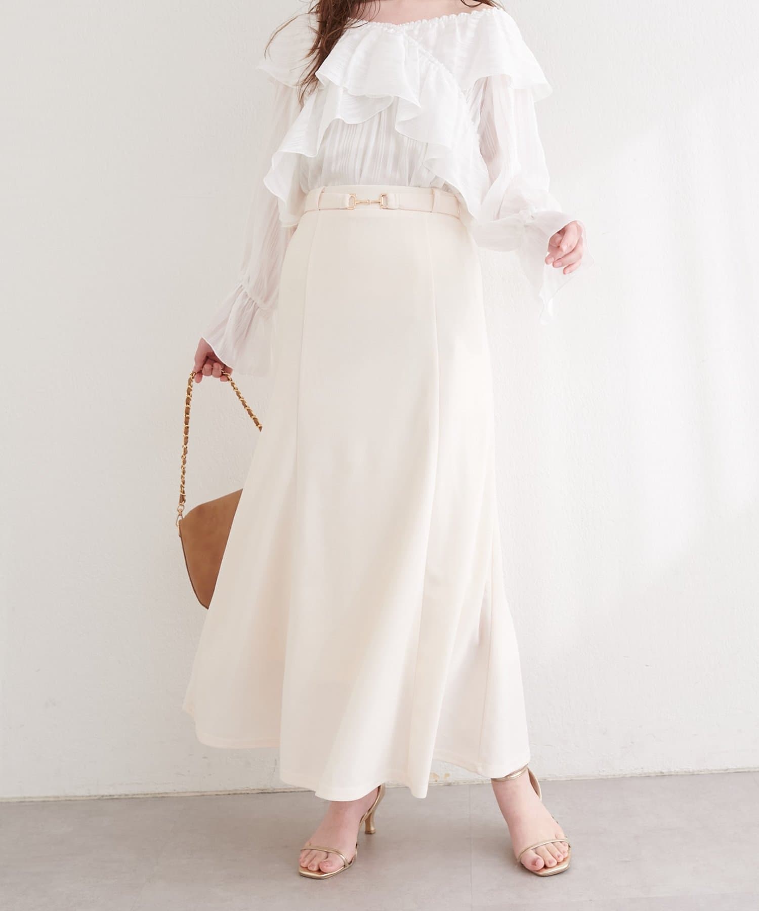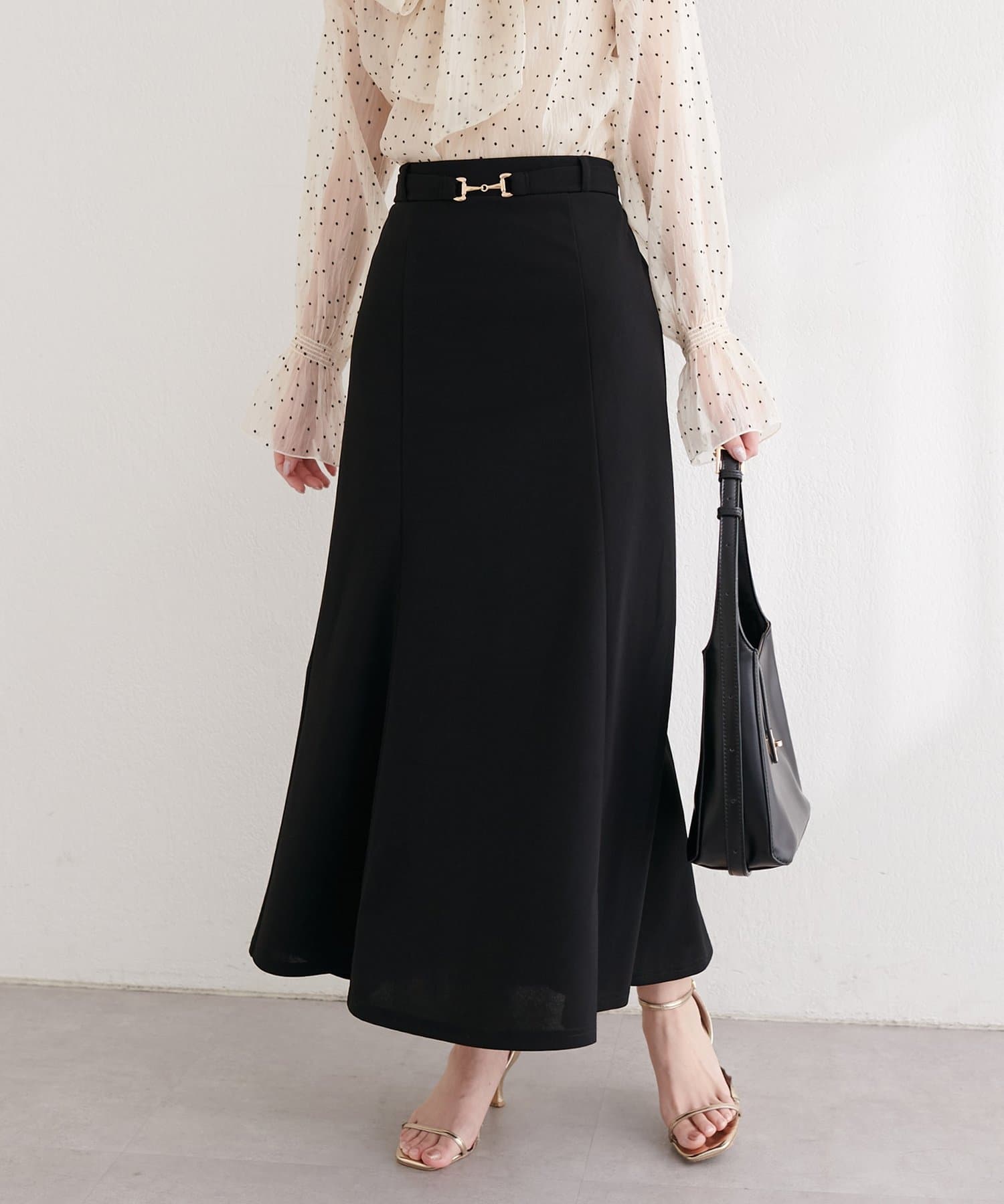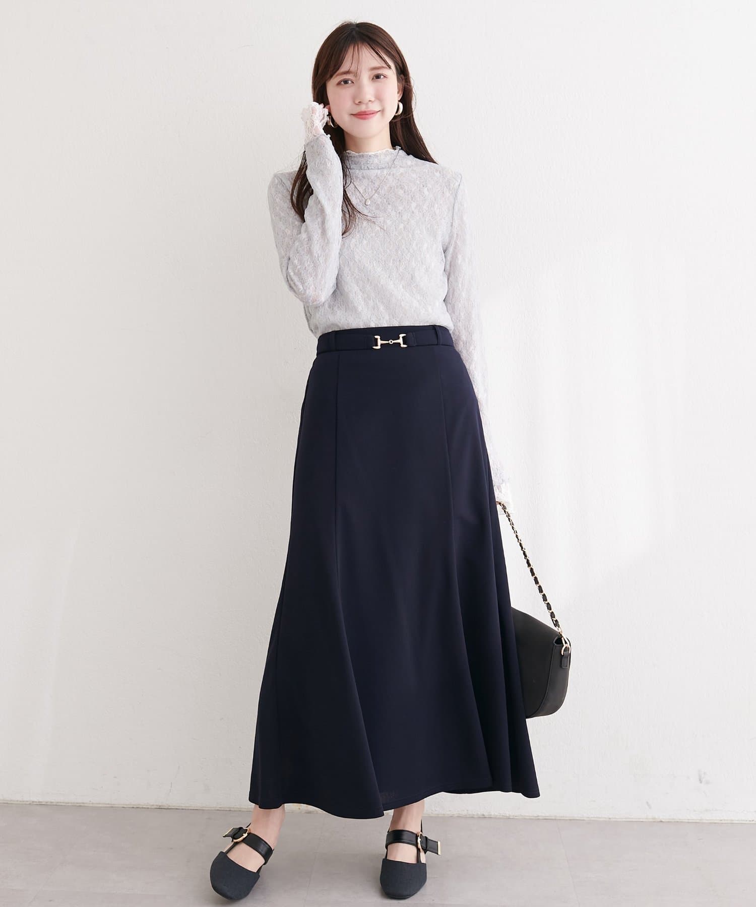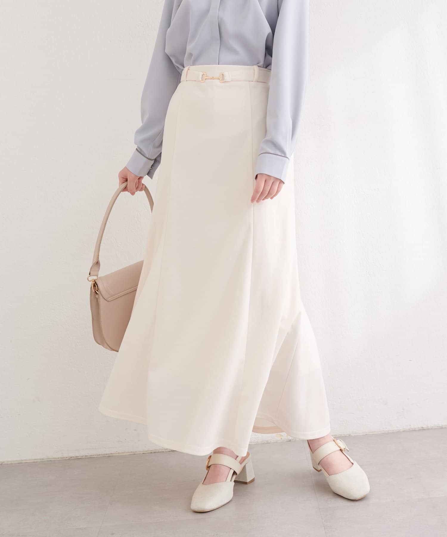 すっきりとしたIラインシルエットと、裾にかけて緩やかに広がるフレアが、女性らしい上品な印象を与えてくれます。