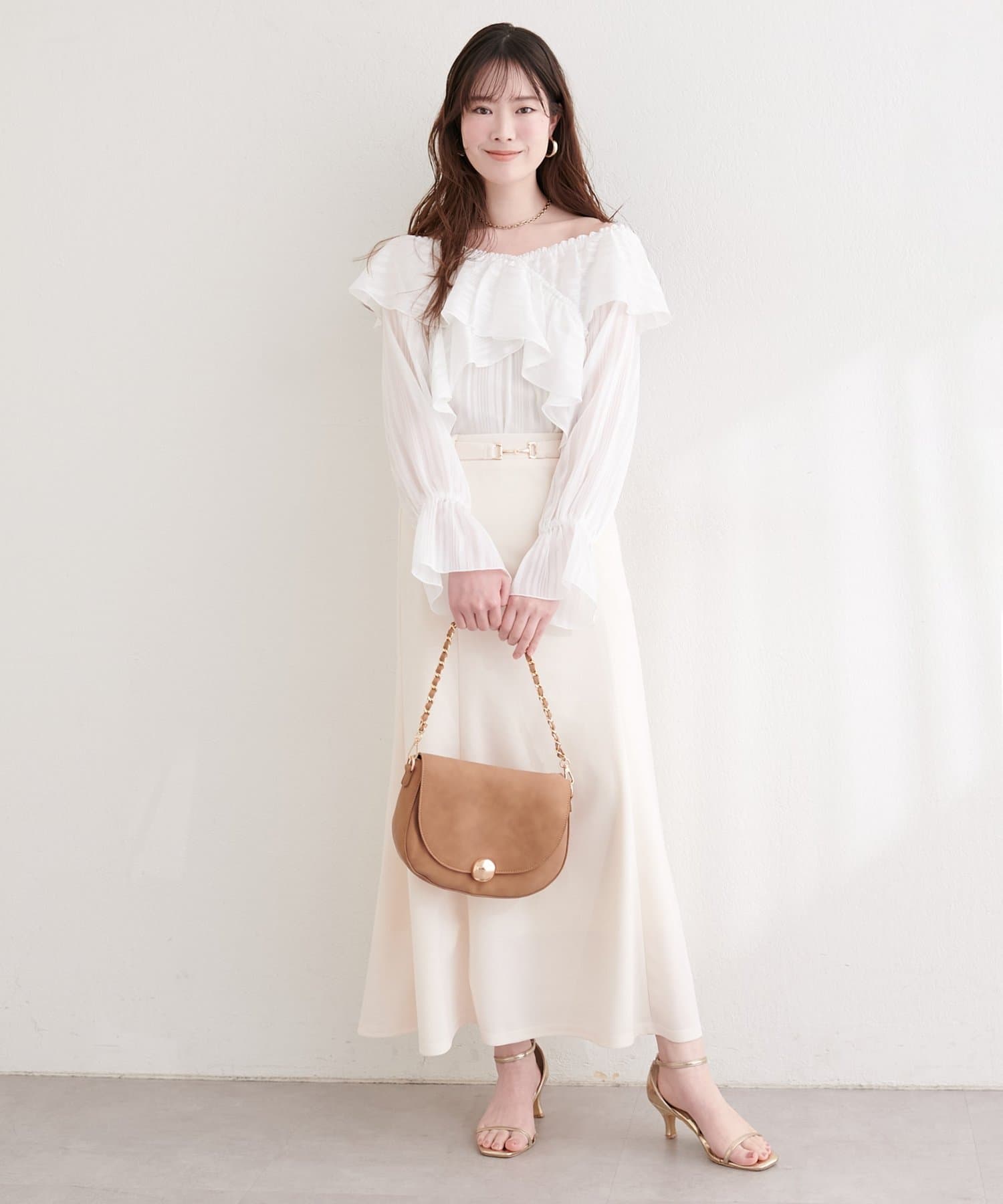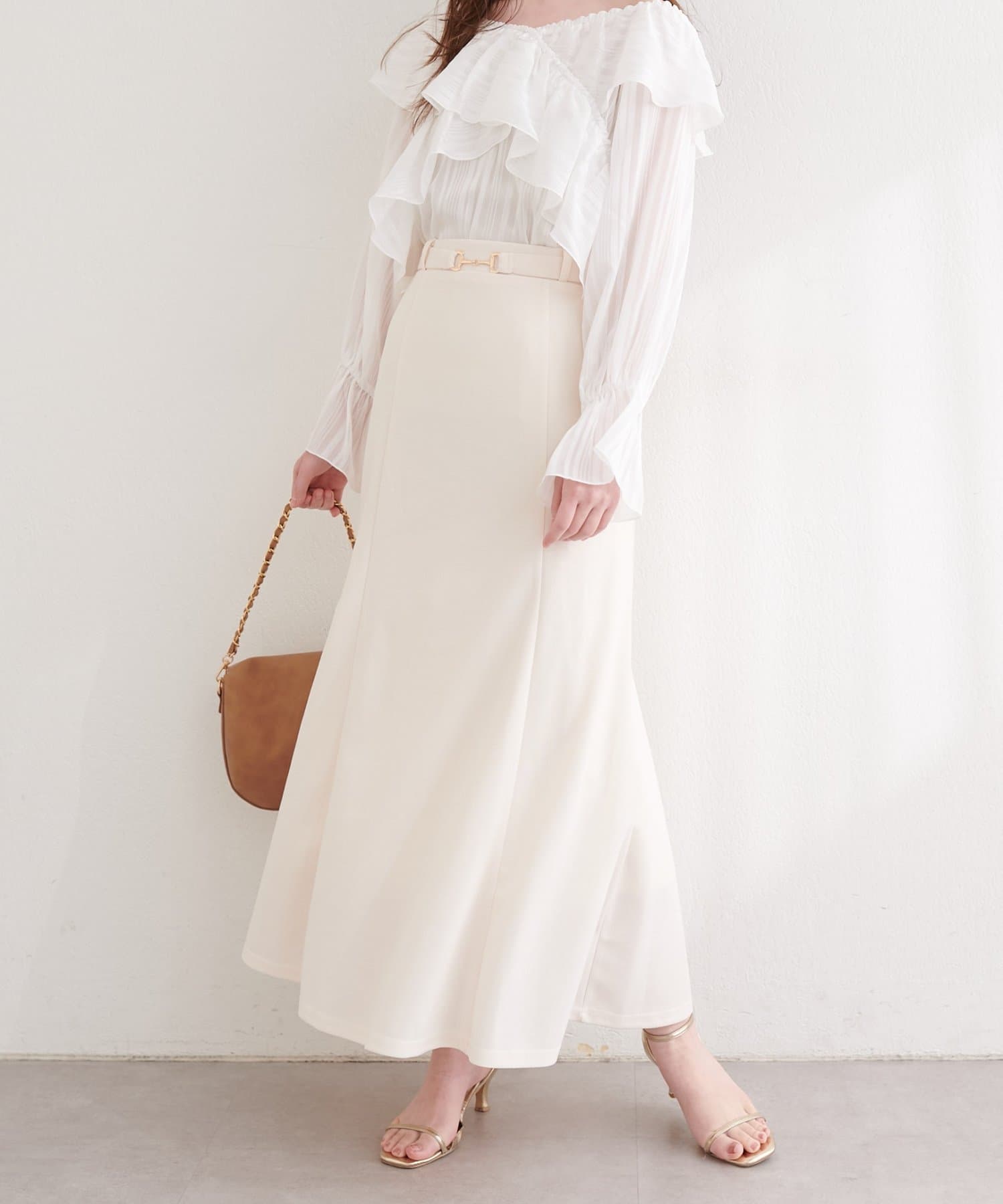 トップスをインして、ビットを見せるスタイリングがおすすめです。