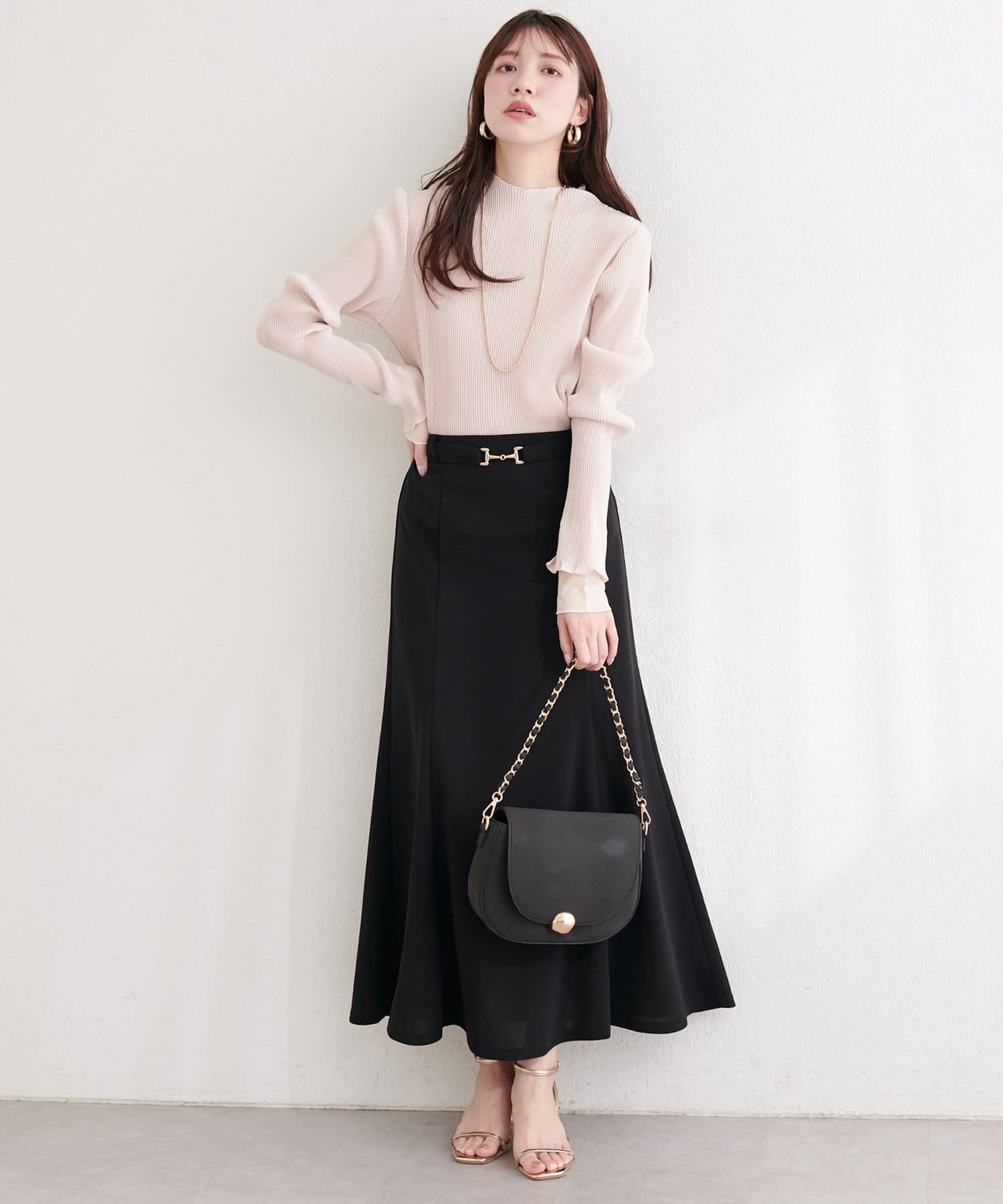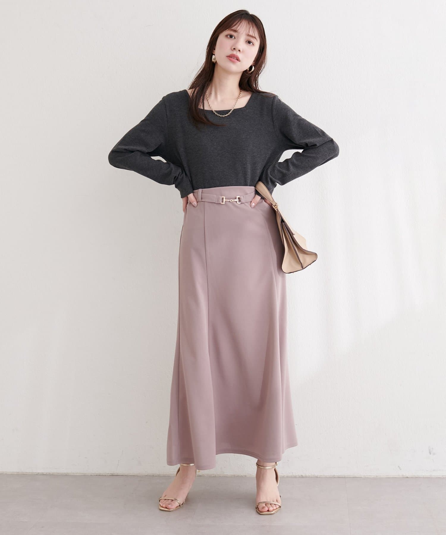 ブラウスと合わせてオフィススタイルに、ニットと合わせてカジュアルスタイルに、