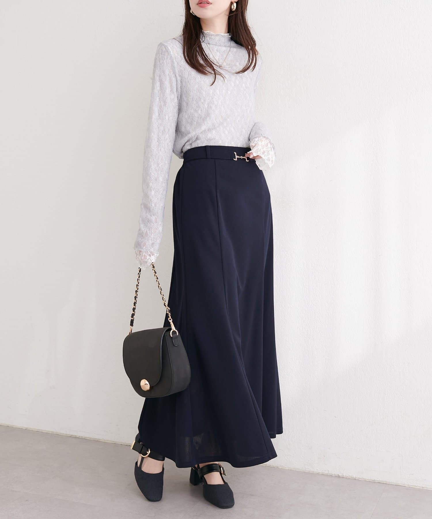 クラシカルな雰囲気を添え、シンプルなスカートに華やかさをプラスします。