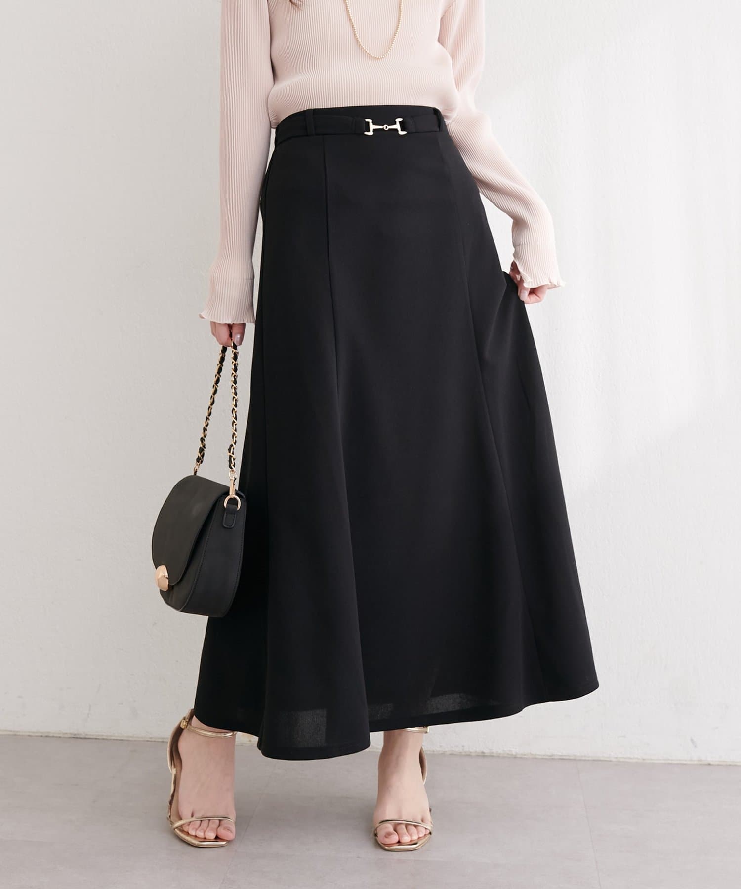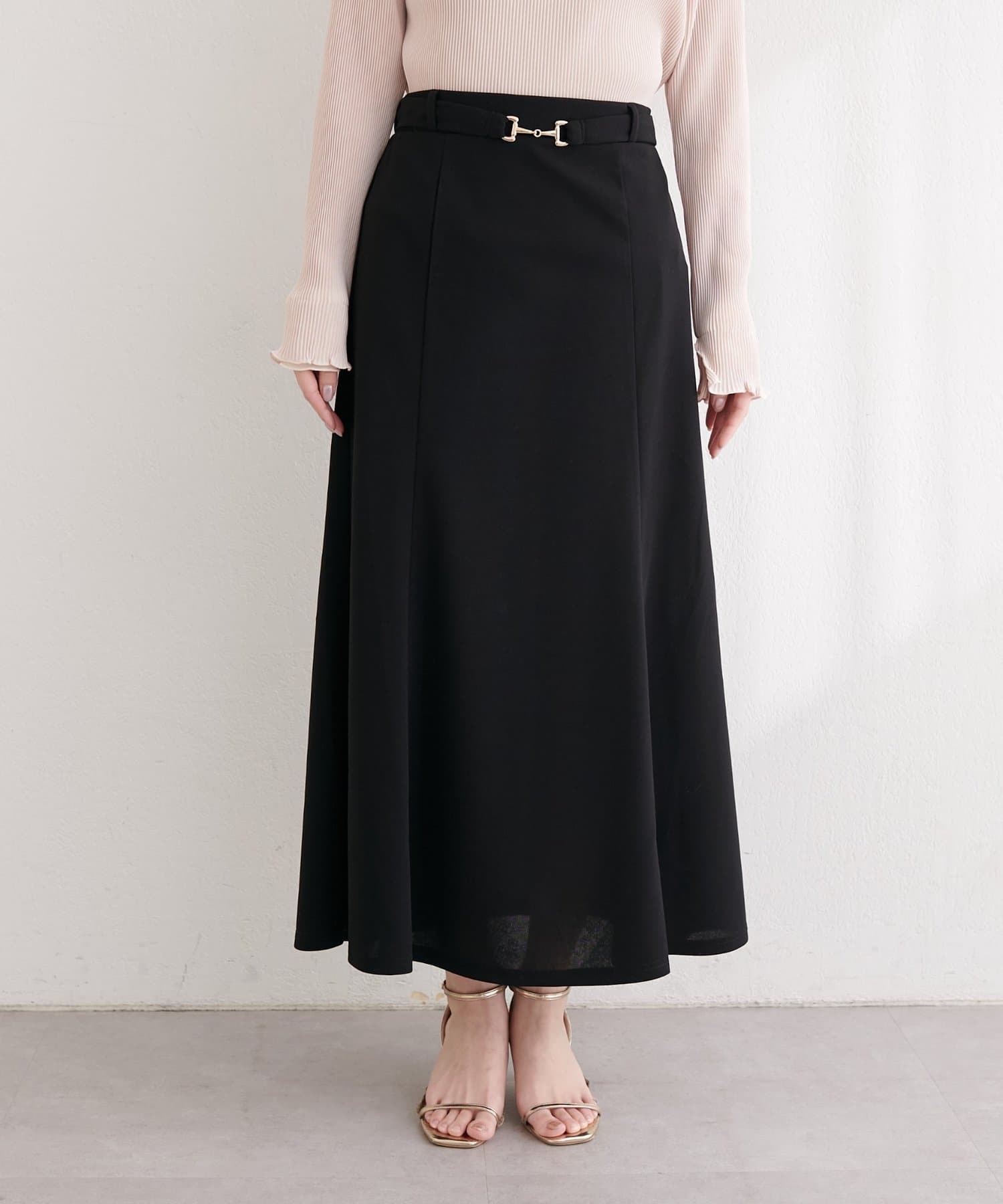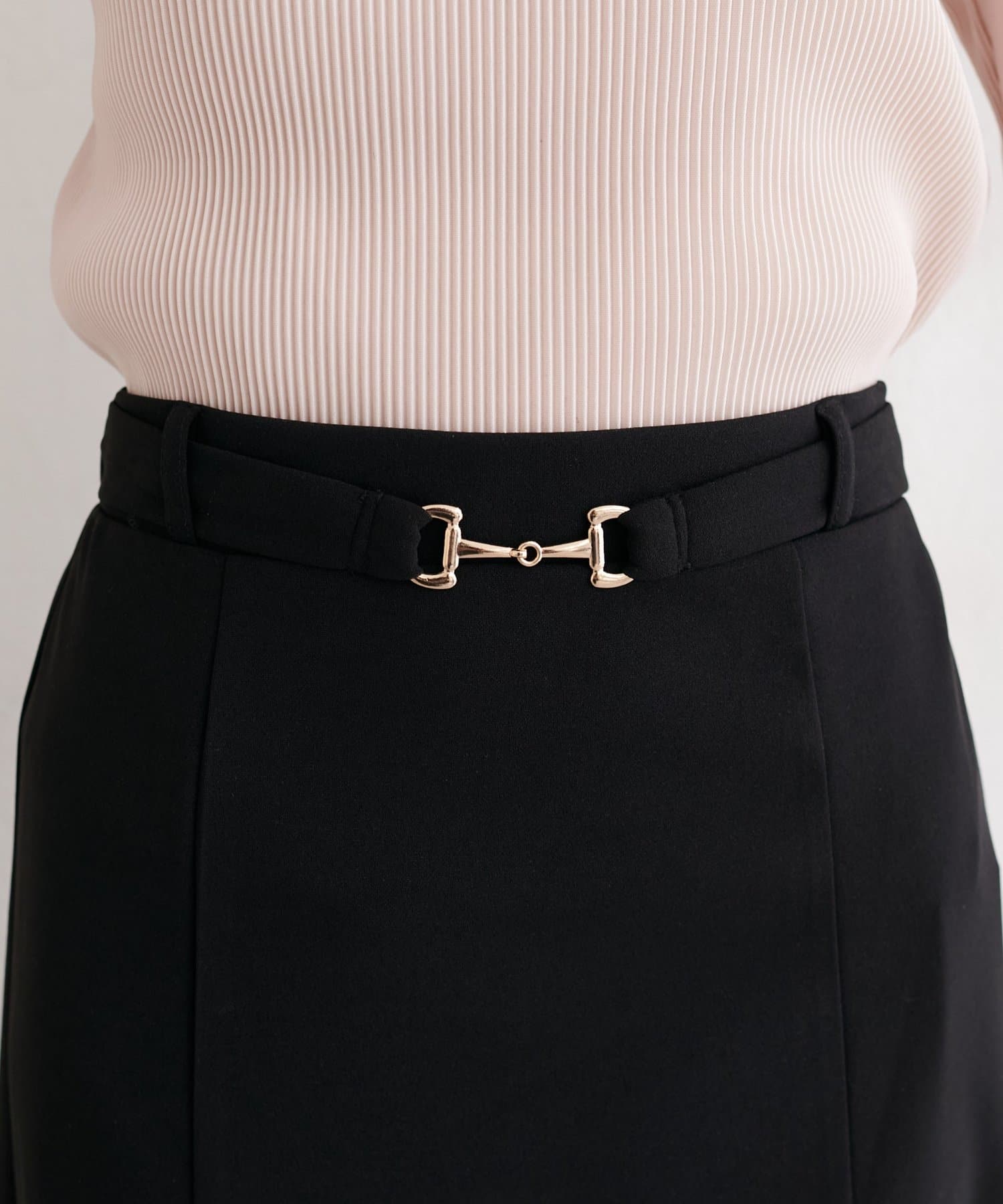ウエストにあしらわれたビット金具がポイントのスカート。