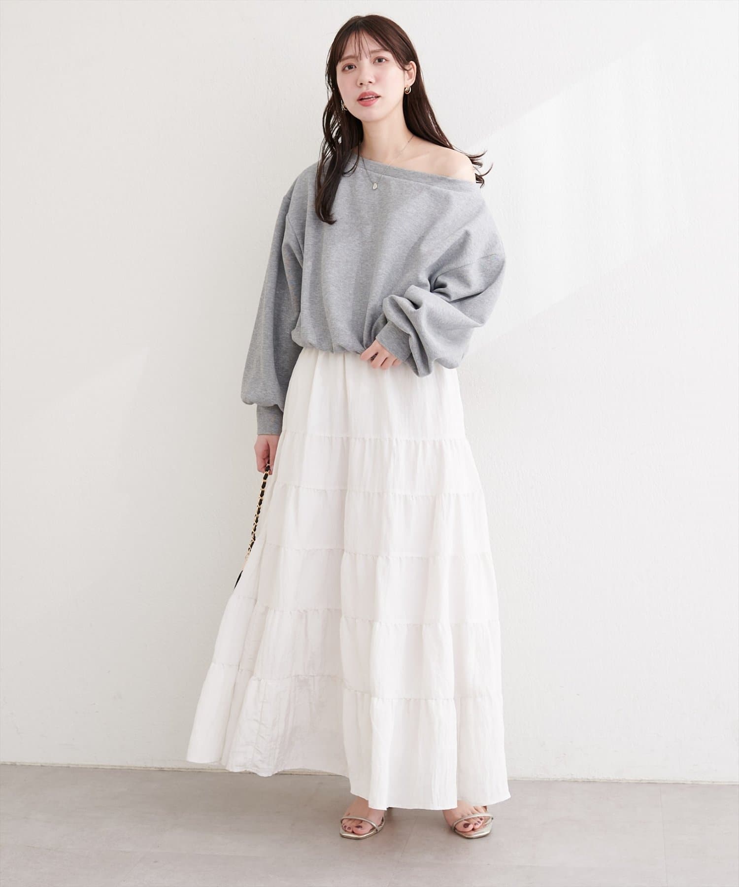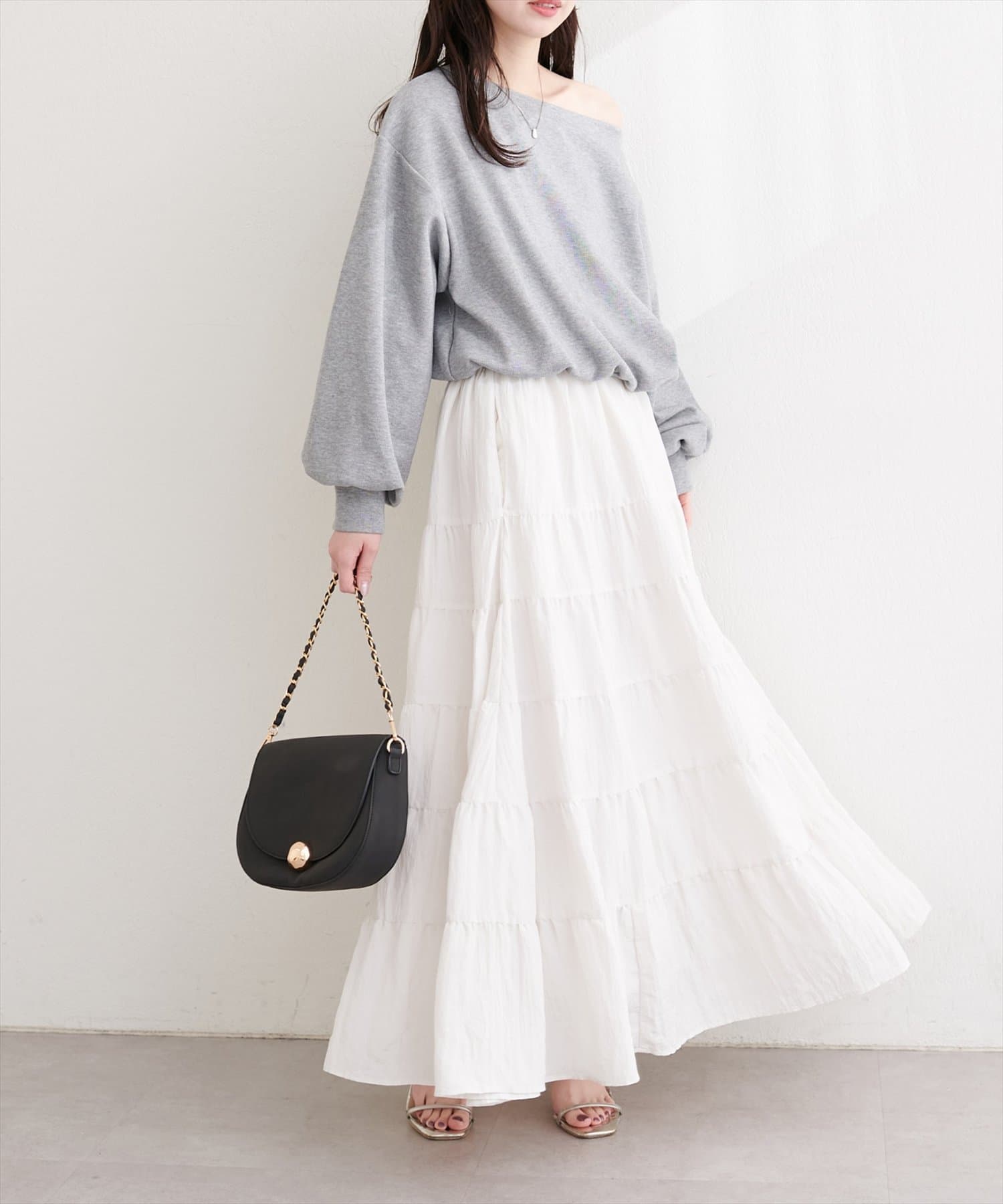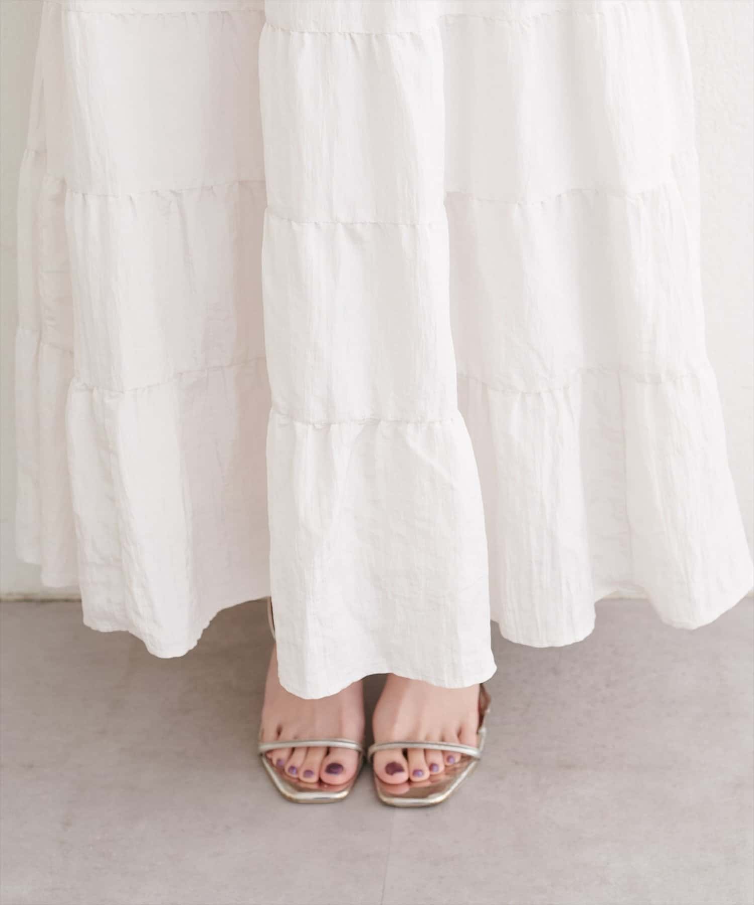 ティアードが生み出すふんわりとしたシルエットは、気になる体型をカバーしつつ、エレガントな印象を与えます。