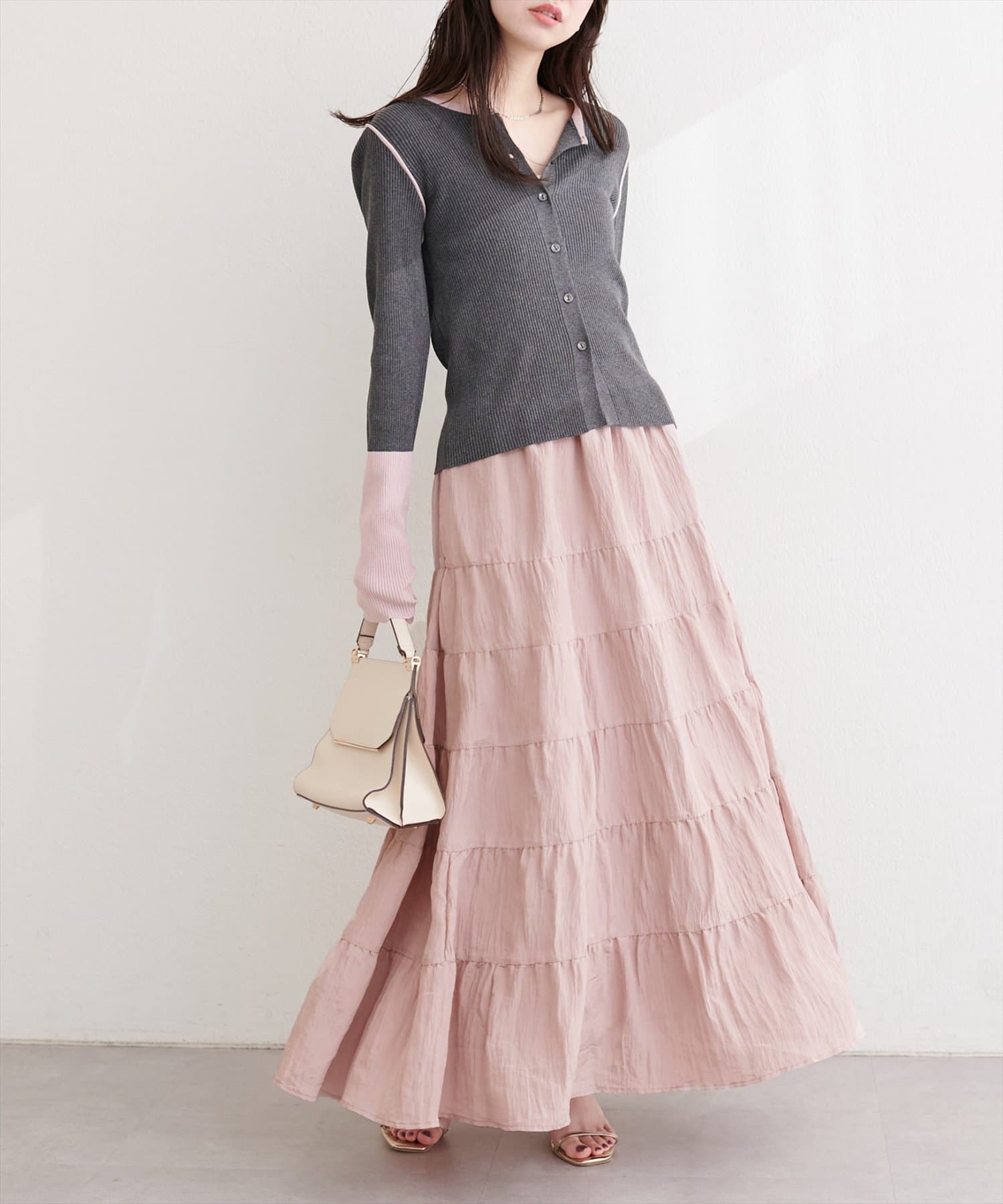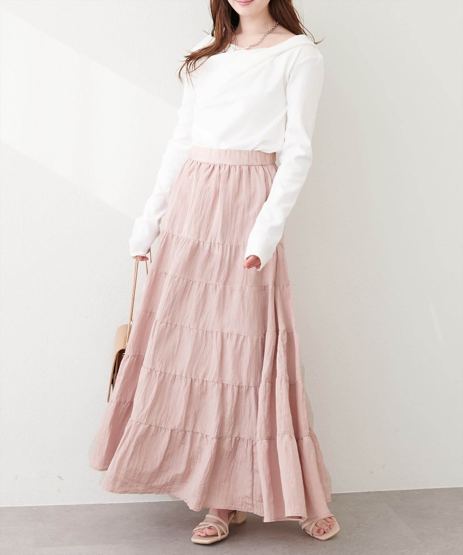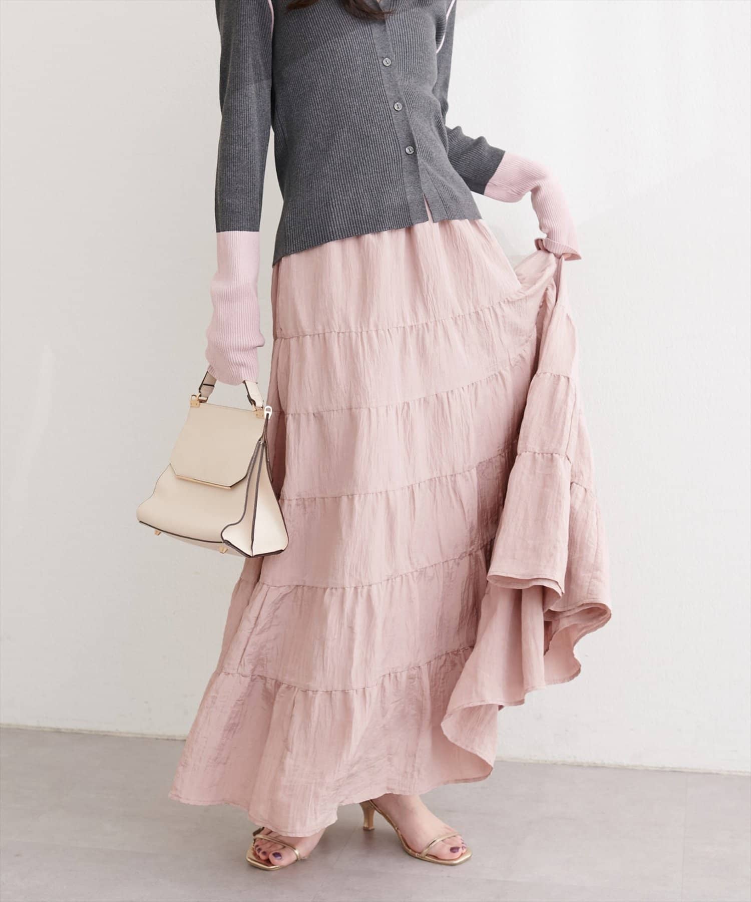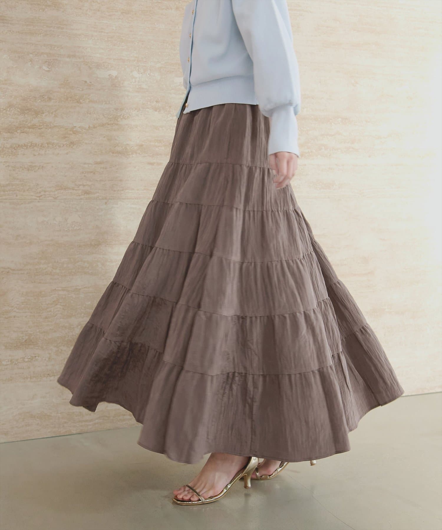 • natural couture(ナチュラルクチュール) サテンティアードスカート