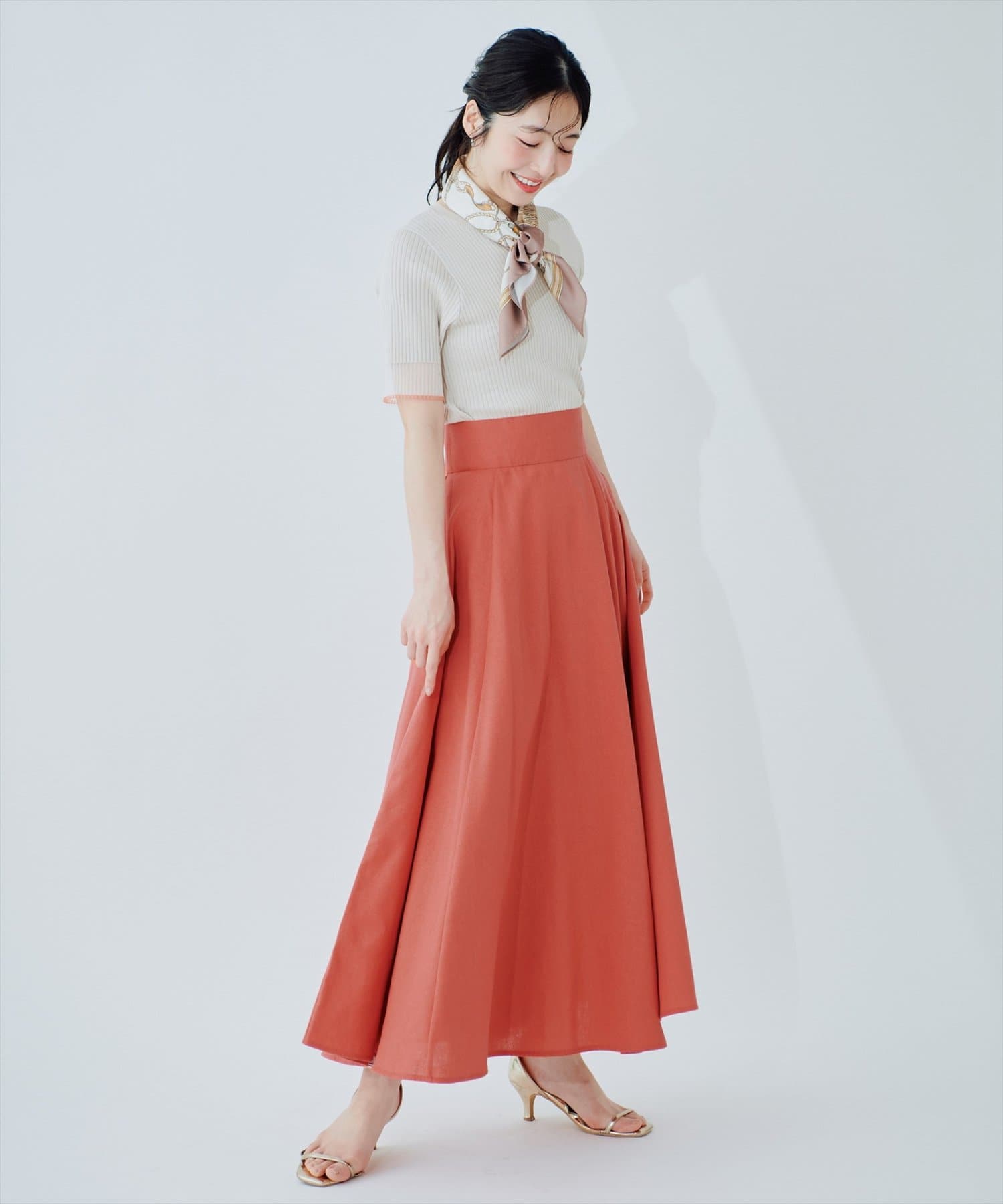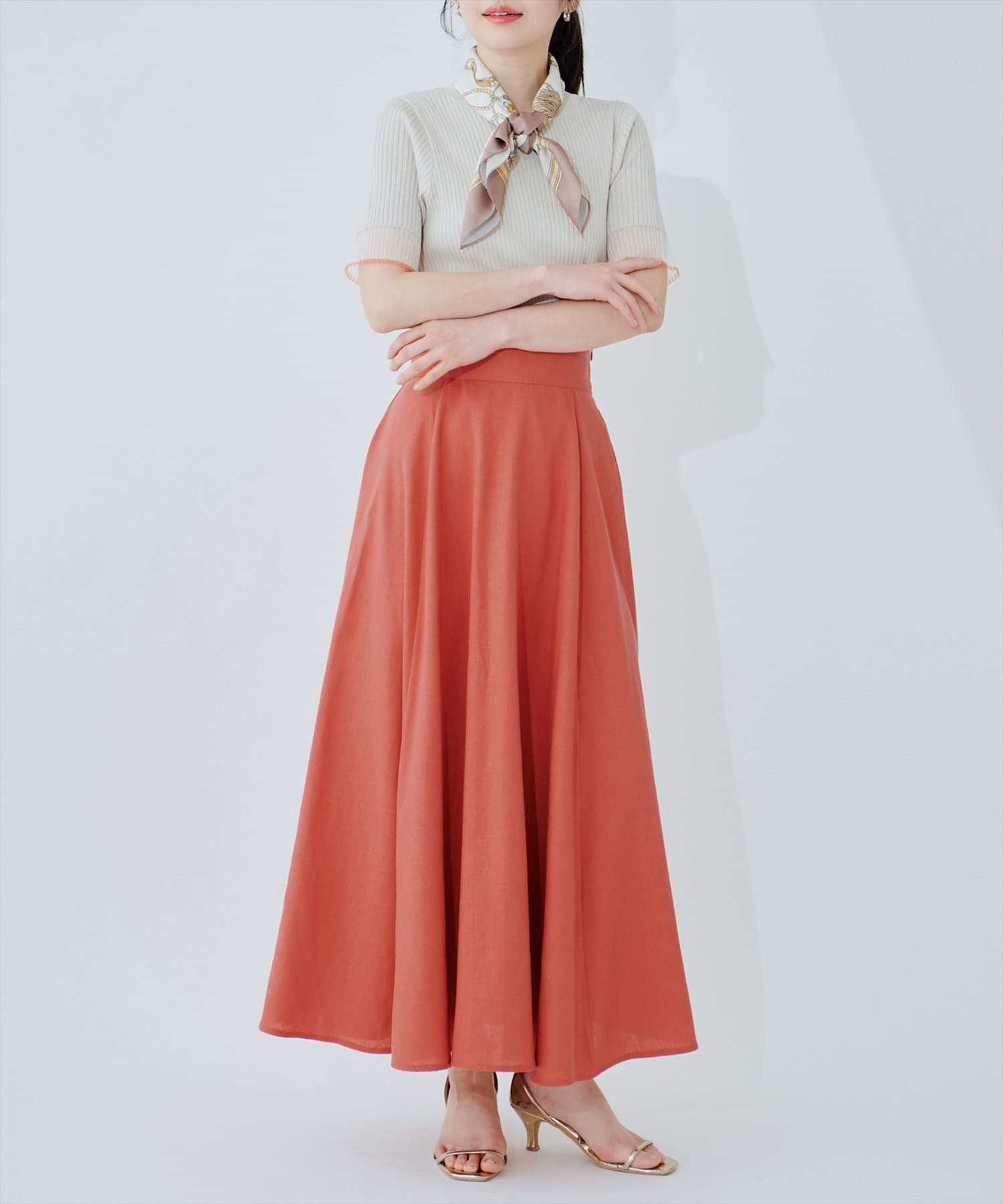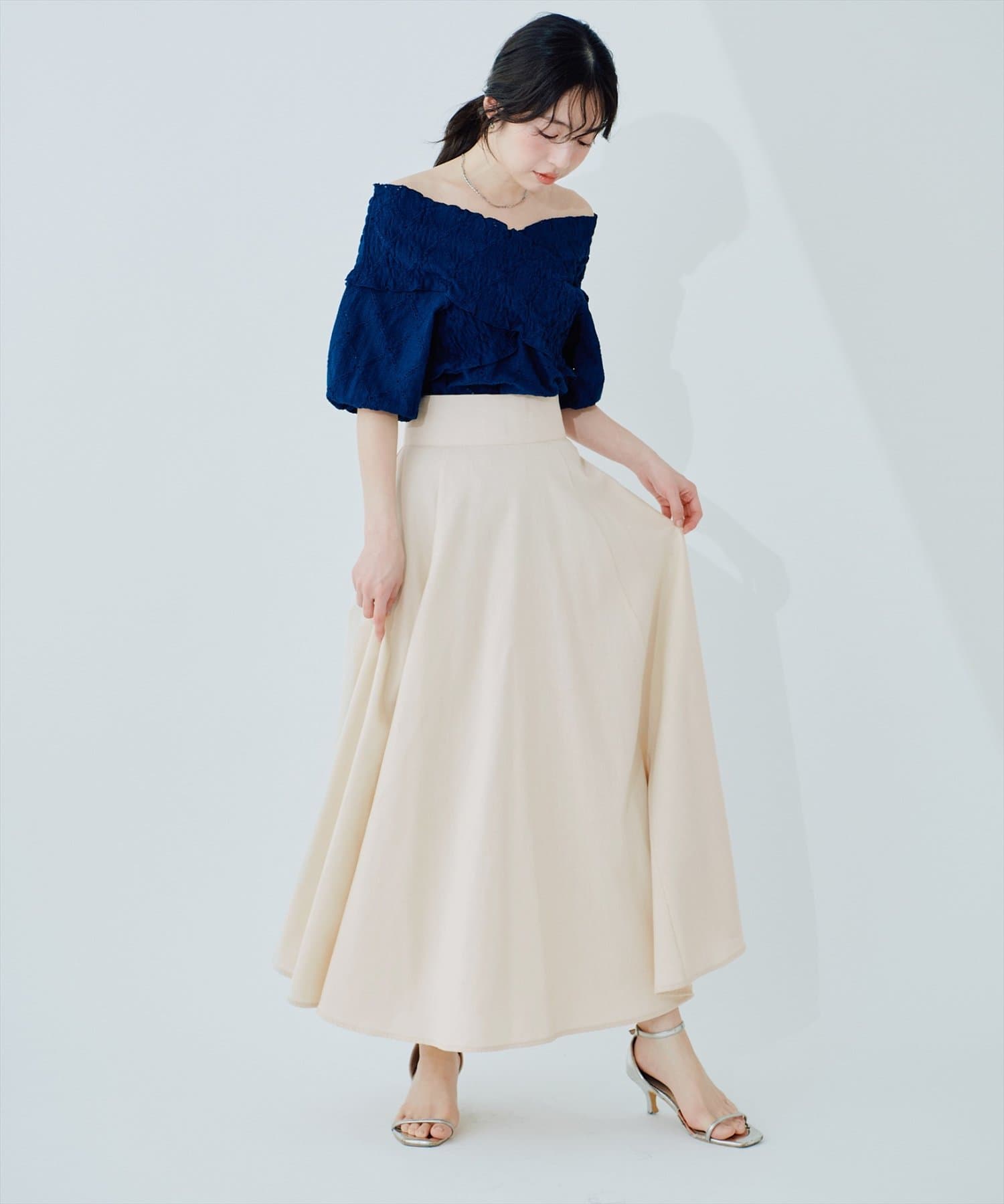 0341010250 綿麻ハイウエストサーキュラースカート