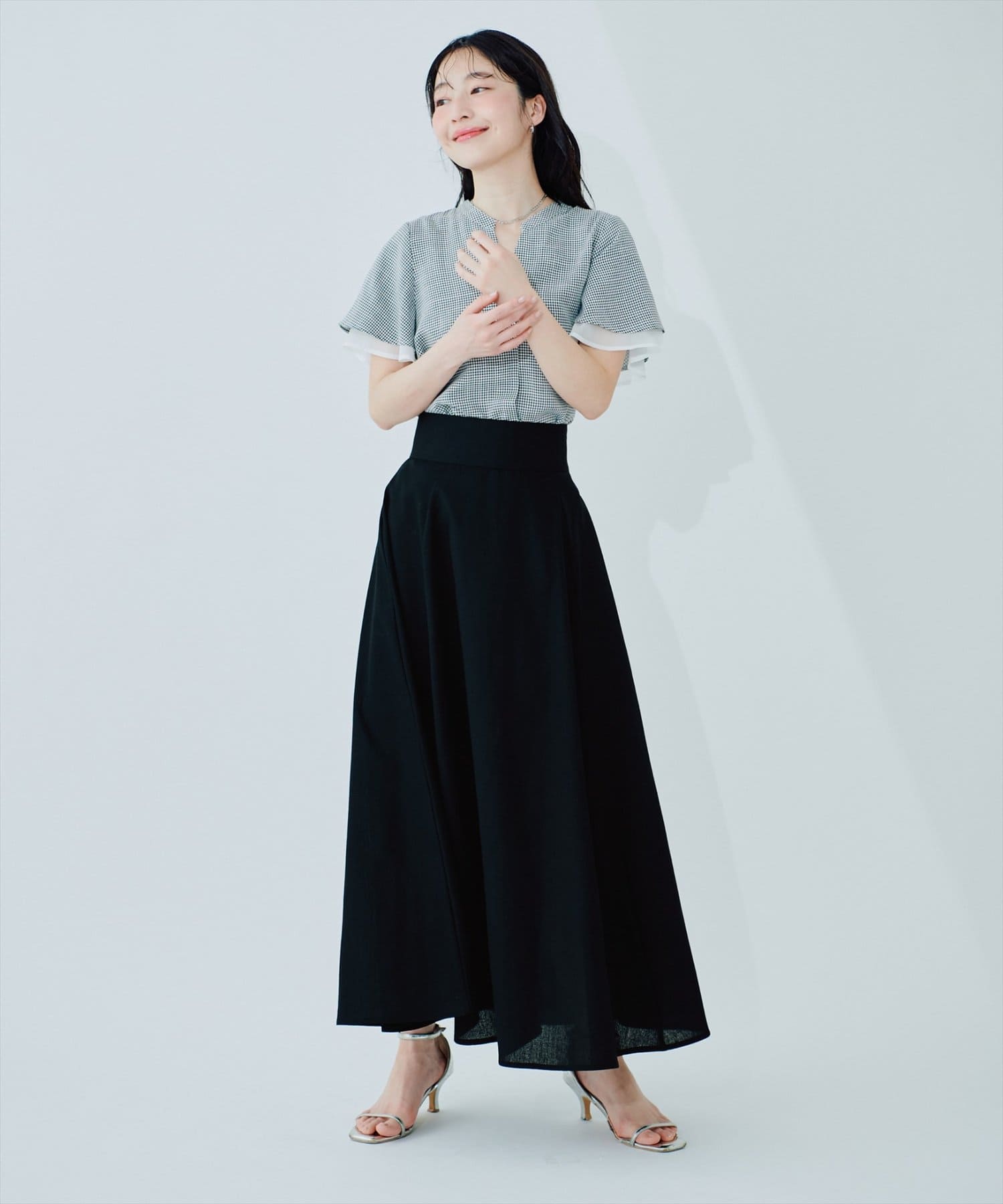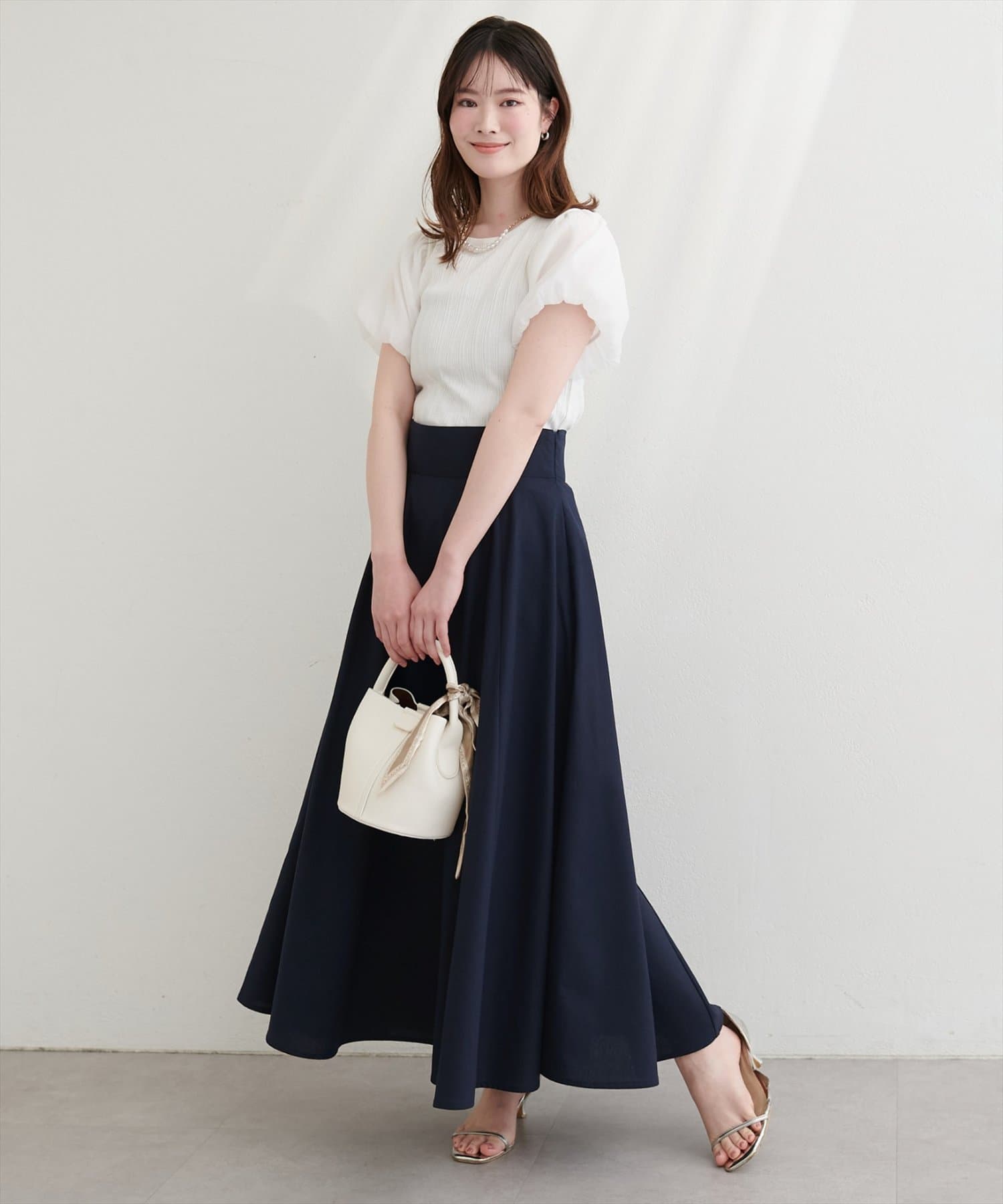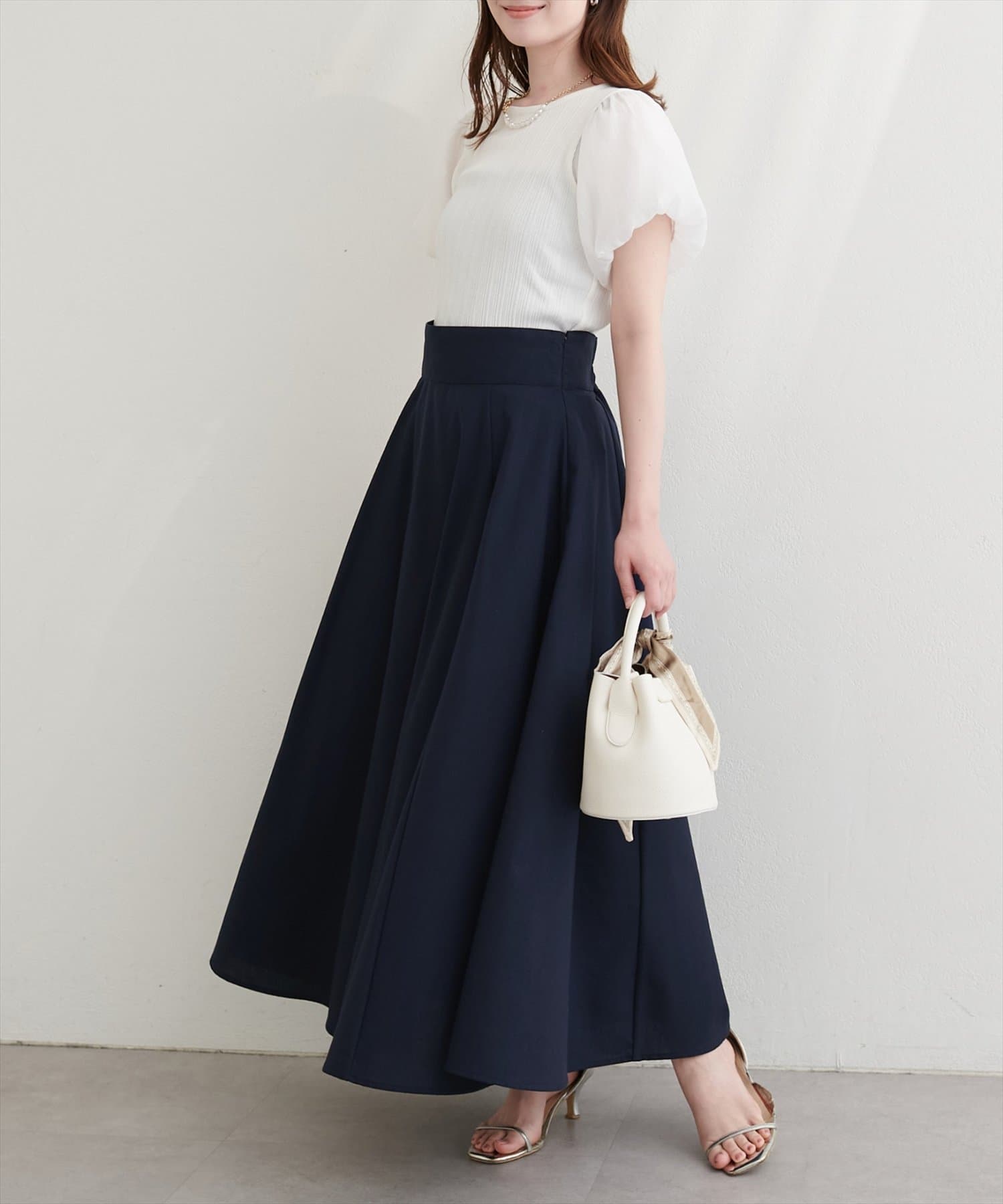 裾にむかってフレアに広がり、カジュアル過ぎずフェミニンさのある1着に仕上げました。