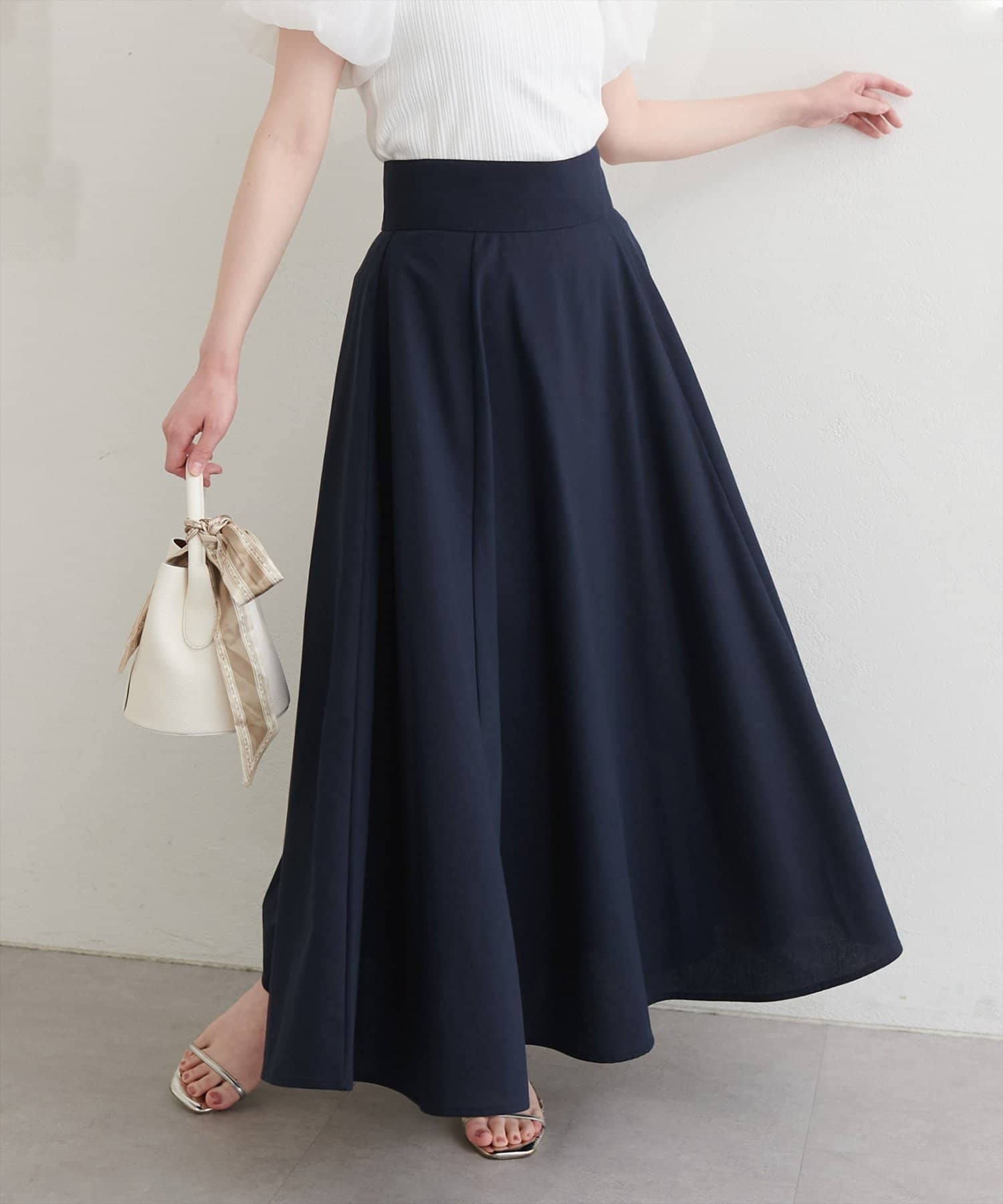 足元はコンパクトなミュールやぺたんこサンダルなど、様々なアイテムと相性抜群です。