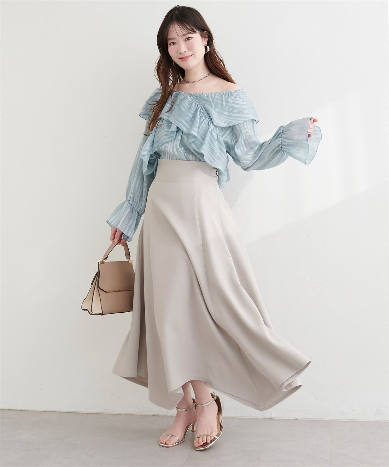 イレギュラーヘムが、動きに合わせて様々な表情を見せ、コーデをより華やかな印象にしてくれます。