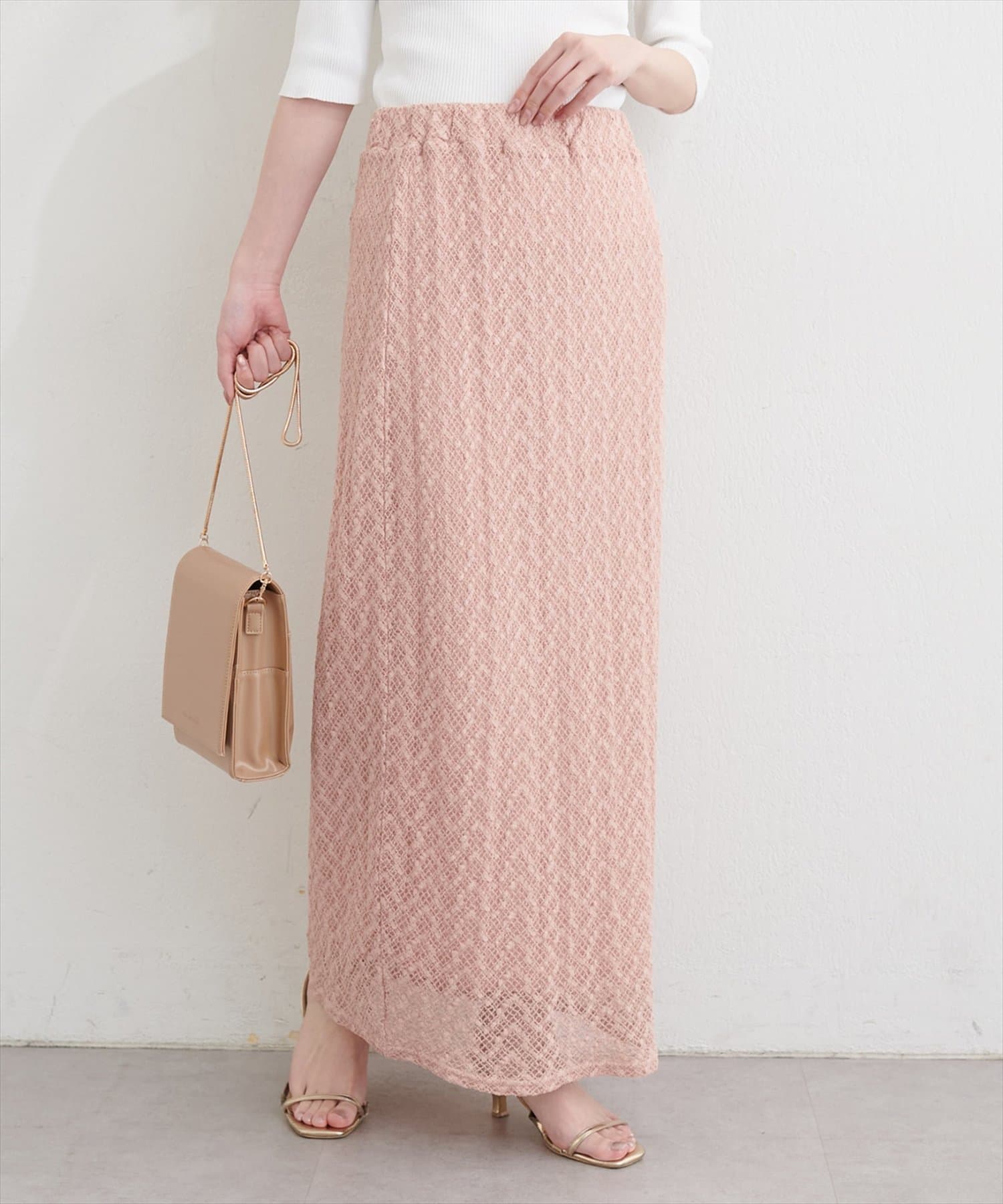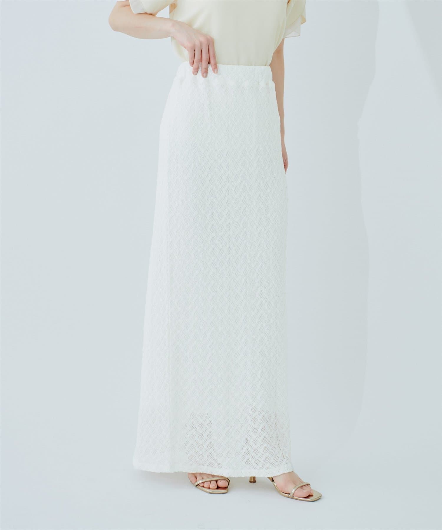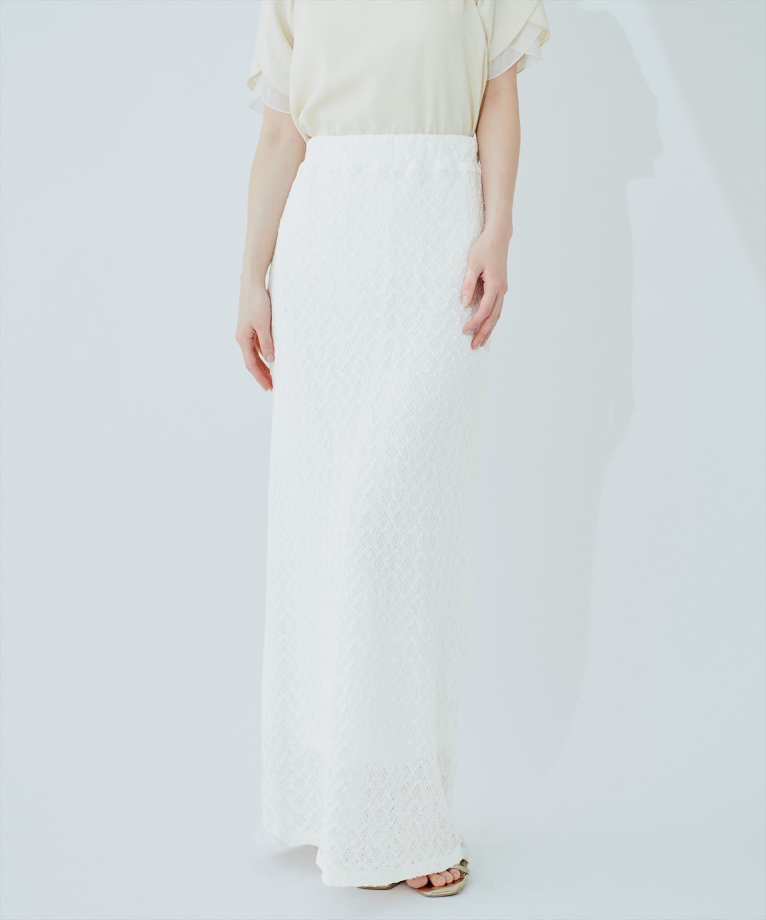 繊細で美しいレースのデザインでストレッチ性のあるスカート。
