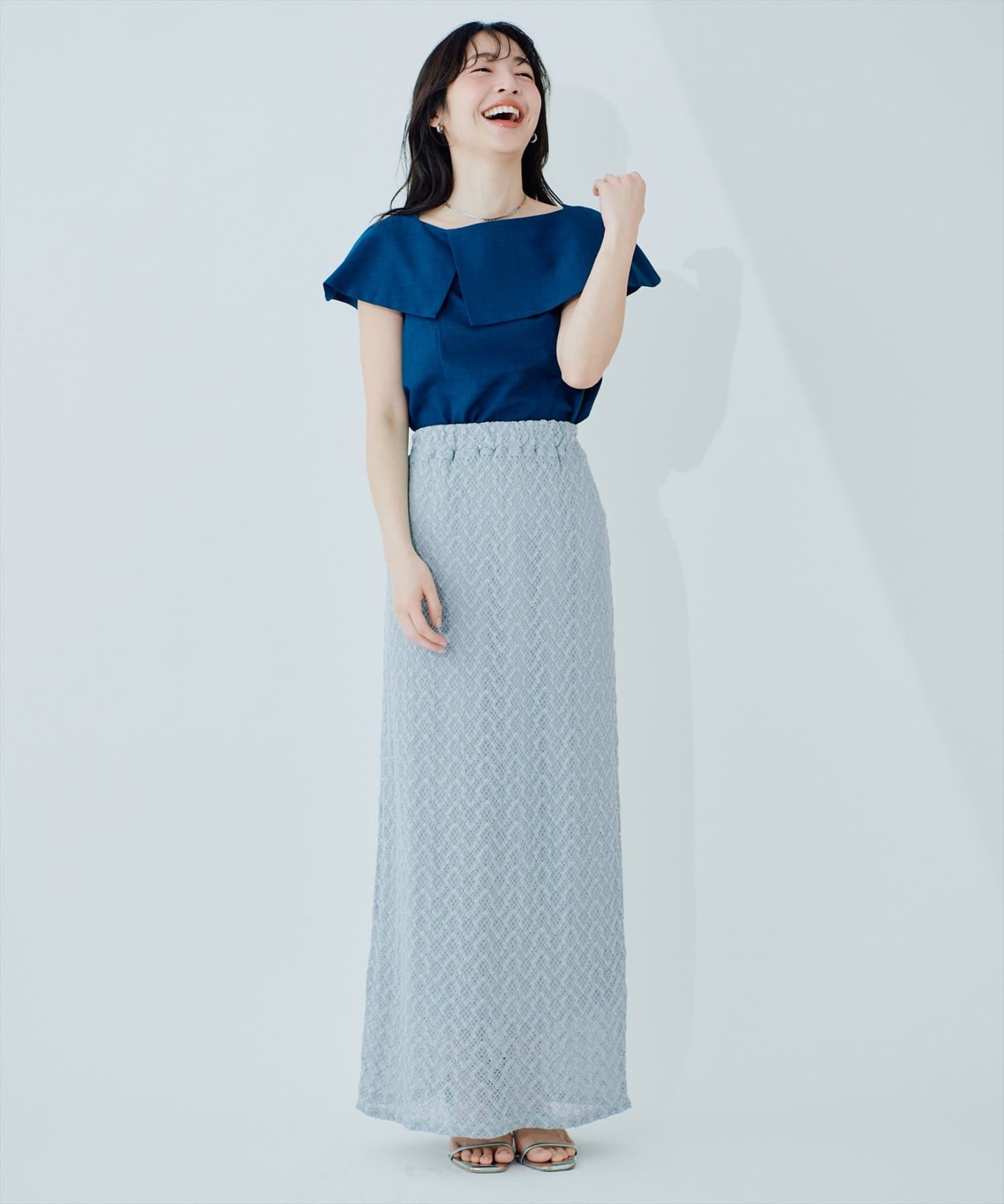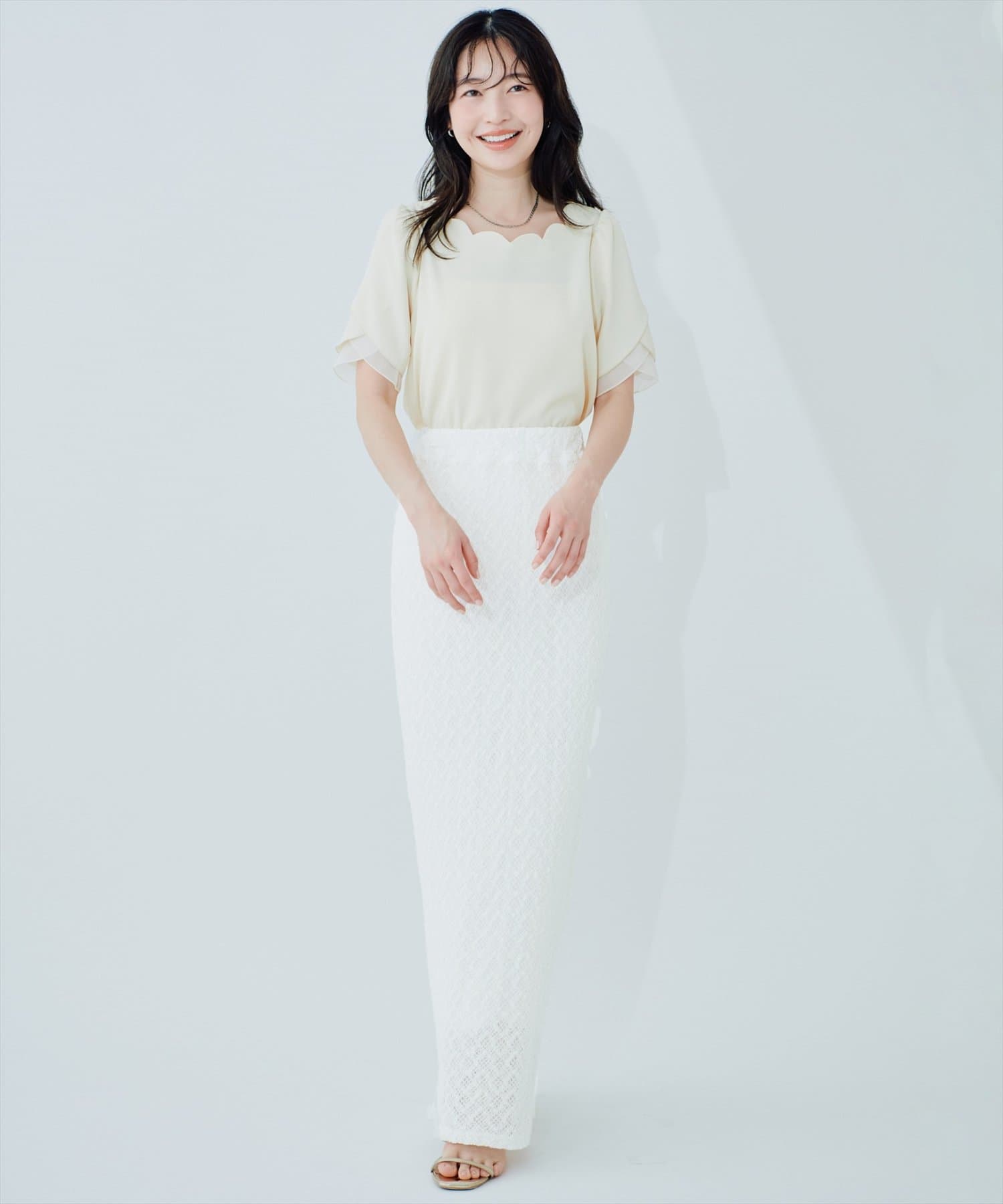 レースの程よい透け感が、軽やかで涼しげな印象を与え、春夏シーズンにぴったりです。