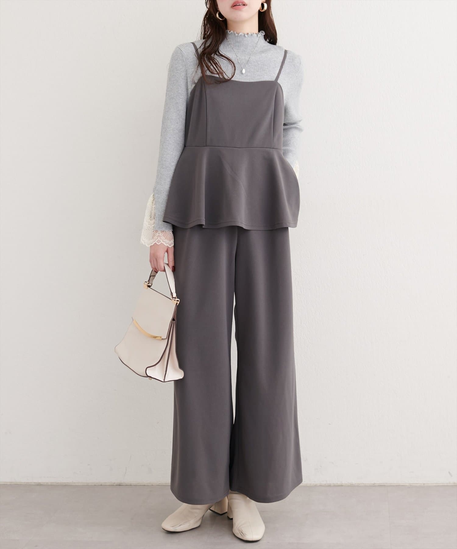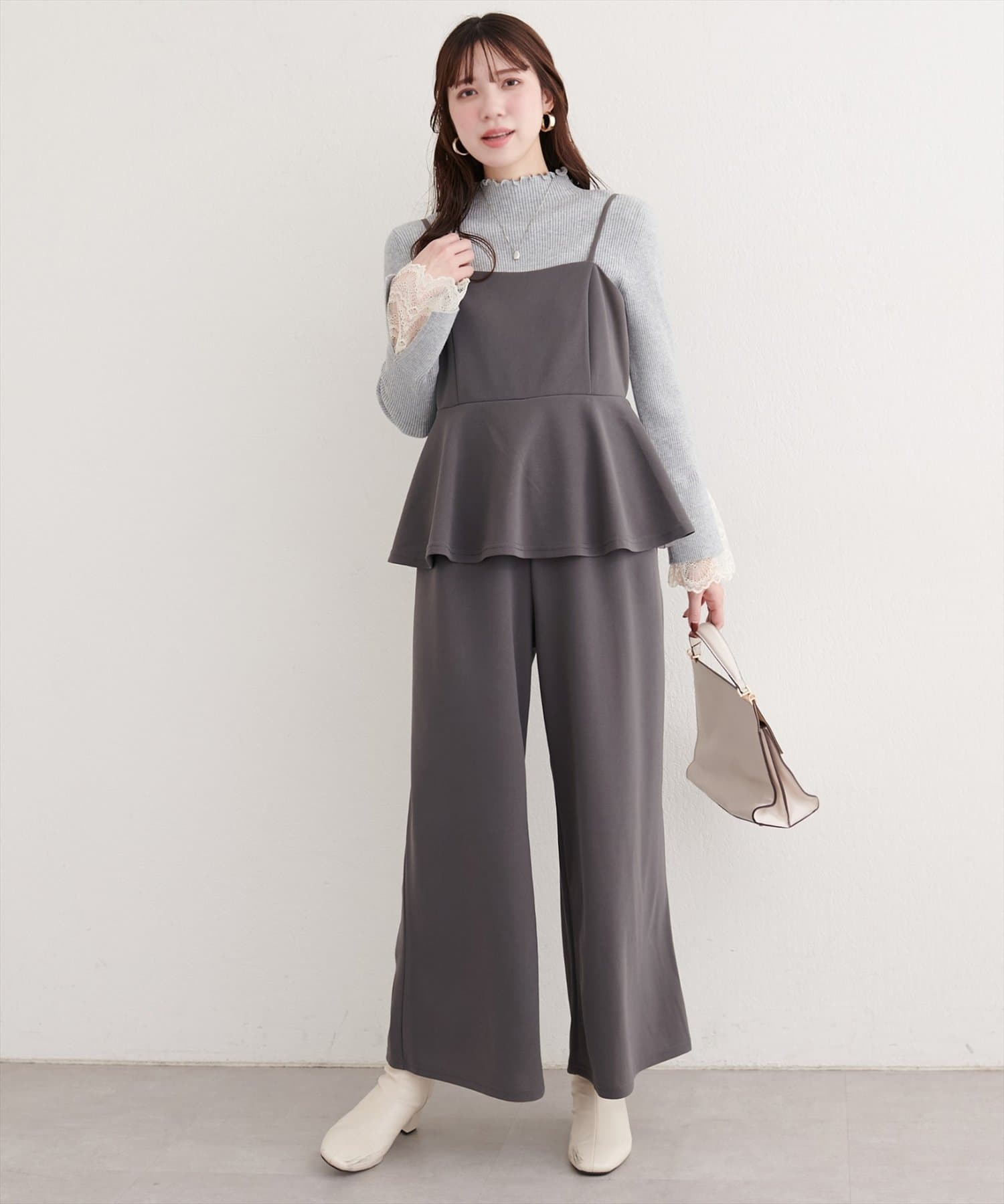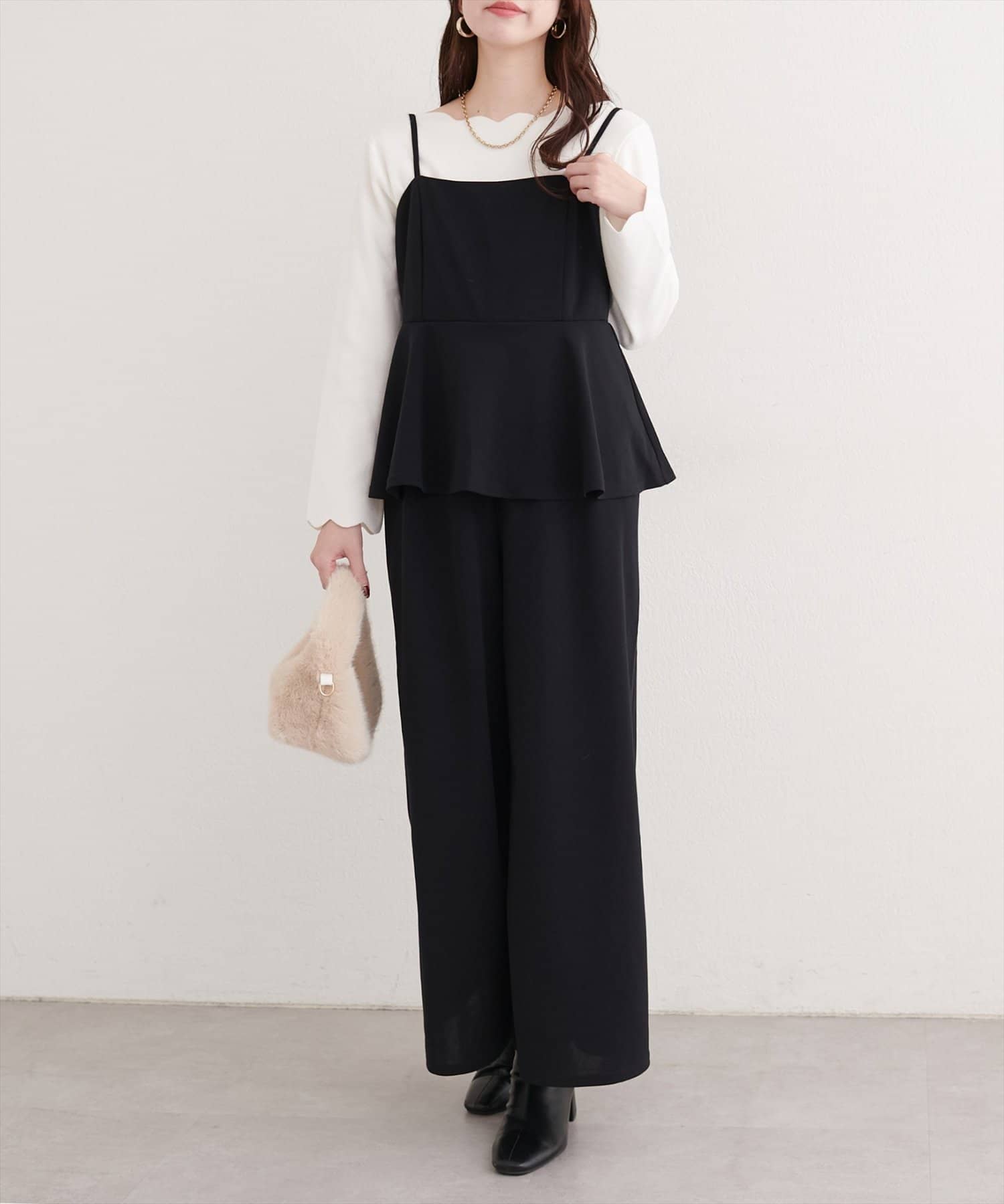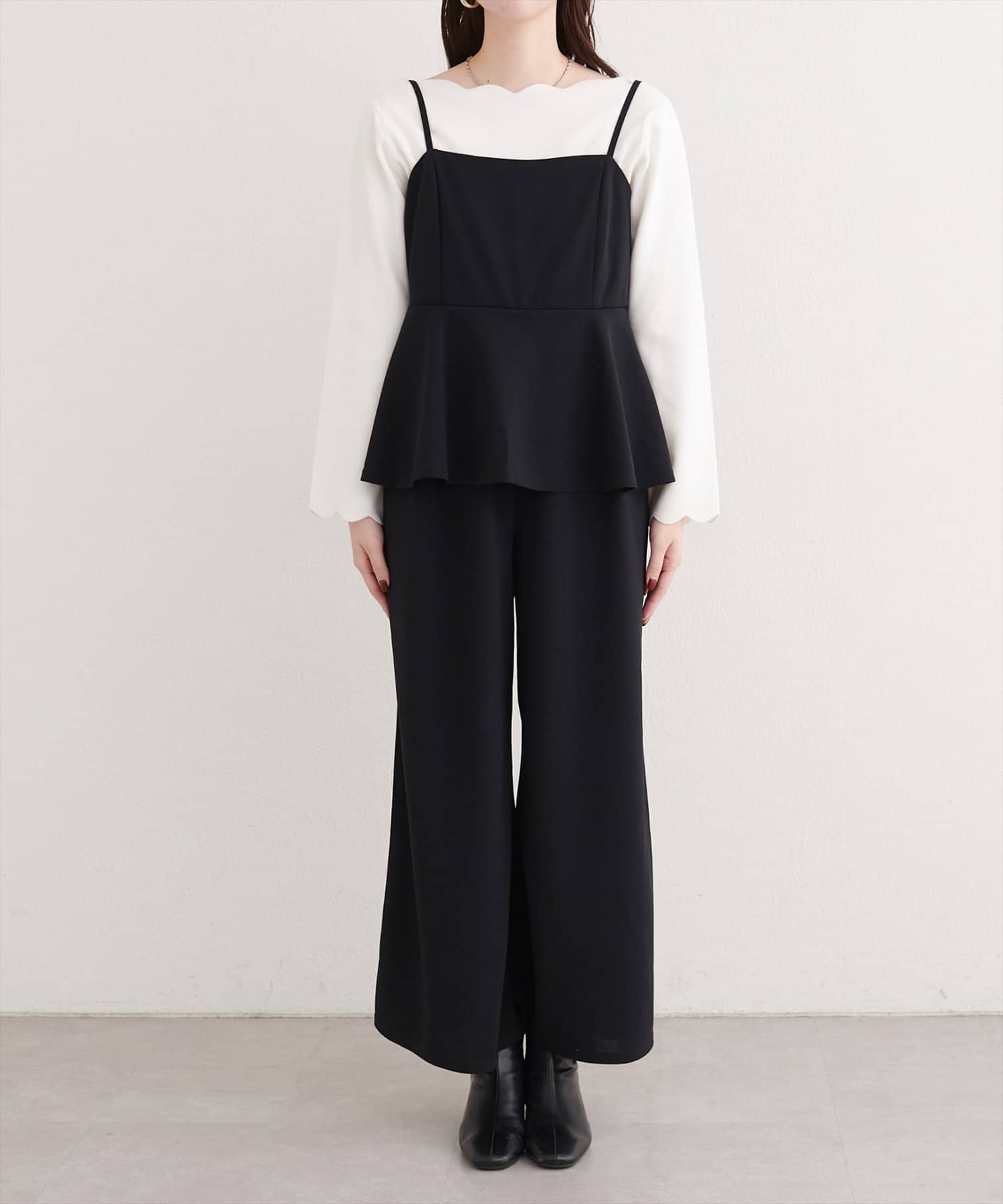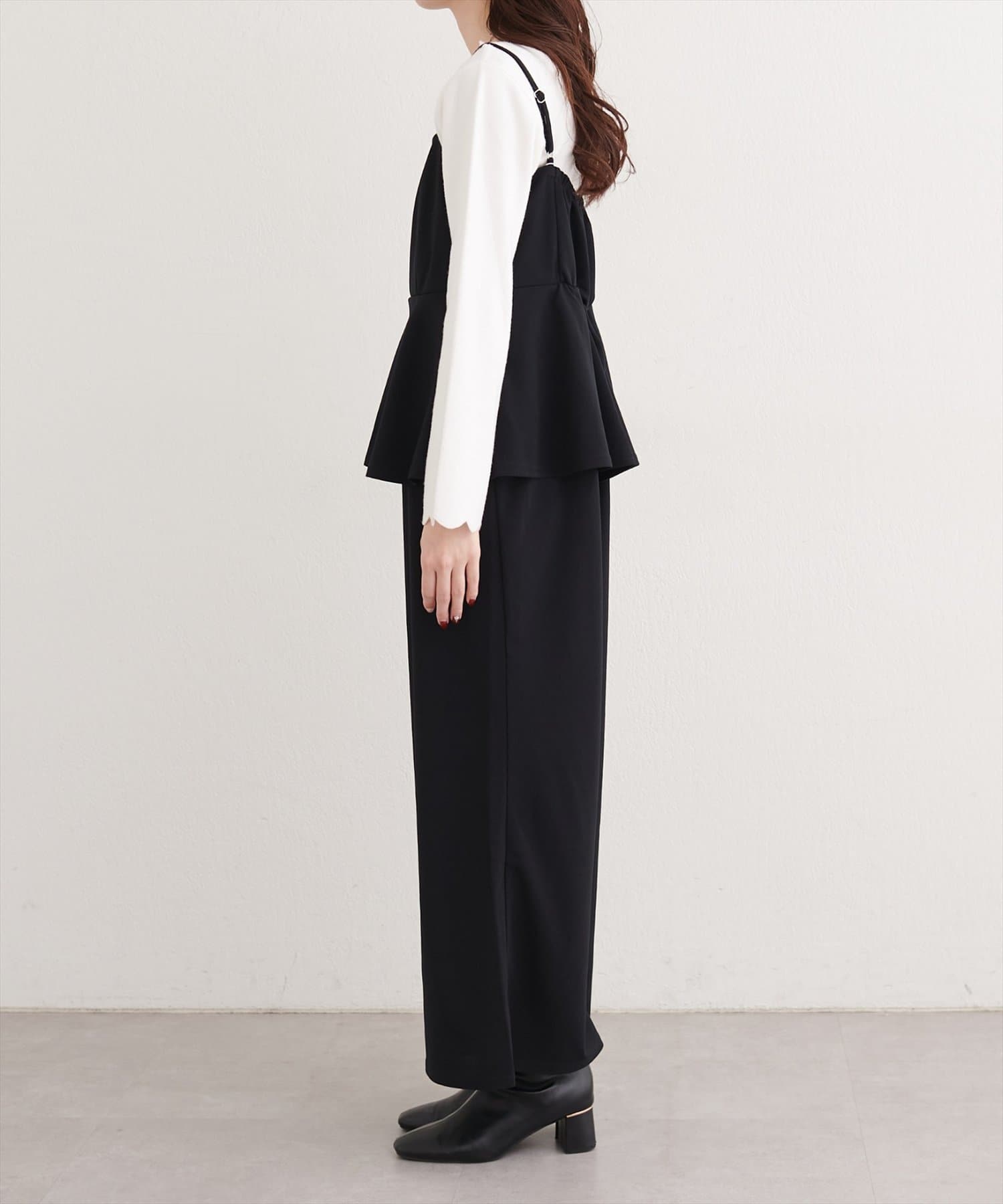 高めのウエスト位置から広がるペプラムが、気になるお腹周りをカバーしつつ脚長効果を発揮。スタイルアップを叶えます。