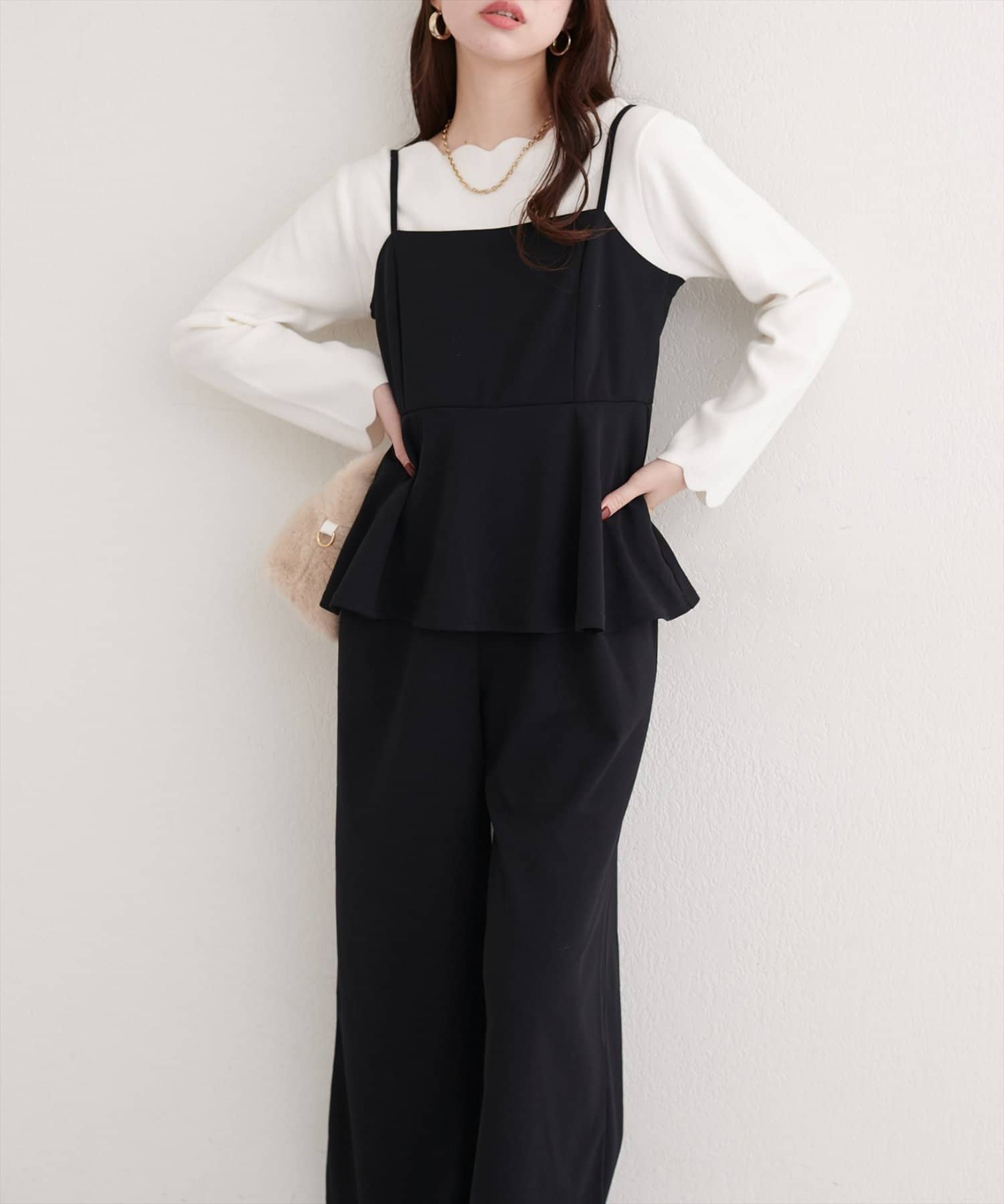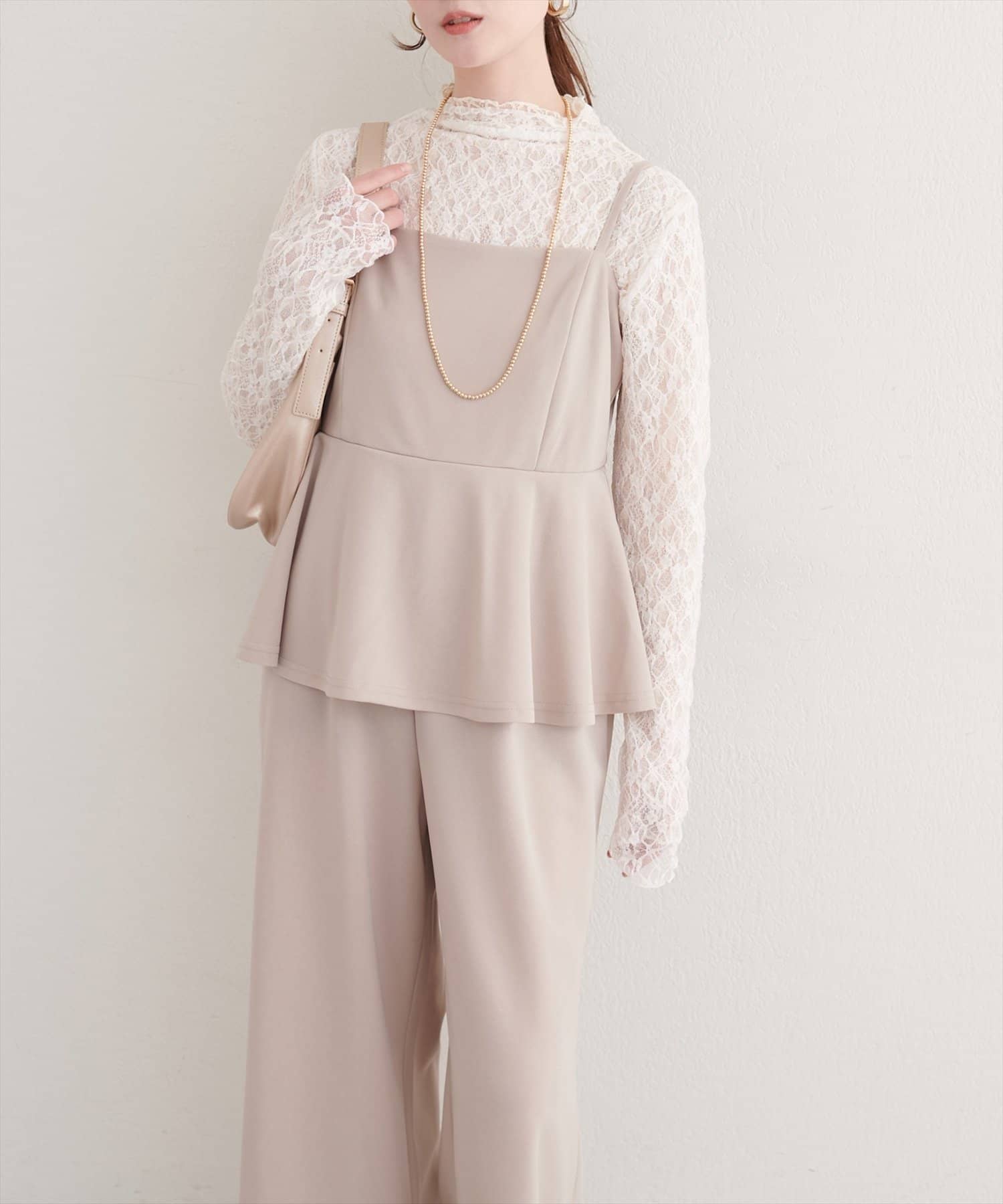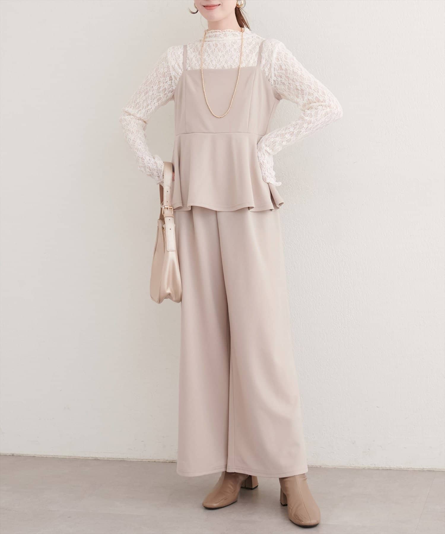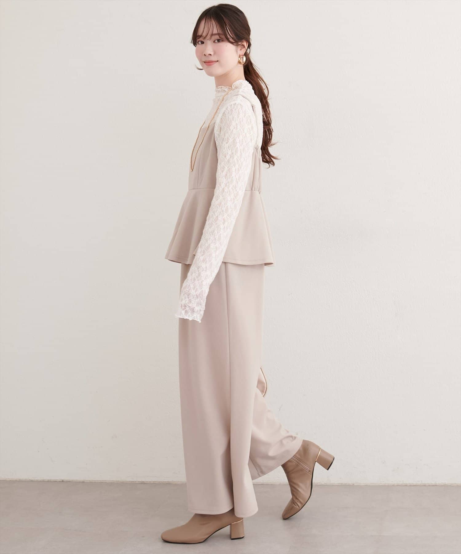 高めのウエスト位置から広がるペプラムが、気になるお腹周りをカバーしつつ脚長効果を発揮。スタイルアップを叶えます。